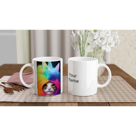 Personalisierte Tasse - Farbenfrohe Regenbogen Katze "Kitty"