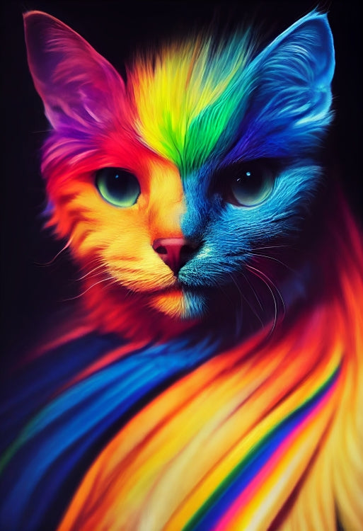 Poster mit Rahmen - Farbenfrohe Regenbogen Katze "Kitty"