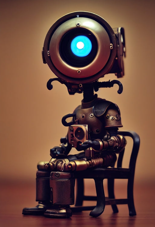 Poster with bars - Tiny robot with coffee - "Bobby"