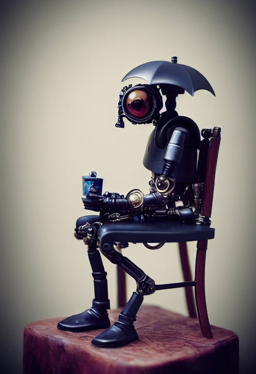 Poster with bars - Tiny robot with an umbrella -"Louis"