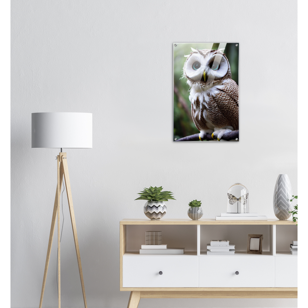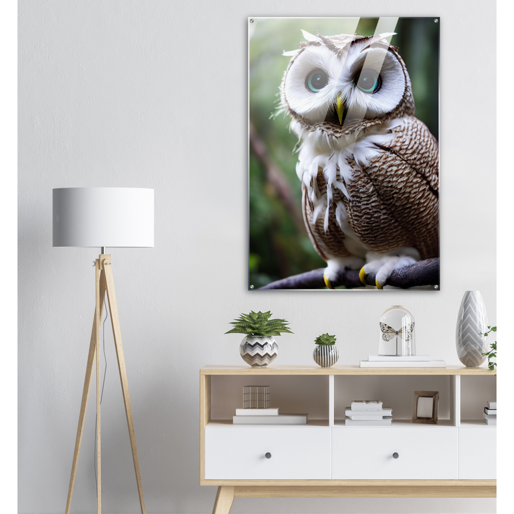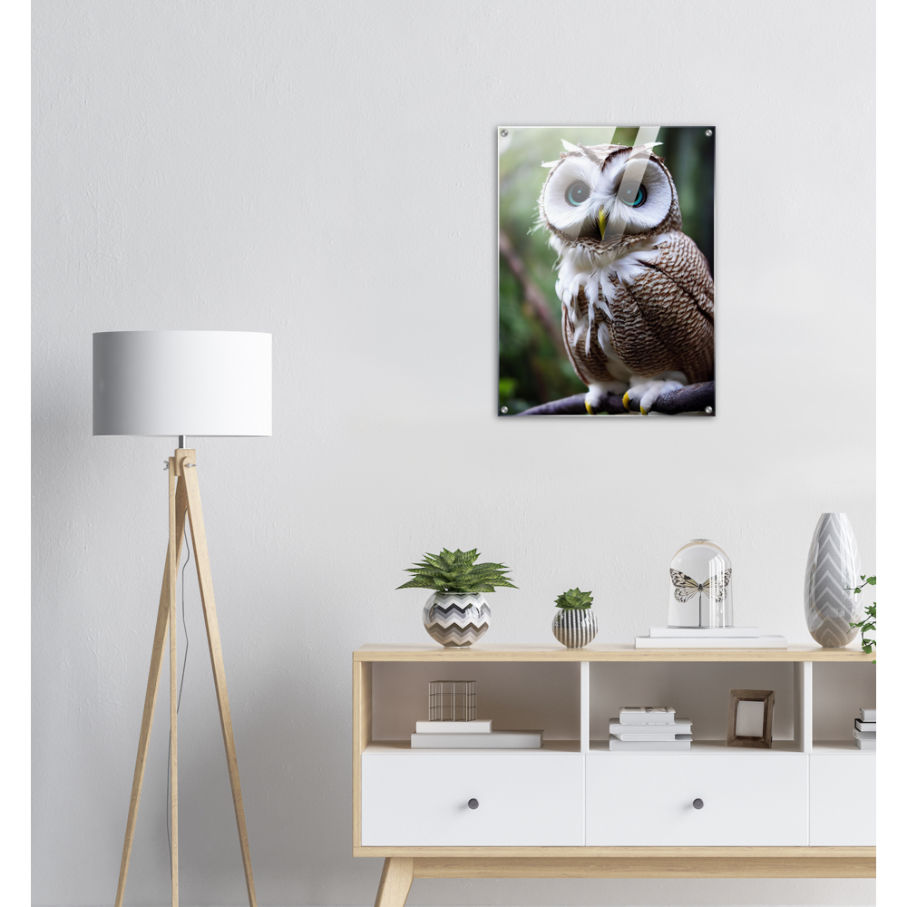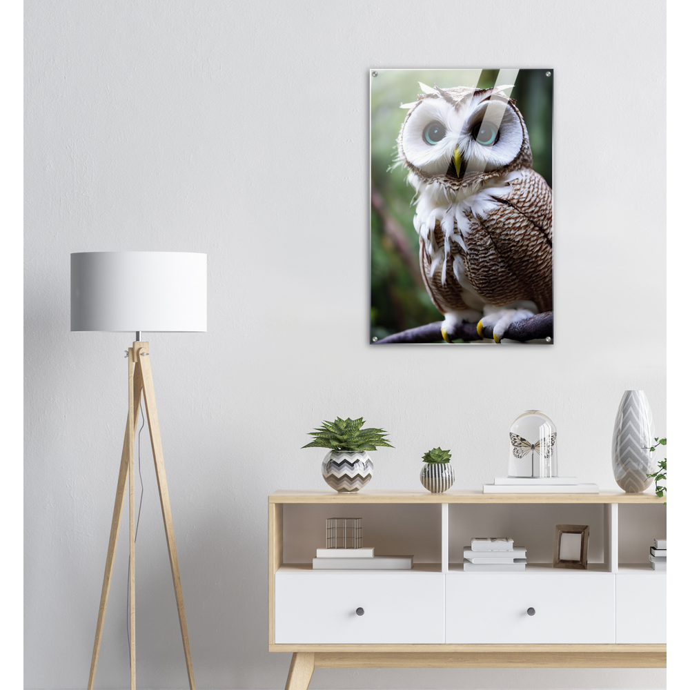 Allow me: Cornelius, the coconut owl (lat. bubo vaccinium). This odd animal has unusual and particularly striking azure eyes. Its face is reminiscent of the inside of the coconut, which - in combination with its brown and white plumage - also earned it its name. The combination of coconut and owl (order Strigiformes) goes back to John Grayst and, as always, is exclusively available at Pixelboys. Since the appearance of the first fruit owl, these wonderful animals with the eye-catching plumage have been on everyone's lips in our editorial office and no matter which fruit owl, two or three of the animals in combination are an unbeatable eye-catcher. Also check out the other Fruit Owls. Whether on acrylic, as a poster with or without a frame, as a printed mug or a poster in stripes - combine your favorites and don't forget to come back soon: this is our selection for 2022 - the next animals will be added in spring 2023.