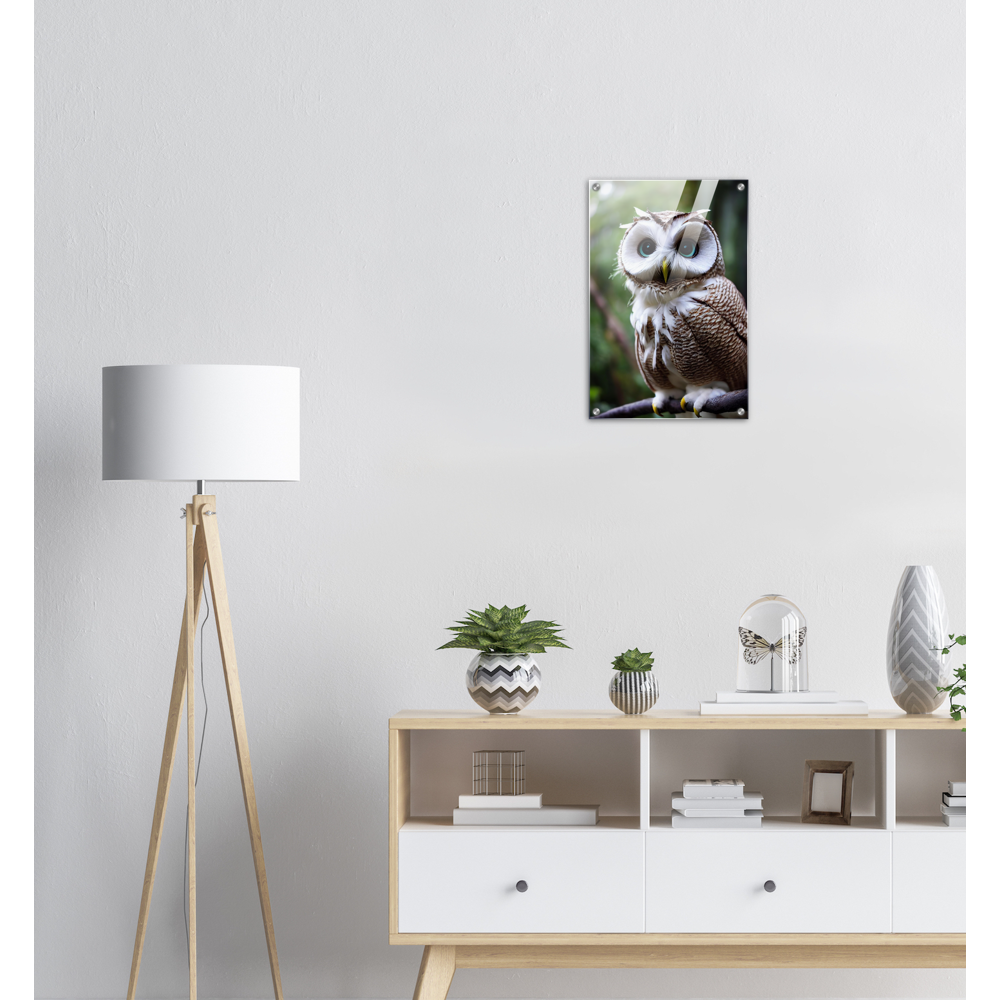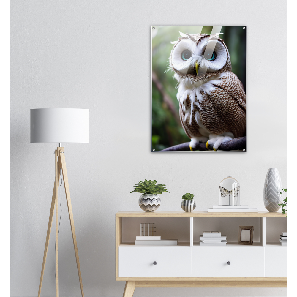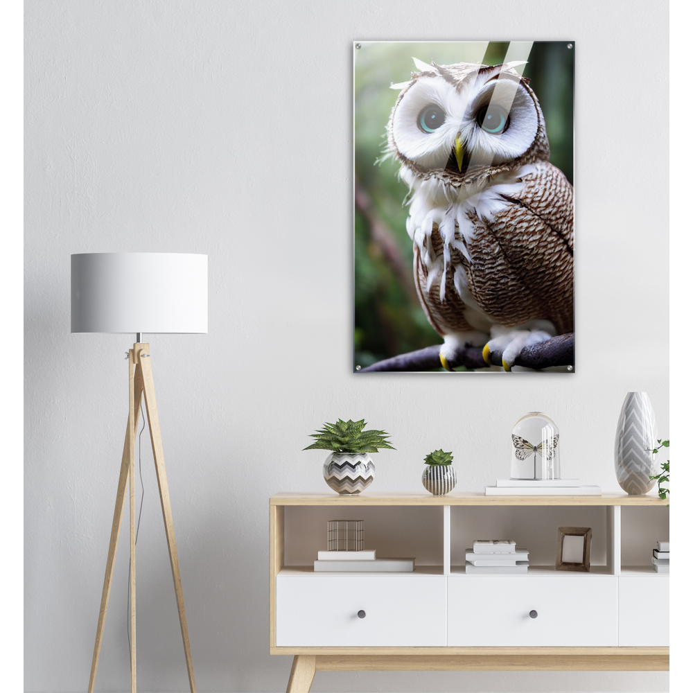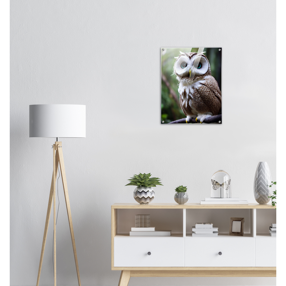 Allow me: Cornelius, the coconut owl (lat. bubo vaccinium). This odd animal has unusual and particularly striking azure eyes. Its face is reminiscent of the inside of the coconut, which - in combination with its brown and white plumage - also earned it its name. The combination of coconut and owl (order Strigiformes) goes back to John Grayst and, as always, is exclusively available at Pixelboys. Since the appearance of the first fruit owl, these wonderful animals with the eye-catching plumage have been on everyone's lips in our editorial office and no matter which fruit owl, two or three of the animals in combination are an unbeatable eye-catcher. Also check out the other Fruit Owls. Whether on acrylic, as a poster with or without a frame, as a printed mug or a poster in stripes - combine your favorites and don't forget to come back soon: this is our selection for 2022 - the next animals will be added in spring 2023.