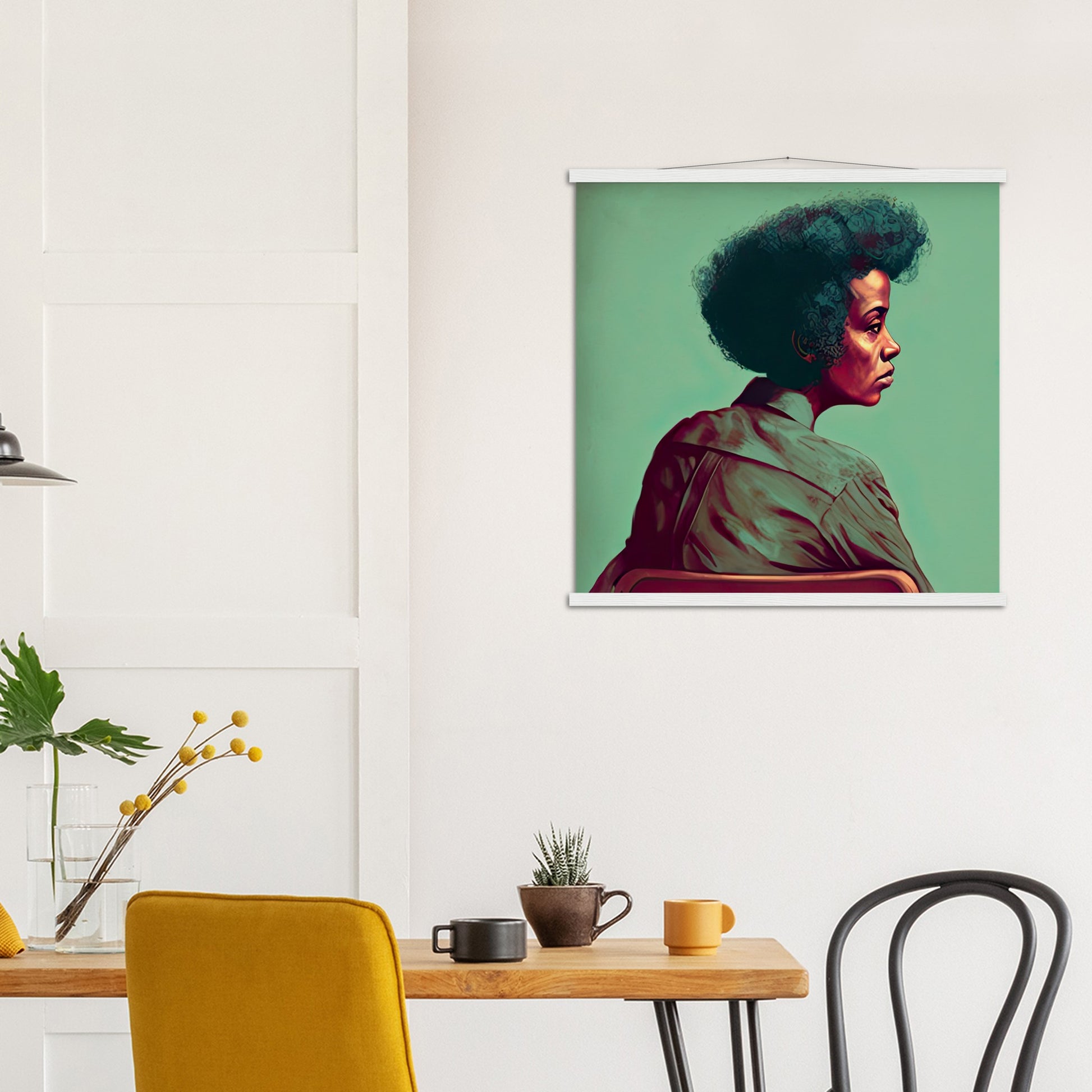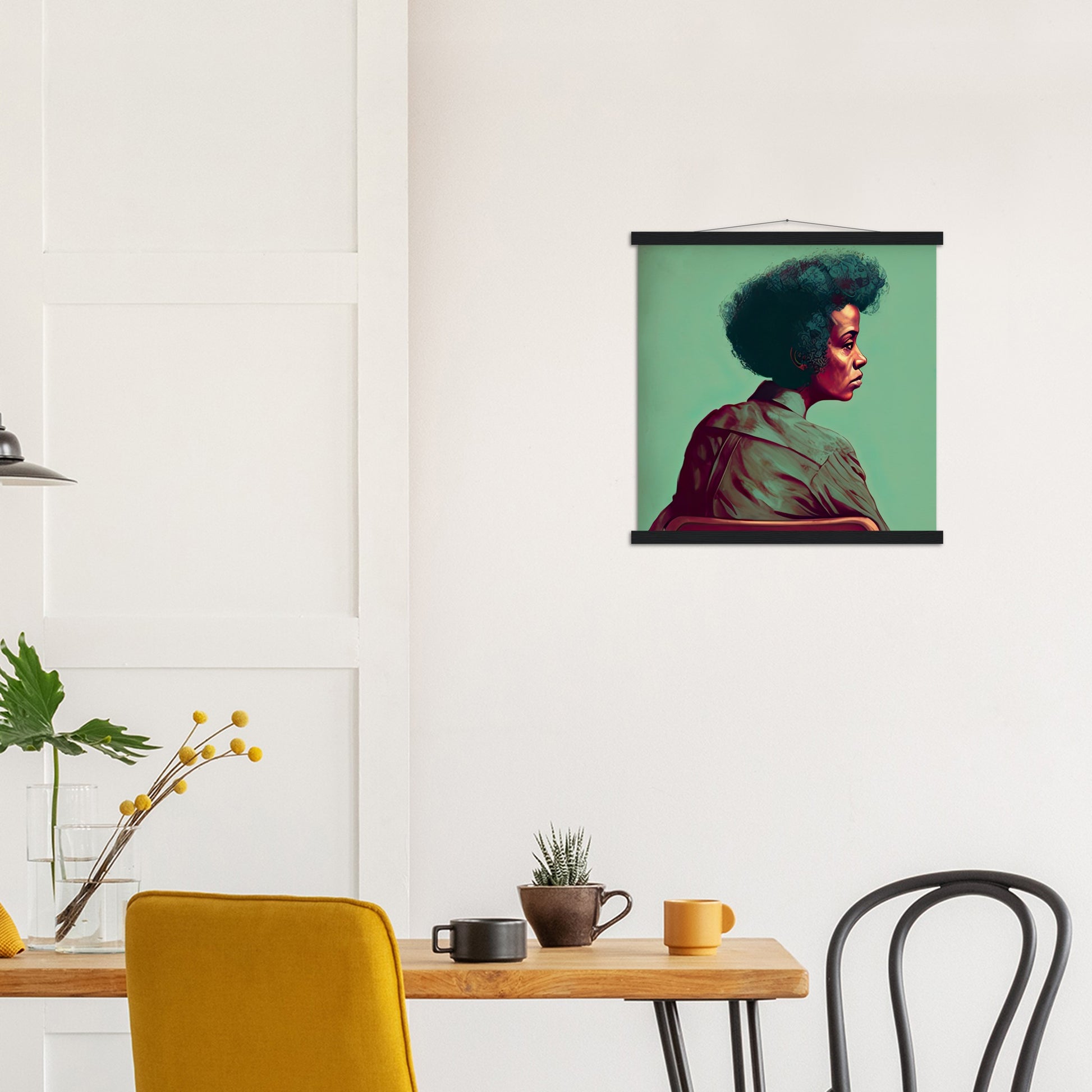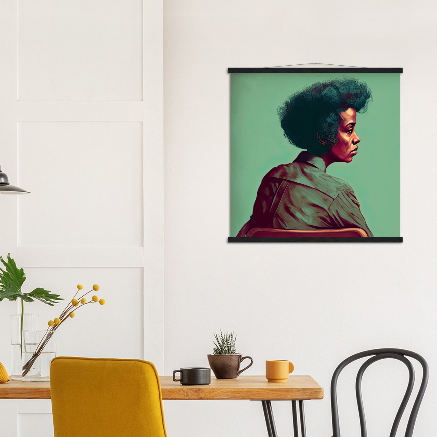 A high quality poster and a beautiful ledge hanger. Each hanger includes four wooden slats, two that clamp the top of the print and two that clamp the bottom, and high quality cotton cord to match the color of the slats. Strong magnets hold your artwork securely and allow the customer to change the artwork if needed.