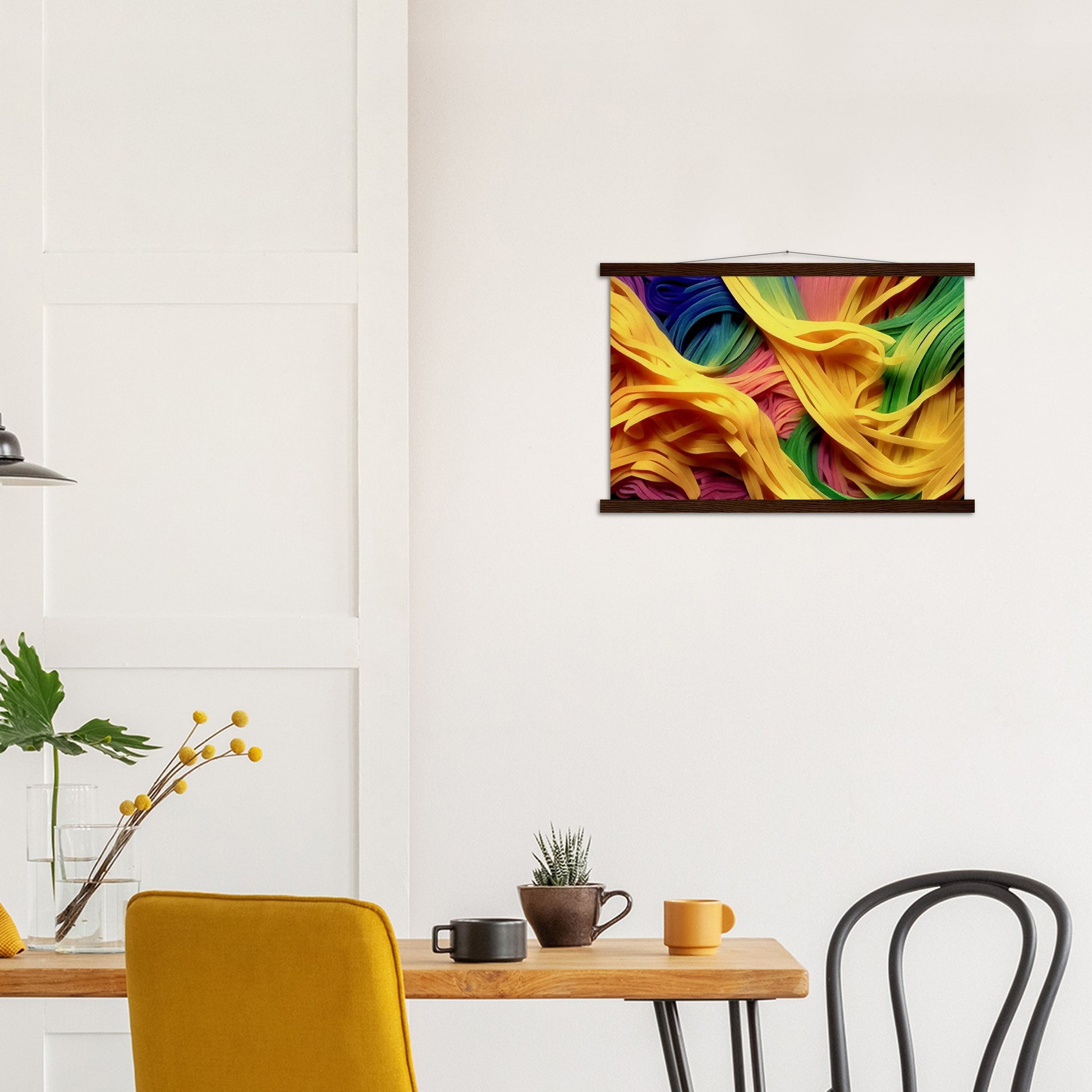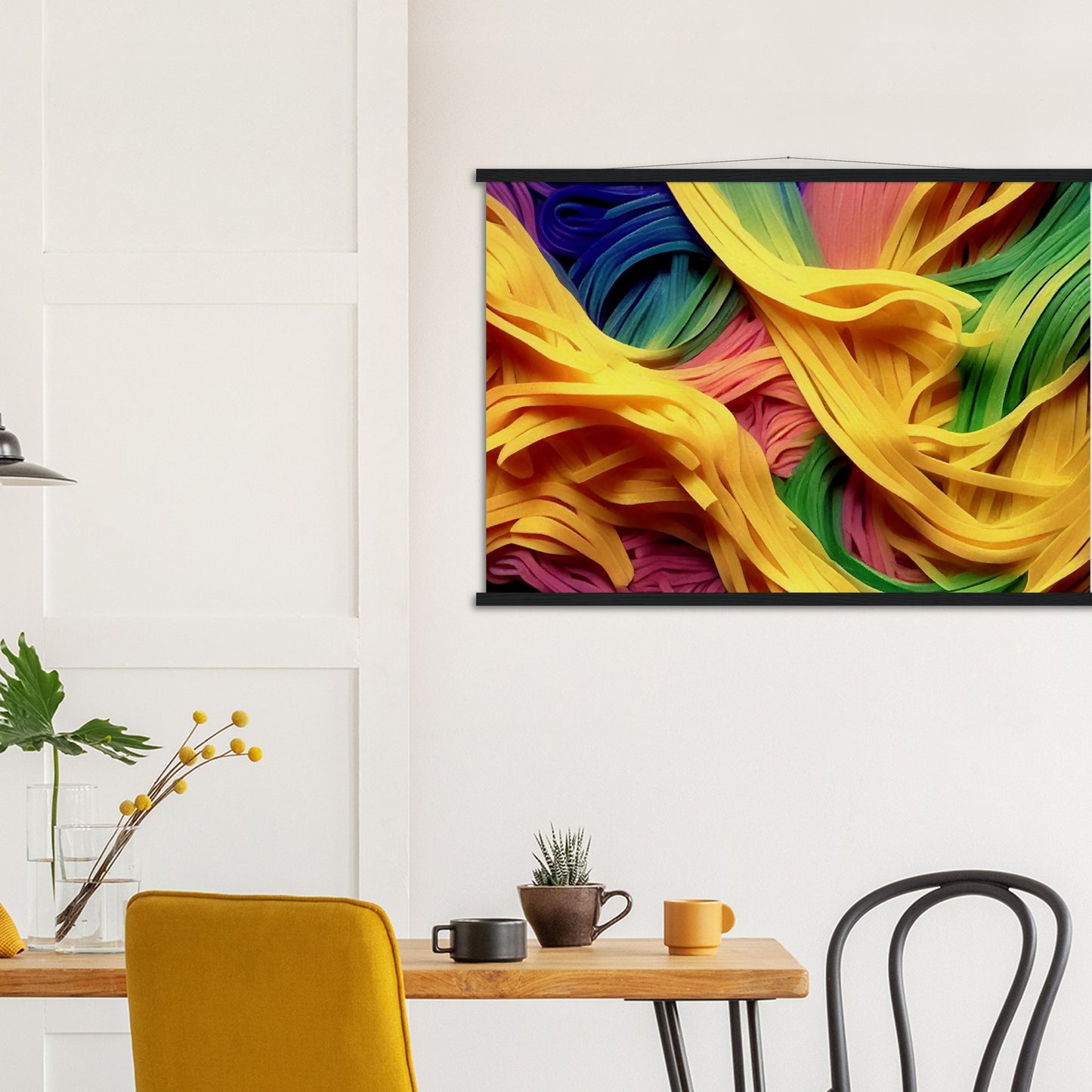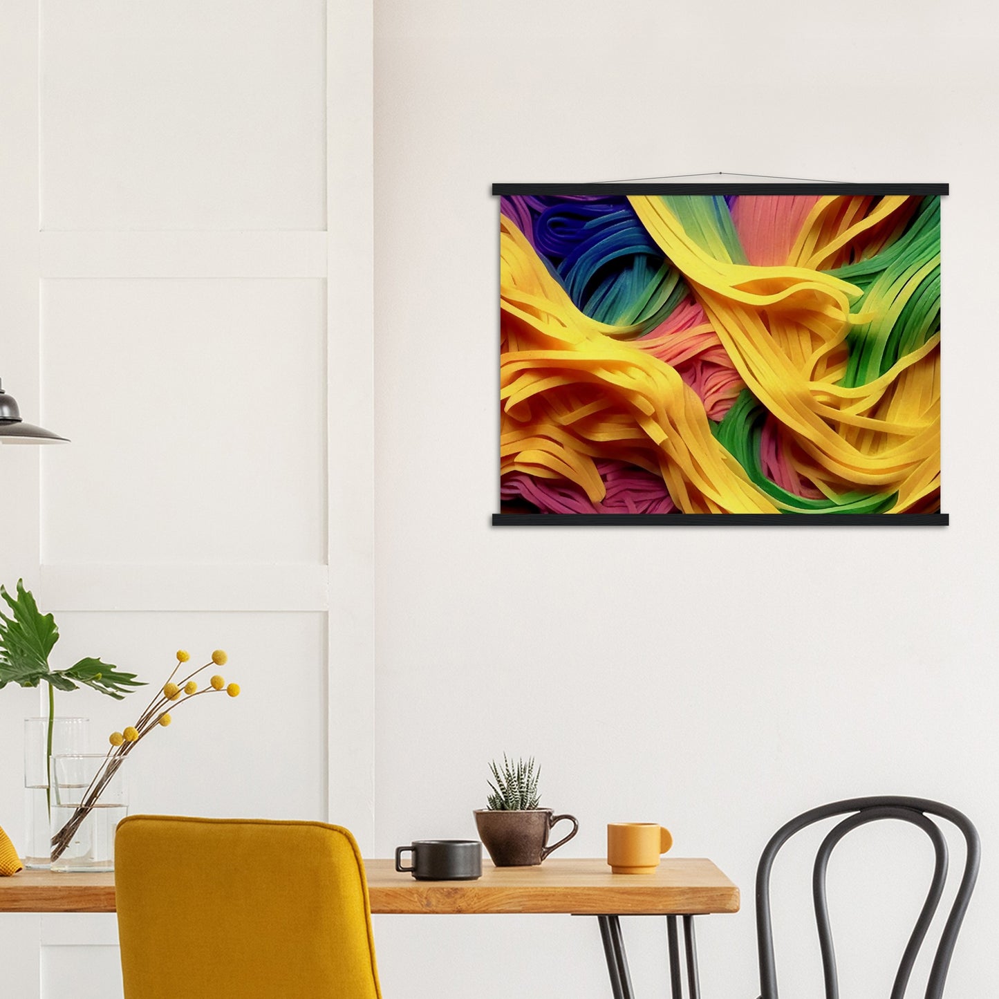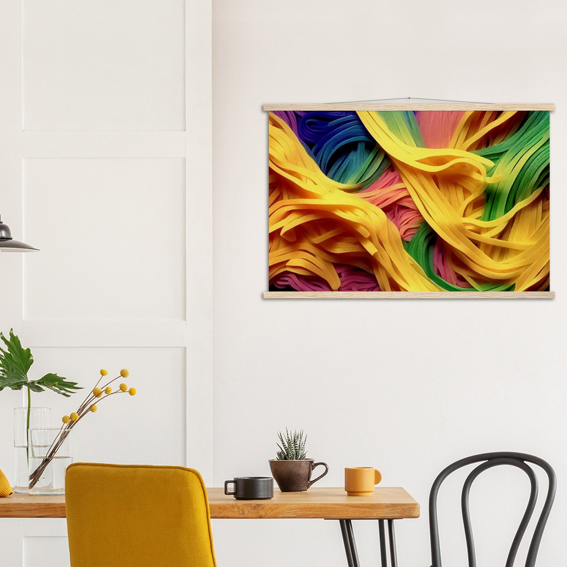 What a delightful mess of tagliatelle! In different colors above and below each other, this pasta work of art can soon adorn your wall! In the kitchen, the dining room or in the restaurant - you will definitely find the right place for it. As always, our exclusive motif is available on post with and without a frame, with strips, behind acrylic and of course on printed mugs! If you like the motif, be sure to check out the other product categories as well!