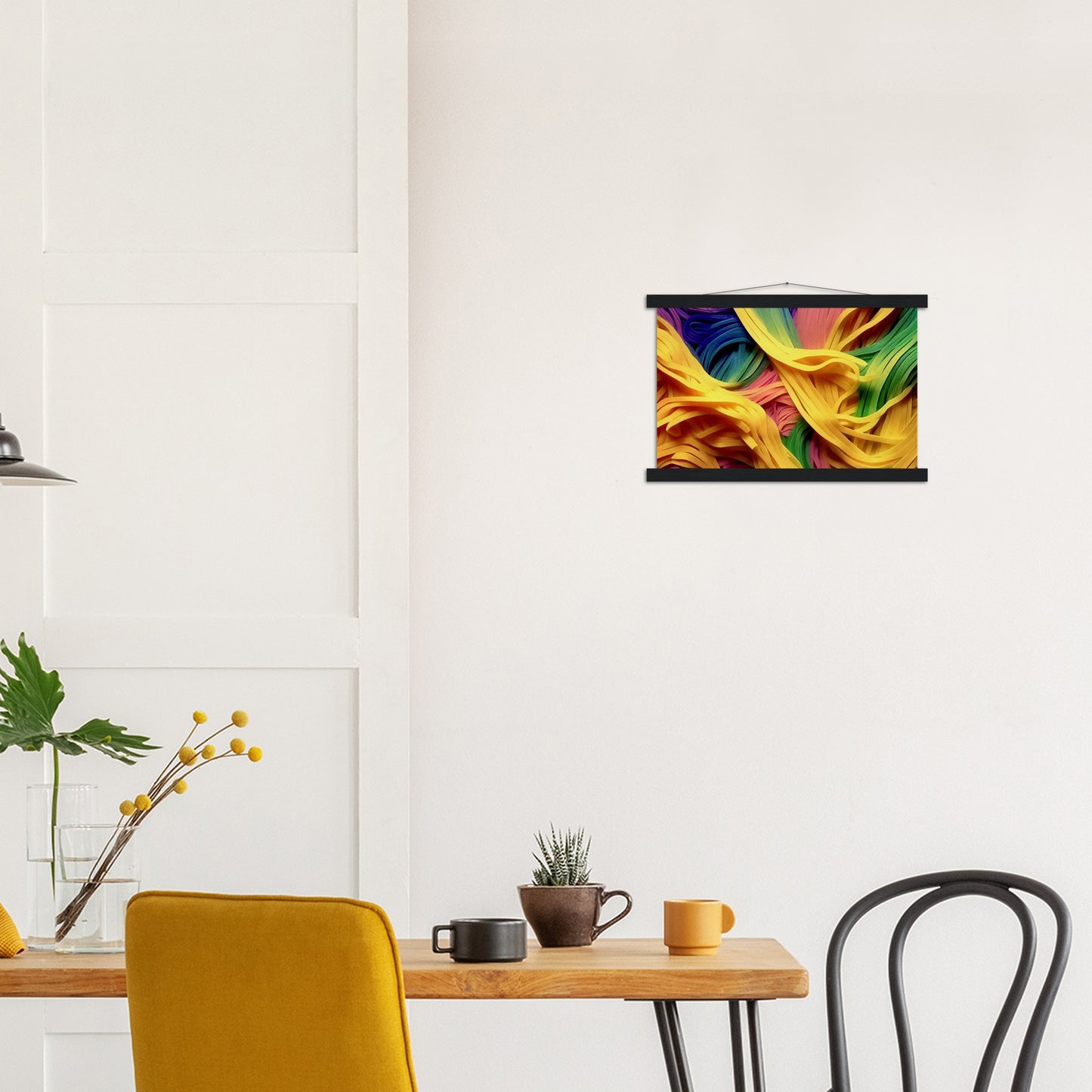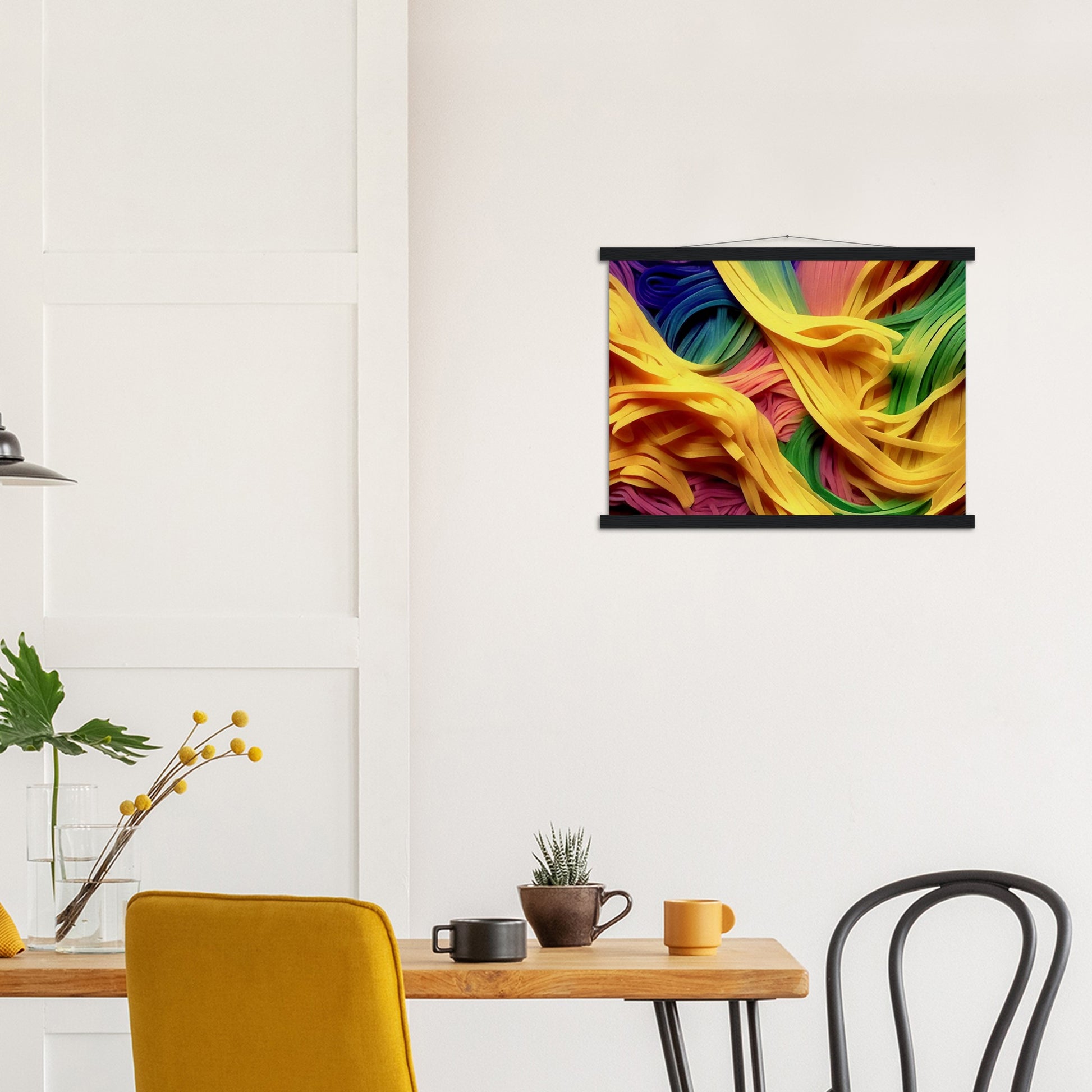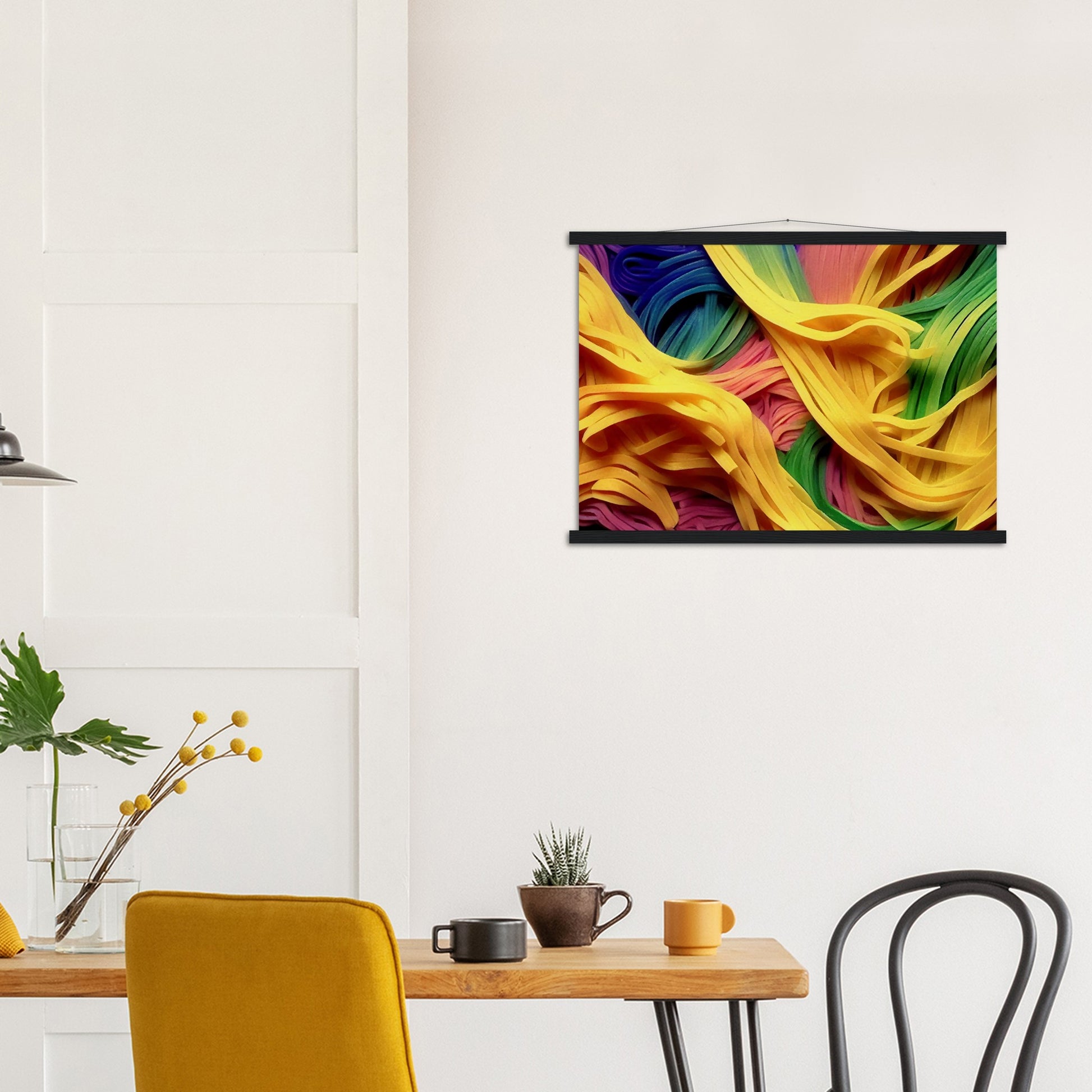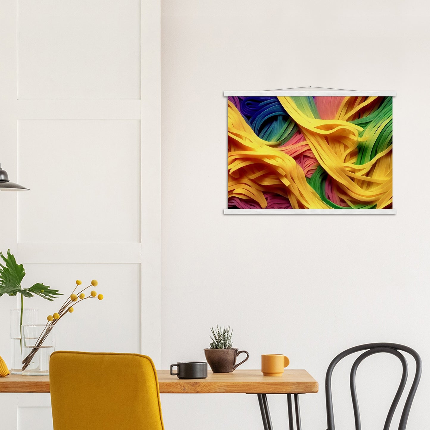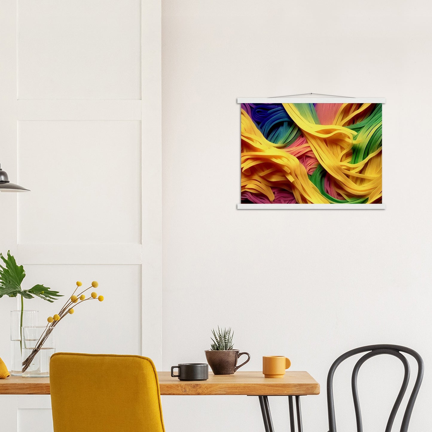 What a delightful mess of tagliatelle! In different colors above and below each other, this pasta work of art can soon adorn your wall! In the kitchen, the dining room or in the restaurant - you will definitely find the right place for it. As always, our exclusive motif is available on post with and without a frame, with strips, behind acrylic and of course on printed mugs! If you like the motif, be sure to check out the other product categories as well!
