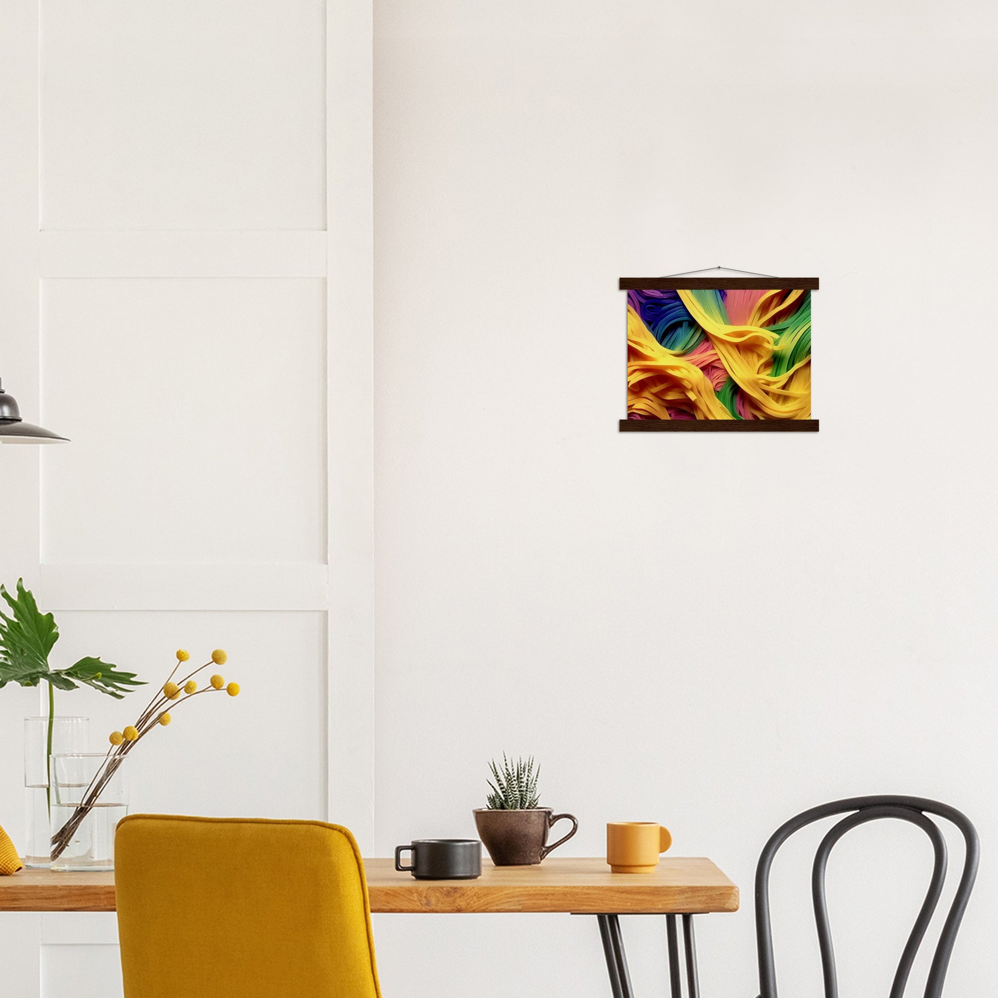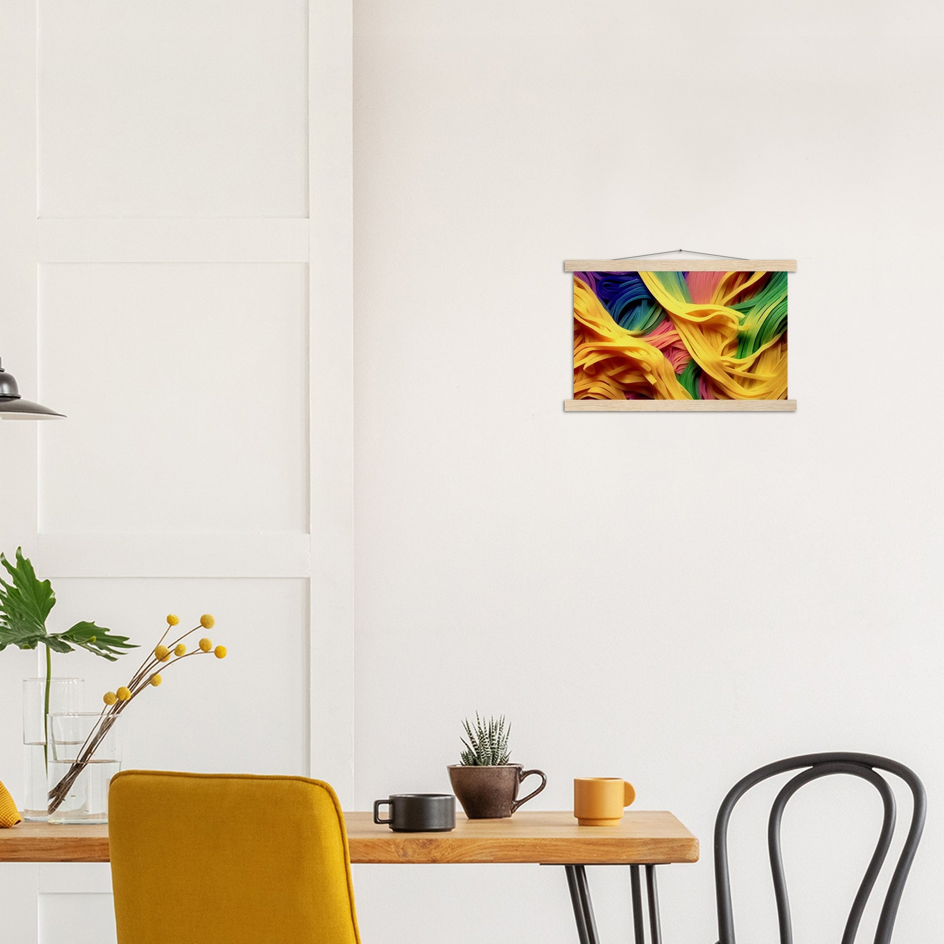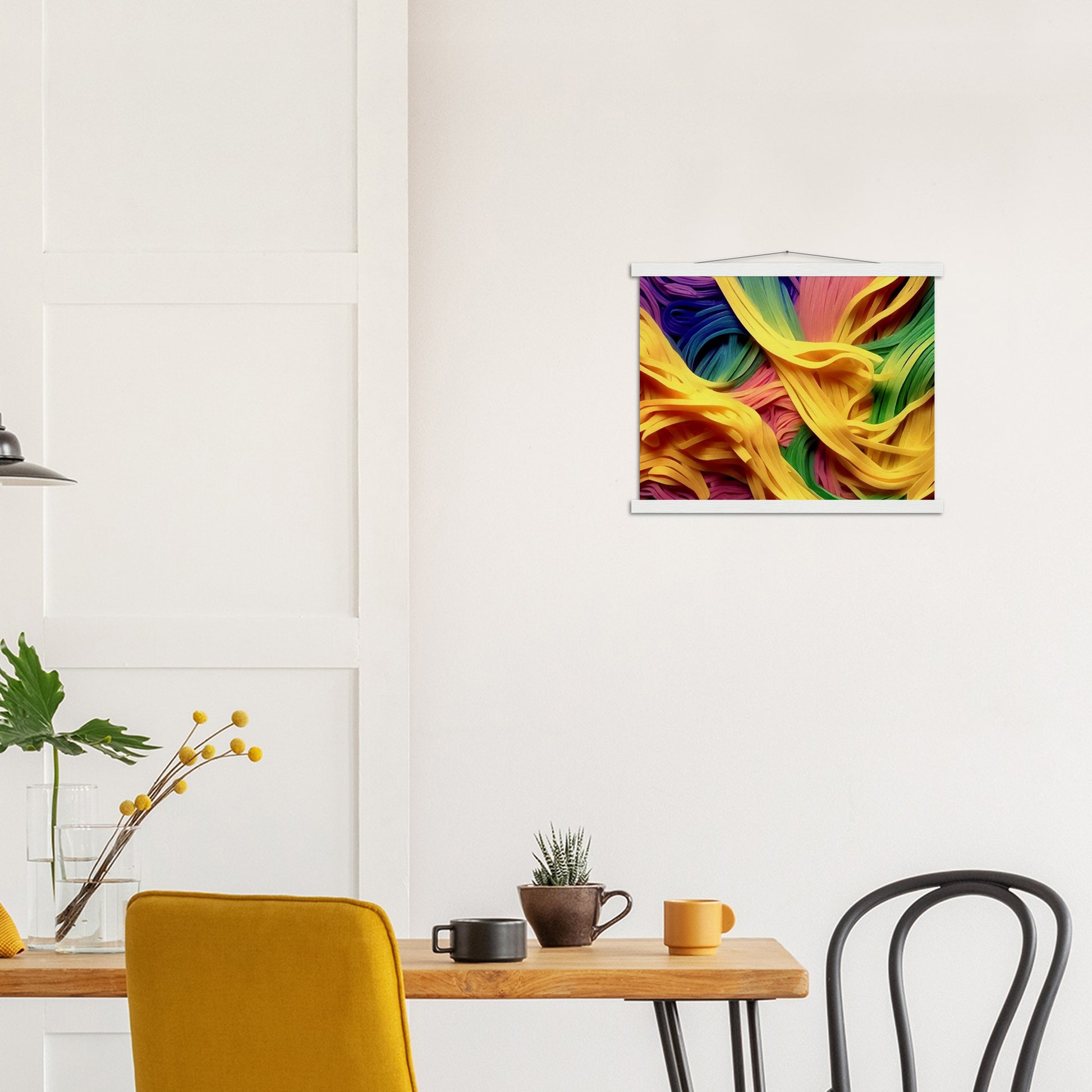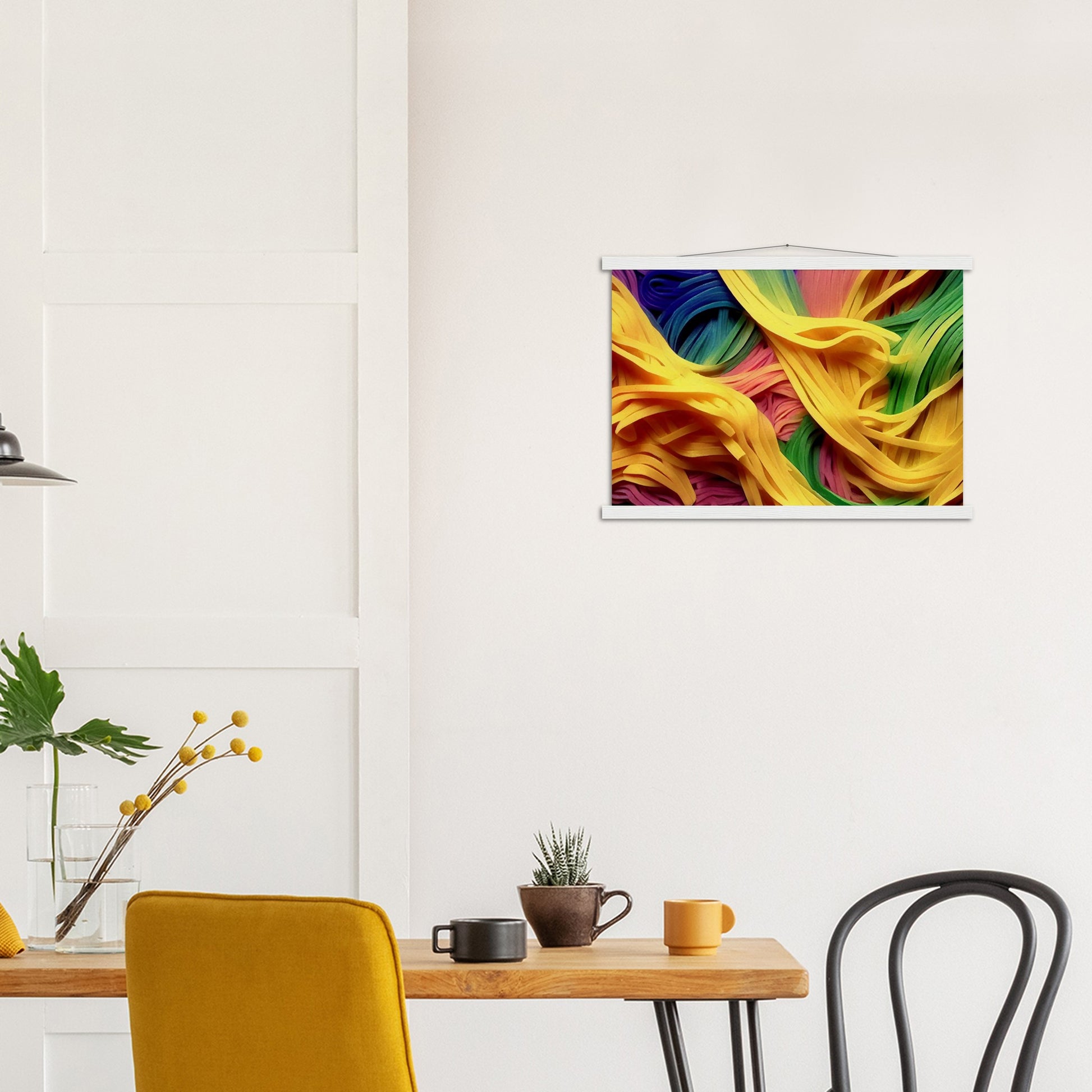 What a delightful mess of tagliatelle! In different colors above and below each other, this pasta work of art can soon adorn your wall! In the kitchen, the dining room or in the restaurant - you will definitely find the right place for it. As always, our exclusive motif is available on post with and without a frame, with strips, behind acrylic and of course on printed mugs! If you like the motif, be sure to check out the other product categories as well!