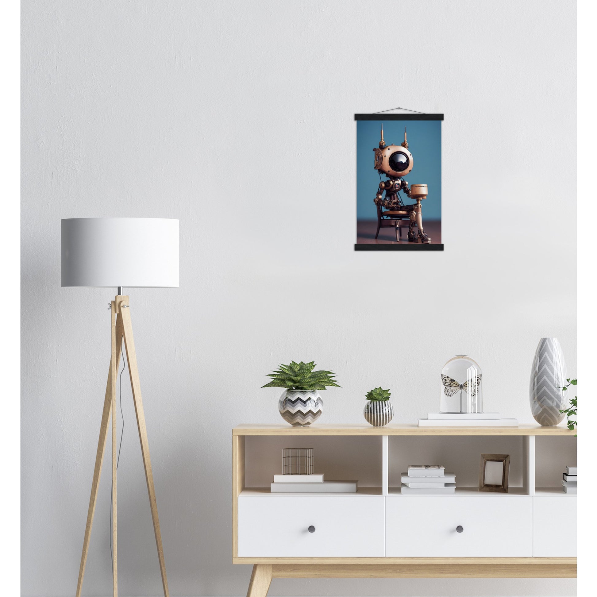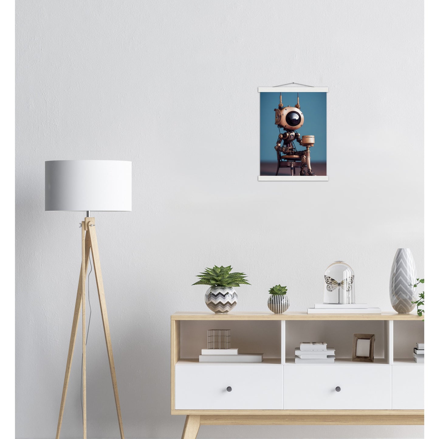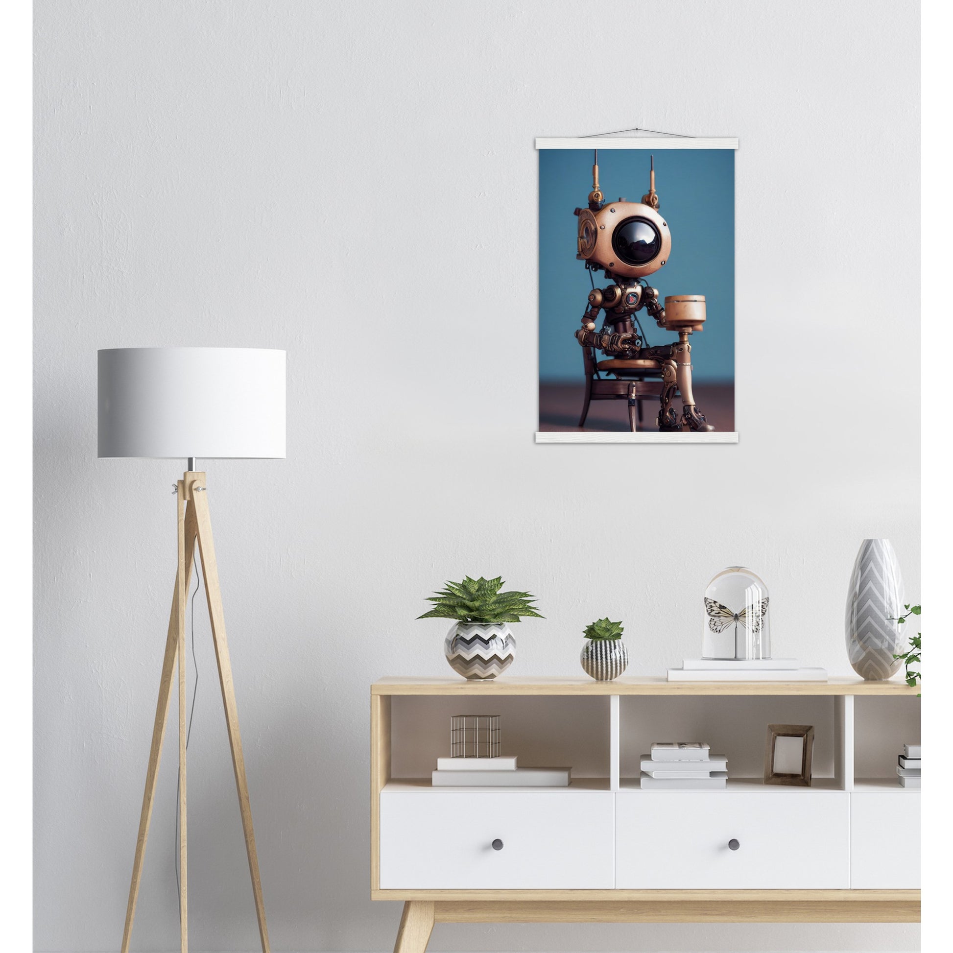 Poster with bars - Tiny robot with a present - "Tiny Sam"