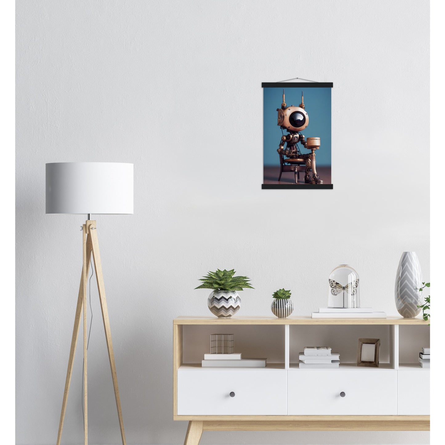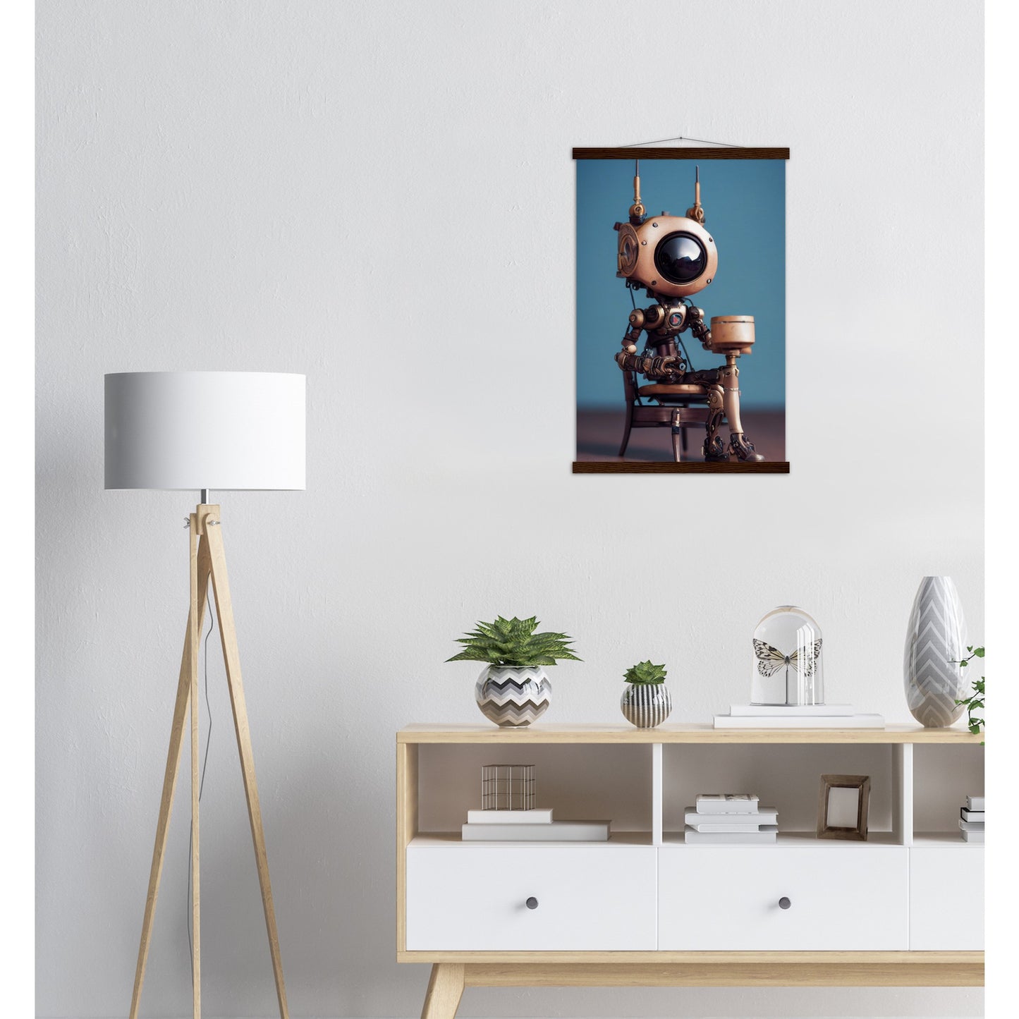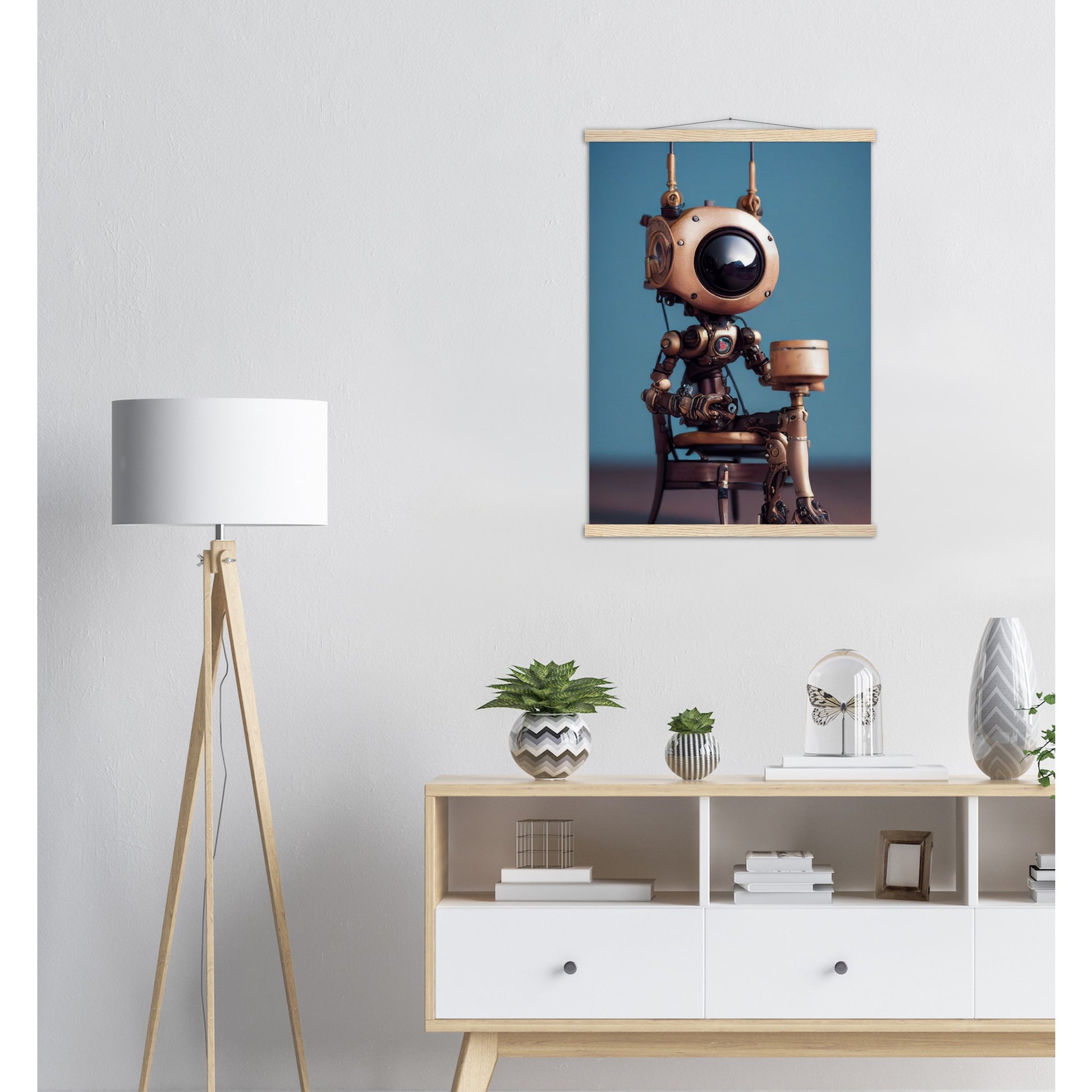 Poster with bars - Tiny robot with a present - "Tiny Sam"