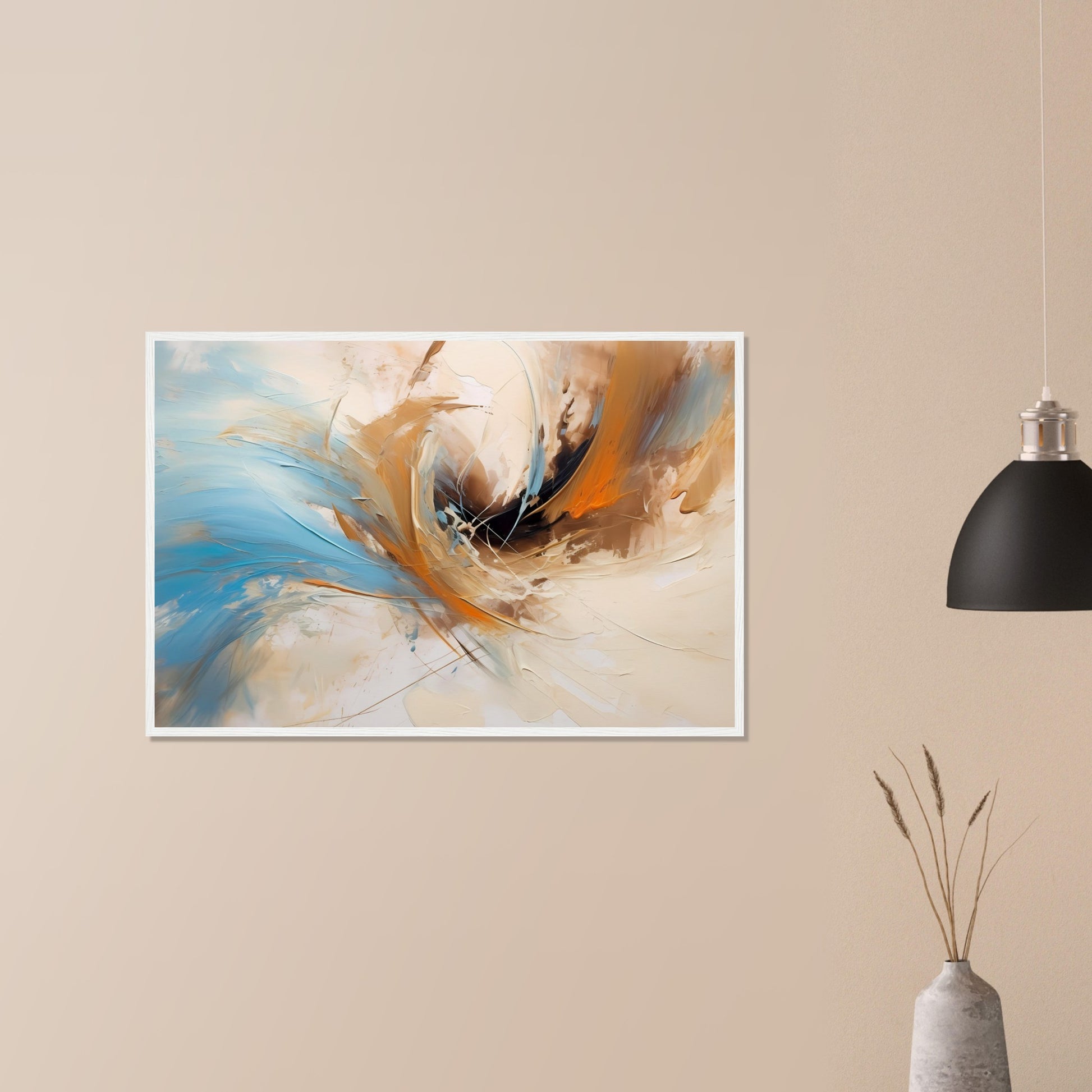 Discover the fascinating marriage of simplicity and complexity in this unique work of art, captured by PIXELBOYS and now available as a stunning poster. While it's not Vincent van Gogh's world-renowned painting, The Sunflowers, that has wowed the art world, this abstract masterpiece draws the viewer in. Subtle use of texture paste creates a subtle yet striking texture that makes the image stand out. With soft gradients and high dynamics, the transitions from blue, white, beige and the colors of the sky and the earth combine to form a harmonious composition.