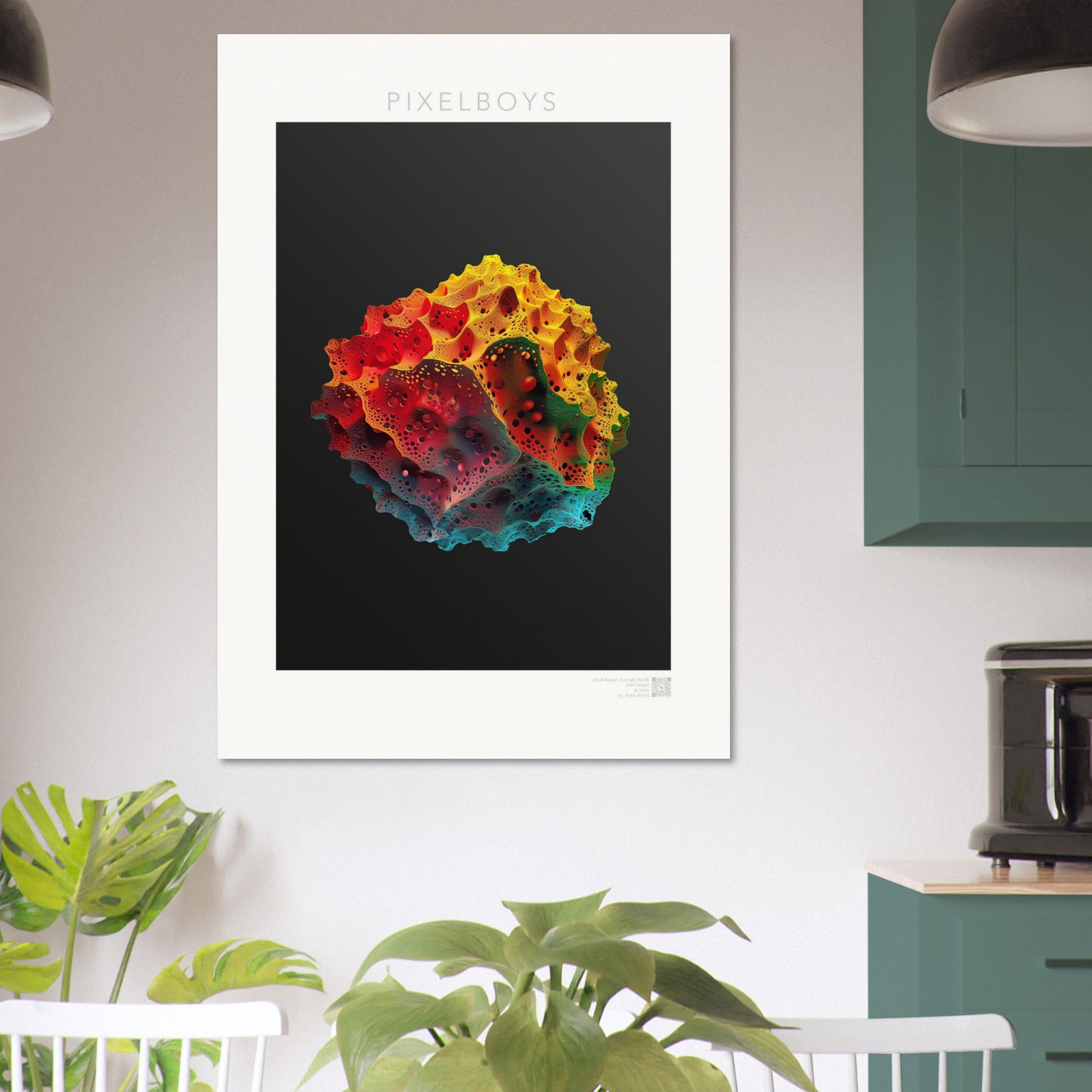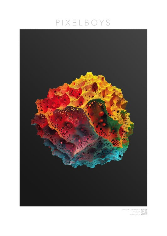 Vivid Abyss is a masterful work by digital artist John Grayst that combines the depth and intensity of an abyssal spectrum with the warmth and dynamism of a thermal color flow. This stunning poster, presented by PIXELBOYS, captures the infinite complexity and energy of a fractal, glowing in a palette of vibrant reds, yellows and blues.