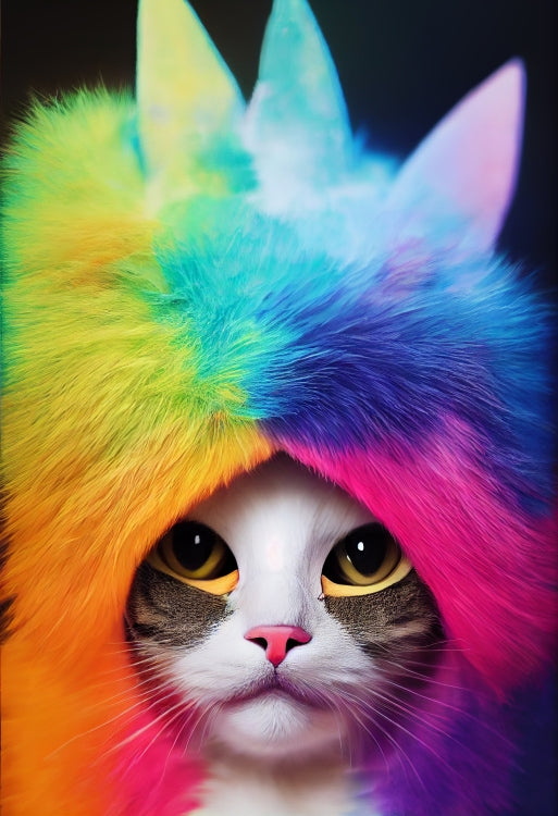 Póster con barras - Gato arcoíris colorido único "Luna"