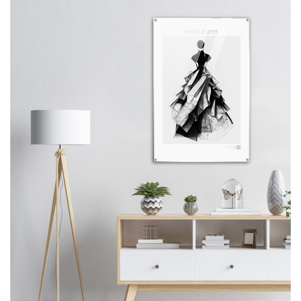 Ambre - la rubia! En nuestro 5º motivo de la serie "Haute Couture", el artista imita a " El Artista Desconocido N°. 517 ”es un lujoso vestido de tela de varias capas para ocasiones festivas. El top cerrado tiene lados libres y definitivamente es un vestido para mujeres seguras de sí mismas. Organza, encaje y tafetán se superponen en la falda. Por supuesto, este exclusivo estampado acrílico no debe faltar en la colección.