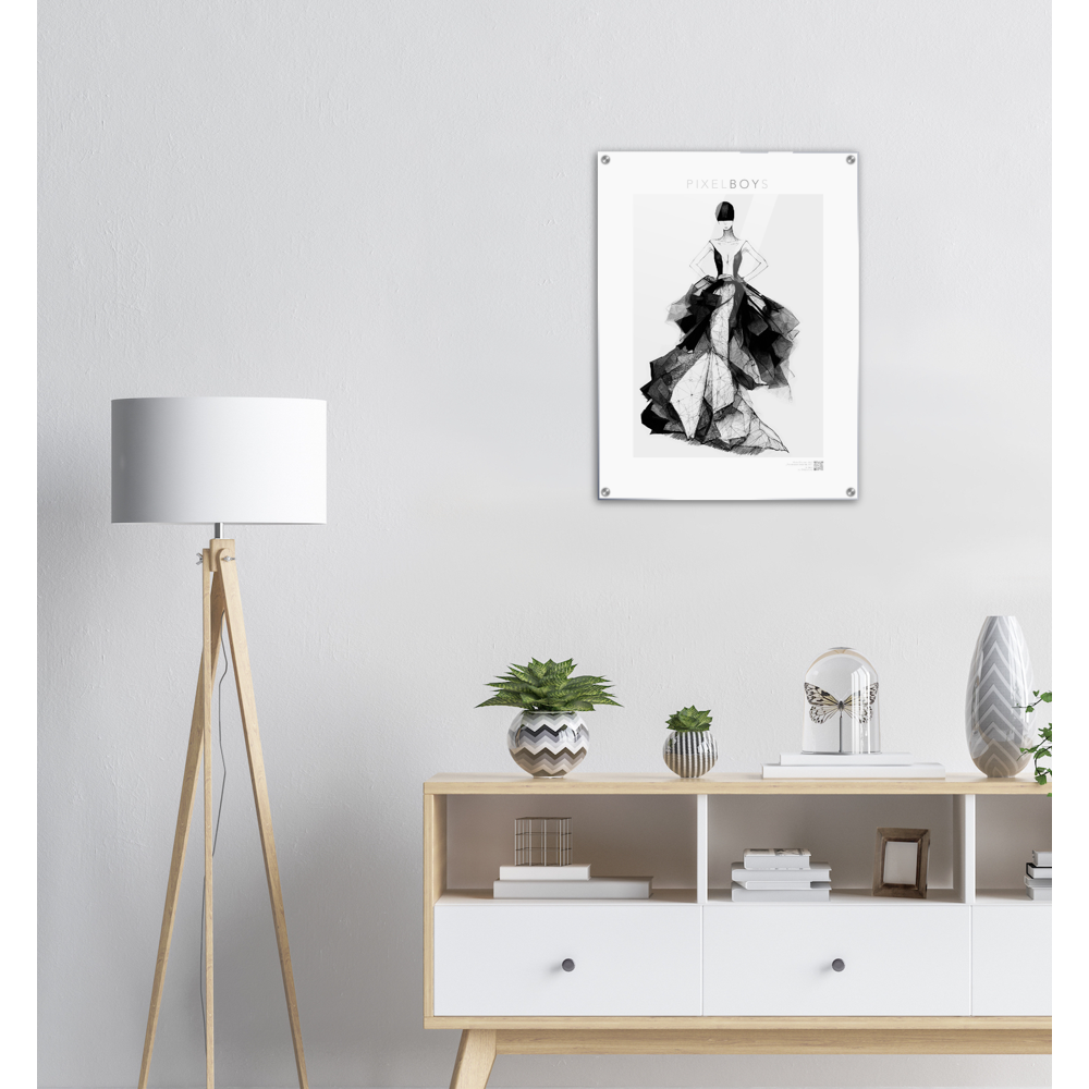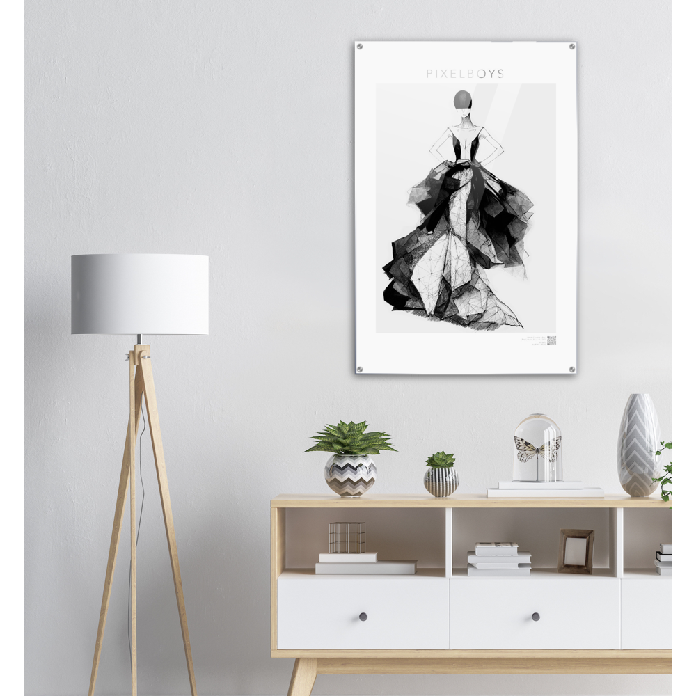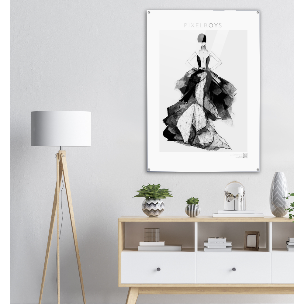 Con la séptima pintura acrílica - "Rose" la colección "Haute Couture" del artista " The Unknown Artist Nb. 517 ” finalizará en 2022. Este último boceto de moda combina una enagua rígida de corte sirena con capas de tafetán almidonado y organza superpuesta. La modelo tiene el hermoso nombre Rose, y como una rosa, una mujer pronto florecerá en tu pared. Más obras de arte de la serie "Haute Couture", también como pinturas acrílicas XXL, están disponibles aquí .