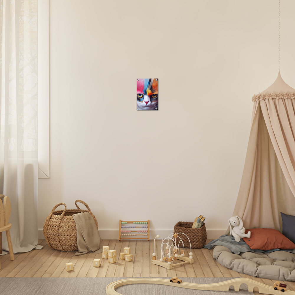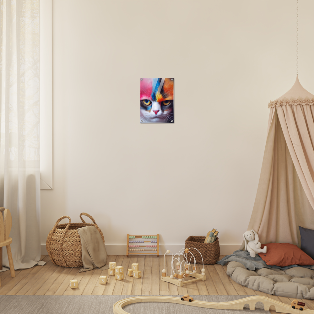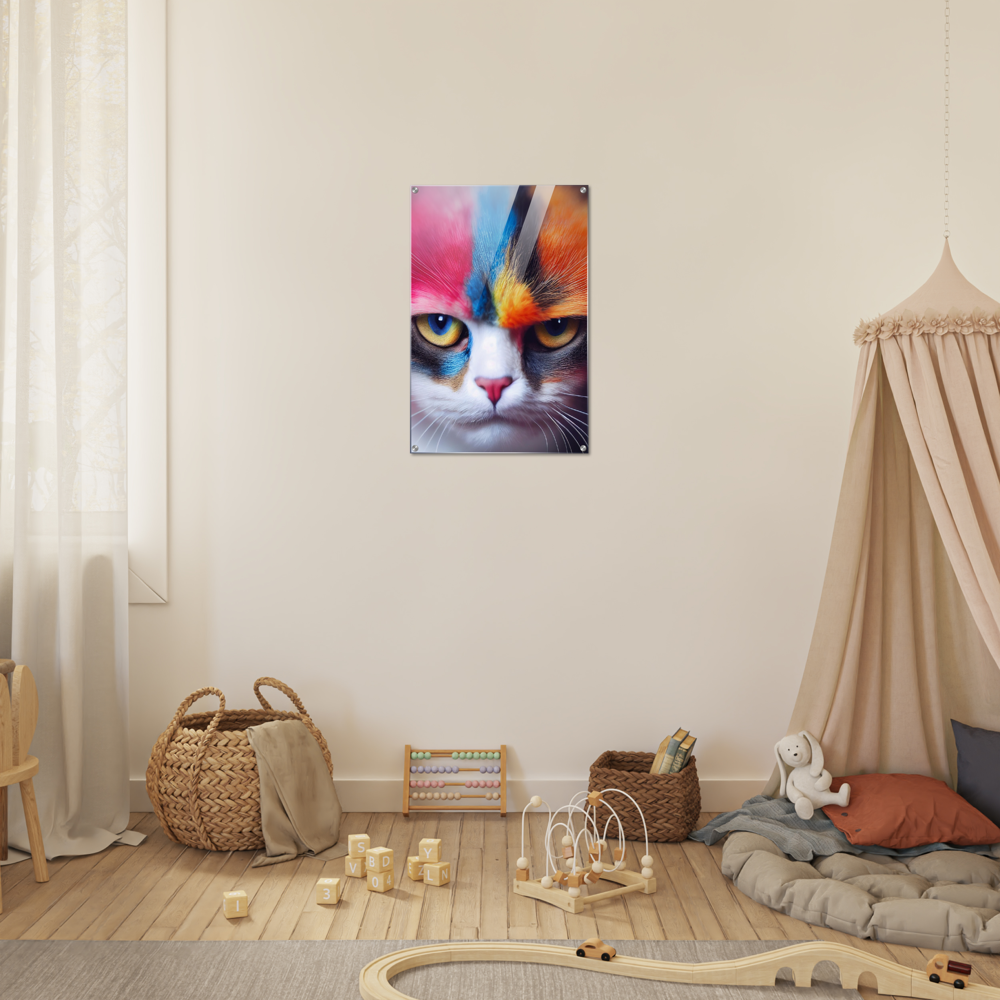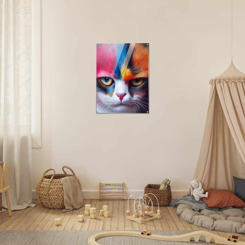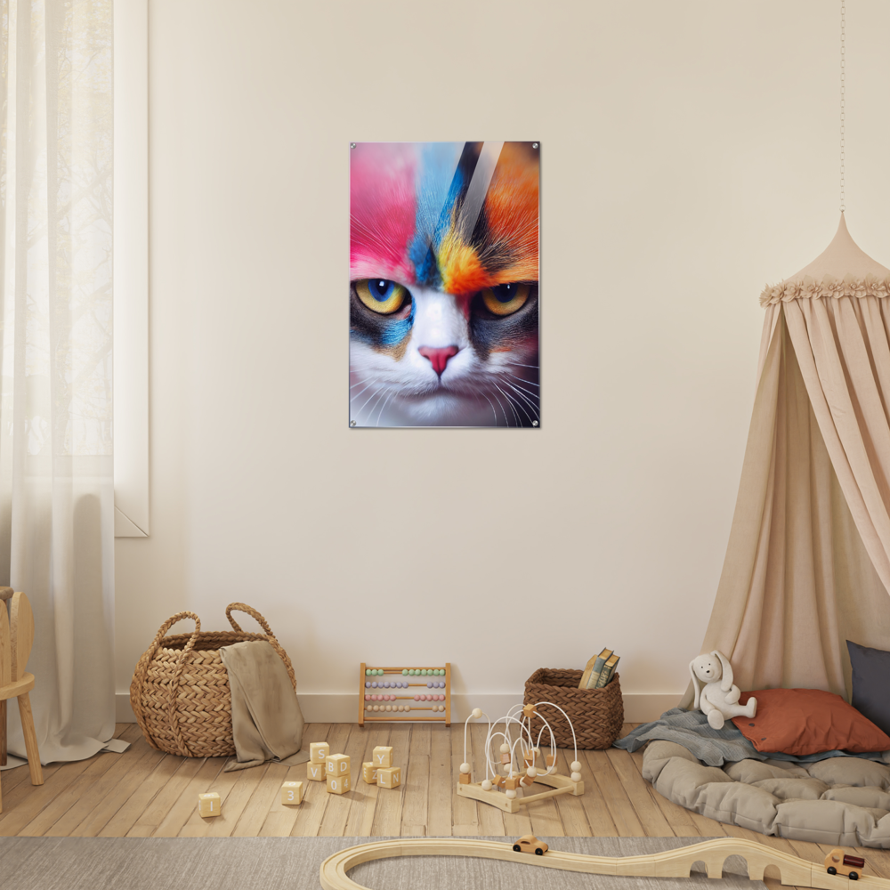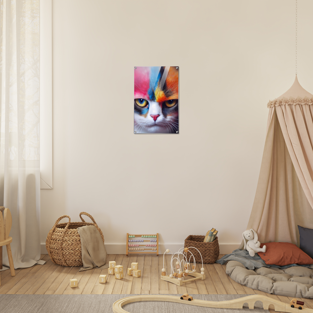 Pintura acrílica - Gato arcoíris gruñón "Lucy"