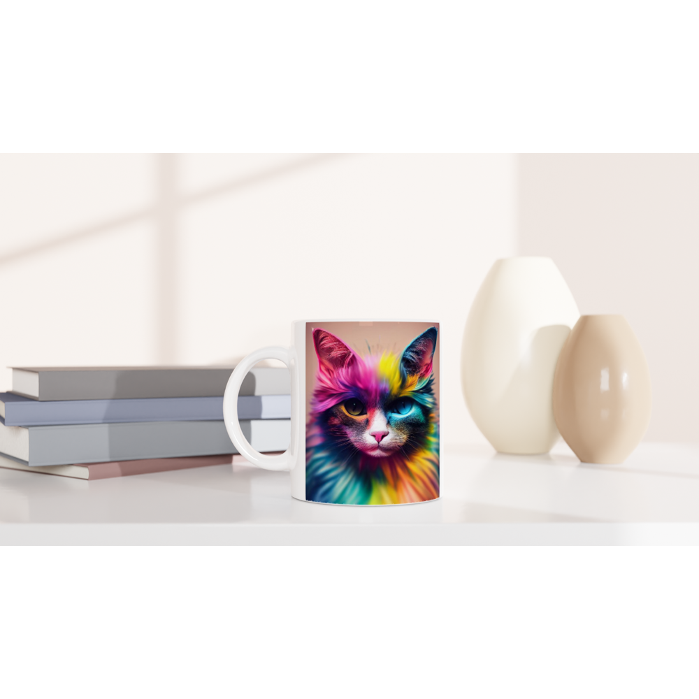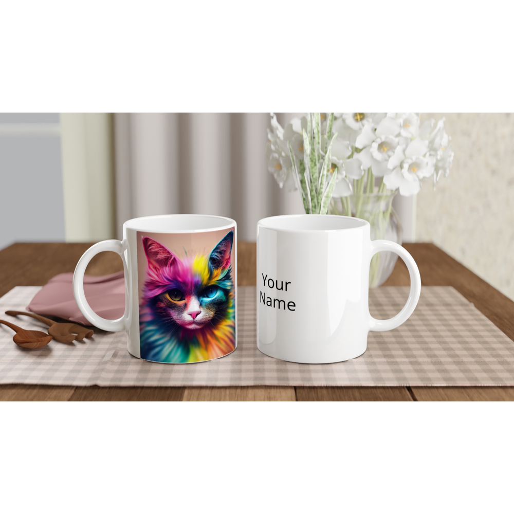 Taza personalizada con el único y colorido gato arcoíris "Luna"