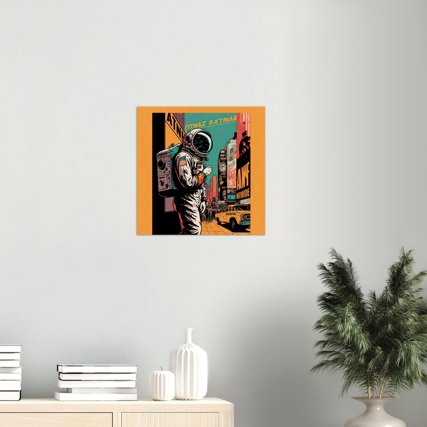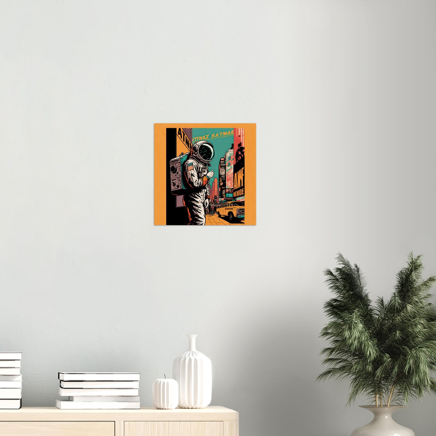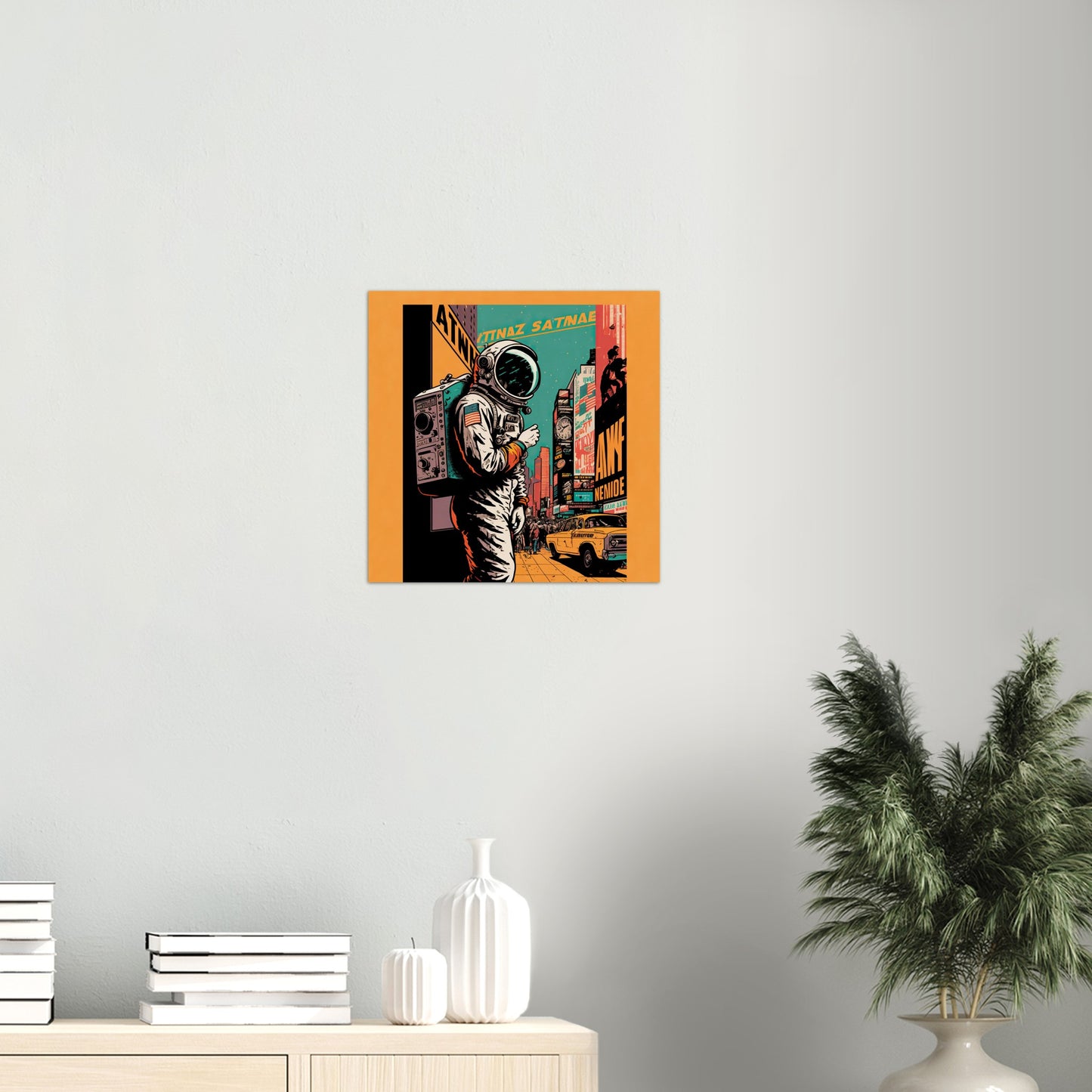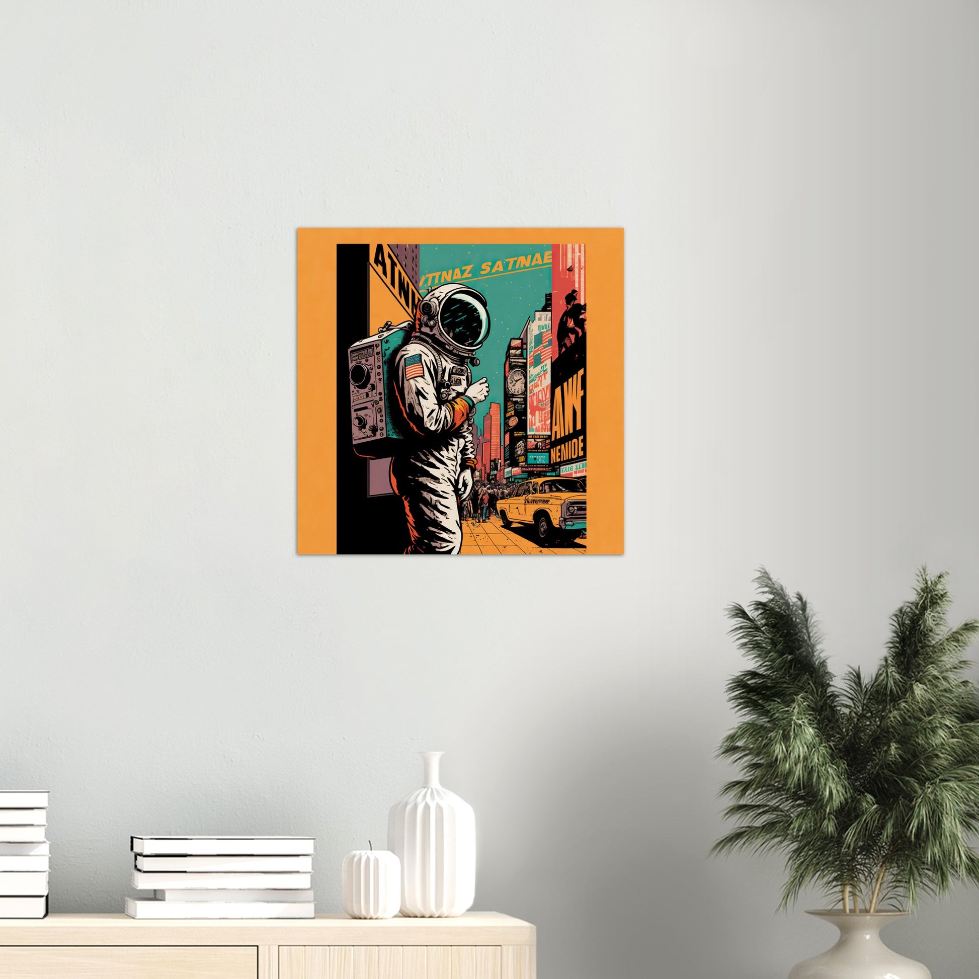 ¡Nueva York, Nueva York! No existe tal cosa como nada en Time Square, Nueva York. Turistas, neoyorquinos, artistas, atracciones fotográficas: ¡no sorprende que pase un astronauta! Esta ilustración vibrante con colores retro y un estilo vintage no muestra en realidad Times Square, sino una idea de ello. ¿Se notaría siquiera si un extraterrestre con traje caminara por allí? ¡Probablemente no! ¡Nuestro mural de la serie "Austronautas" está disponible como ilustración en carteles con y sin marco, como impresión acrílica y como taza impresa! En este caso, nuestra imagen no es solo cuadrada o vertical, ¡sino en todas las variantes!