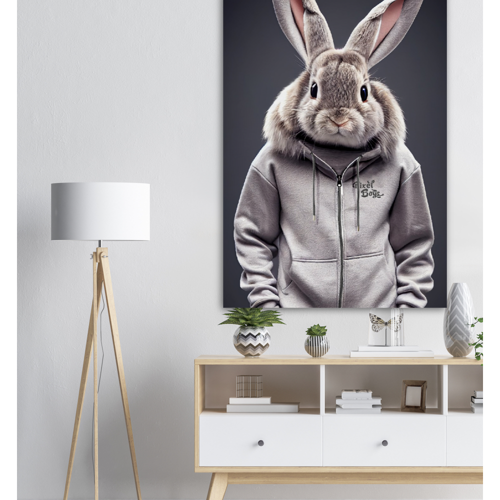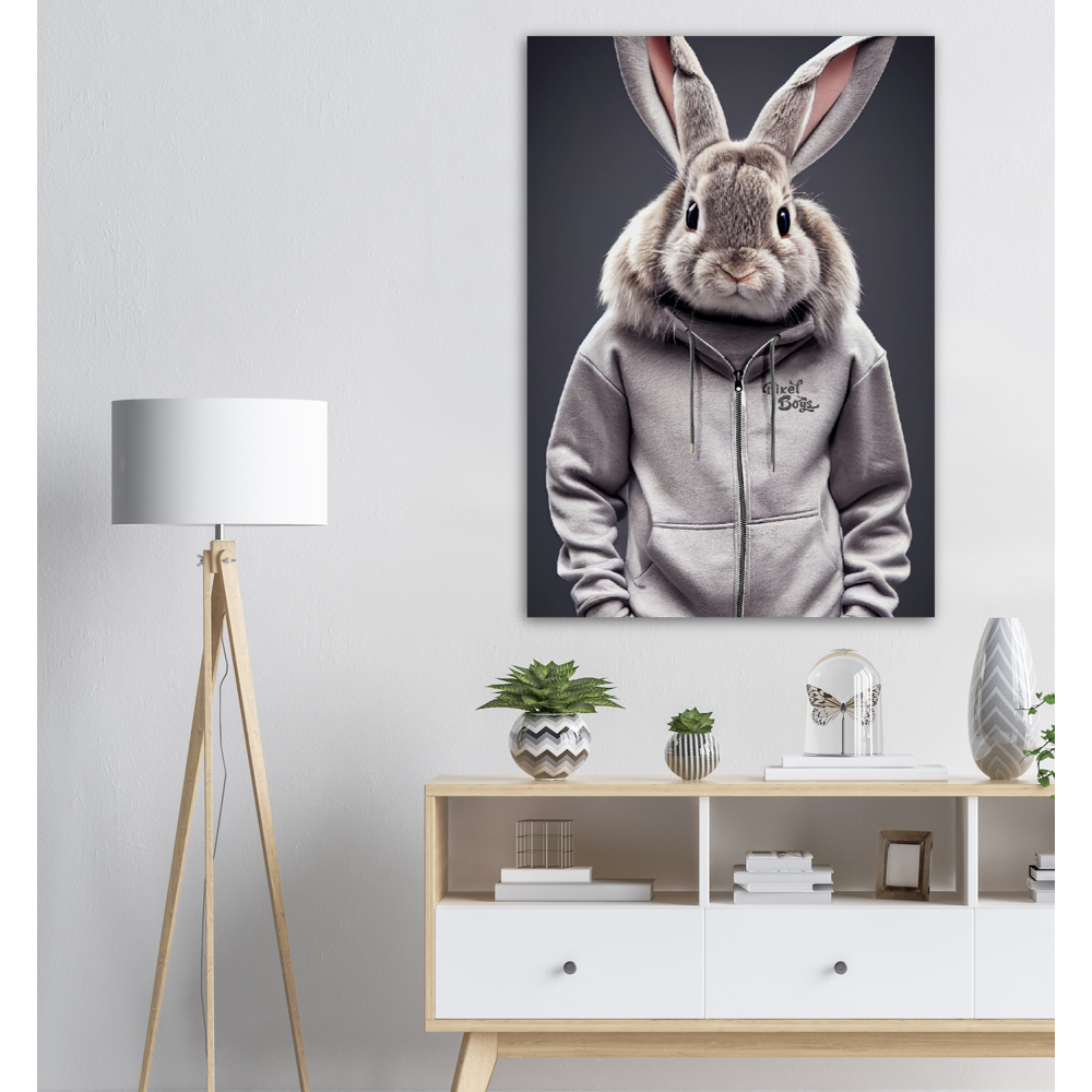 antes de subirse a nuestra foto y convertirse en modelo, patinador y capitán del equipo de fútbol de la escuela secundaria, genial y tal vez un poco bromista, pero lo perdonamos. Un look de ocio bueno y discreto y no solo algo para atletas, sino también perfecto para un día frío en el sofá. ¿Qué quieres decir? En cualquier caso, nuestra imagen es única y no la encontrarás en ninguna otra tienda. Somos los primeros en tener estos motivos. Somos los únicos que tenemos estos motivos. Cuando nos compra, compra el original, ¡y no todos tienen eso! Pintura acrílica, carteles con y sin marco: ¡nuestros conejitos tienen algo para todos!