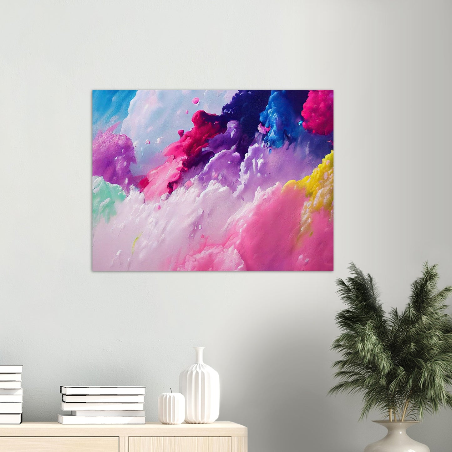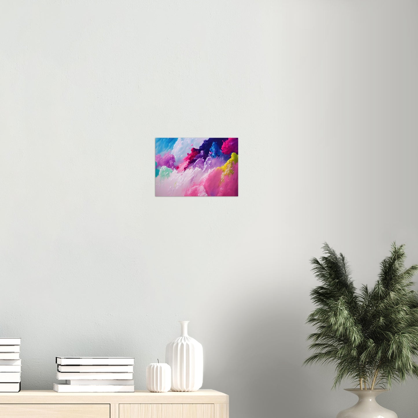 Casi todos sabemos a qué sabe el algodón de azúcar, pero cómo se siente en nuestras cabezas es lo que nuestro artista está tratando de retratar aquí. Ella dijo: "A veces tengo algodón de azúcar en la cabeza. Es maravillosamente colorido y maravillosamente dulce, y me siento un poco como si estuviera caminando sobre las nubes". Los colores fuertes y vivos reflejan una increíble cantidad de energía y alegría de vivir y realzan cada habitación. La aplicación espesa de pintura en esta imagen crea contrastes adicionales que todavía se ven muy tridimensionales en nuestro póster. Con este mural traes a casa una obra de arte especial. Nuestros carteles de alta calidad con calidad de museo también son adecuados para entornos profesionales como la oficina o los hoteles. Como siempre, nuestros carteles están disponibles en diferentes tamaños, con y sin bordes y ya enmarcados. También puedes encontrar pinturas acrílicas y tazas impresas en nuestra tienda.