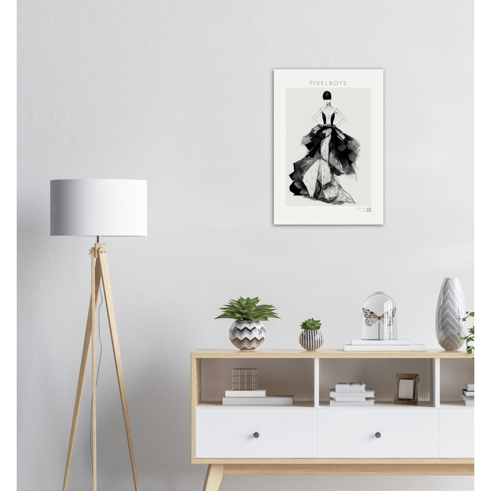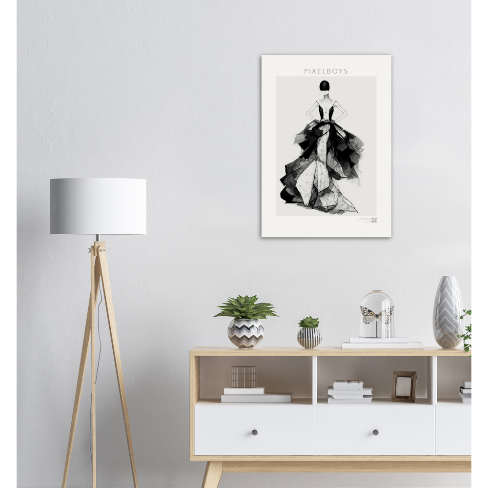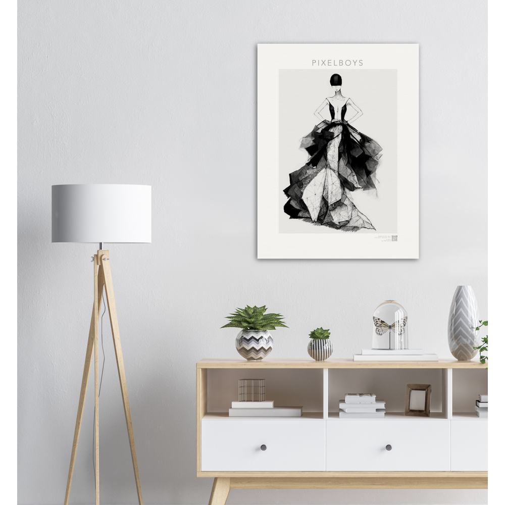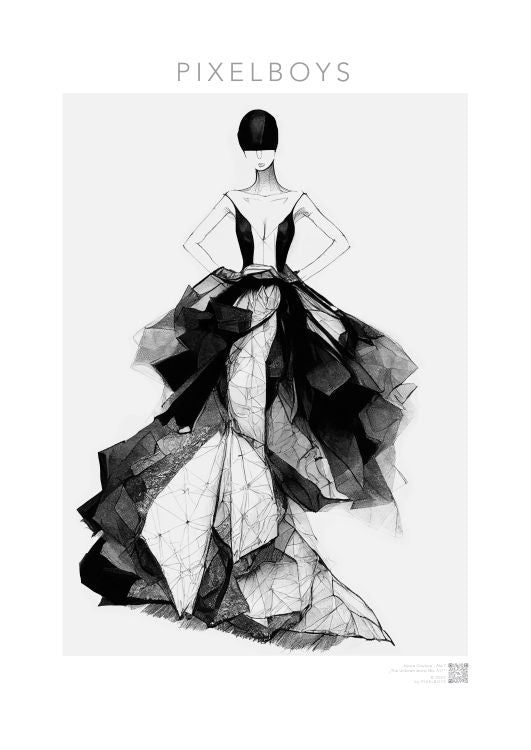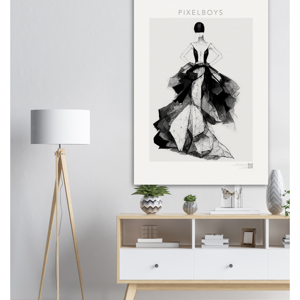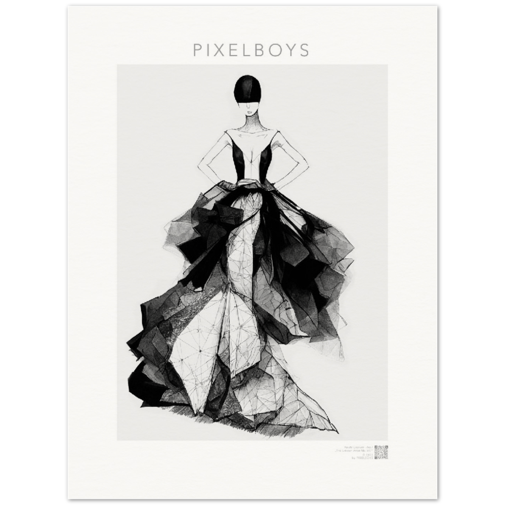 Con el 7º cuadro - "Rose" la colección "Haute Couture" del artista " The Unknown Artist Nb. 517 ” finalizará en 2022. Este último boceto de moda combina una enagua rígida de corte sirena con capas de tafetán almidonado y organza superpuesta. La modelo tiene el hermoso nombre Rose, y como una rosa, una mujer pronto florecerá en tu pared. También disponible como póster XXL aquí.