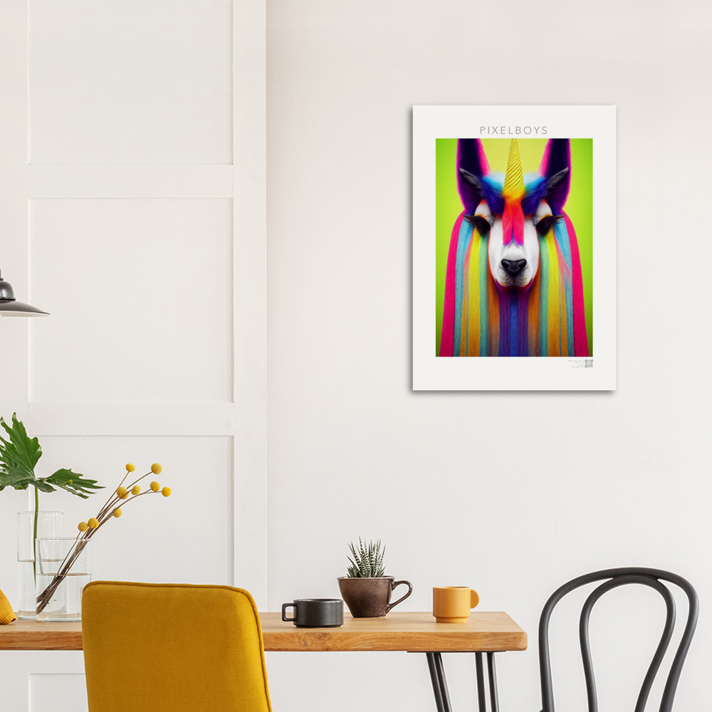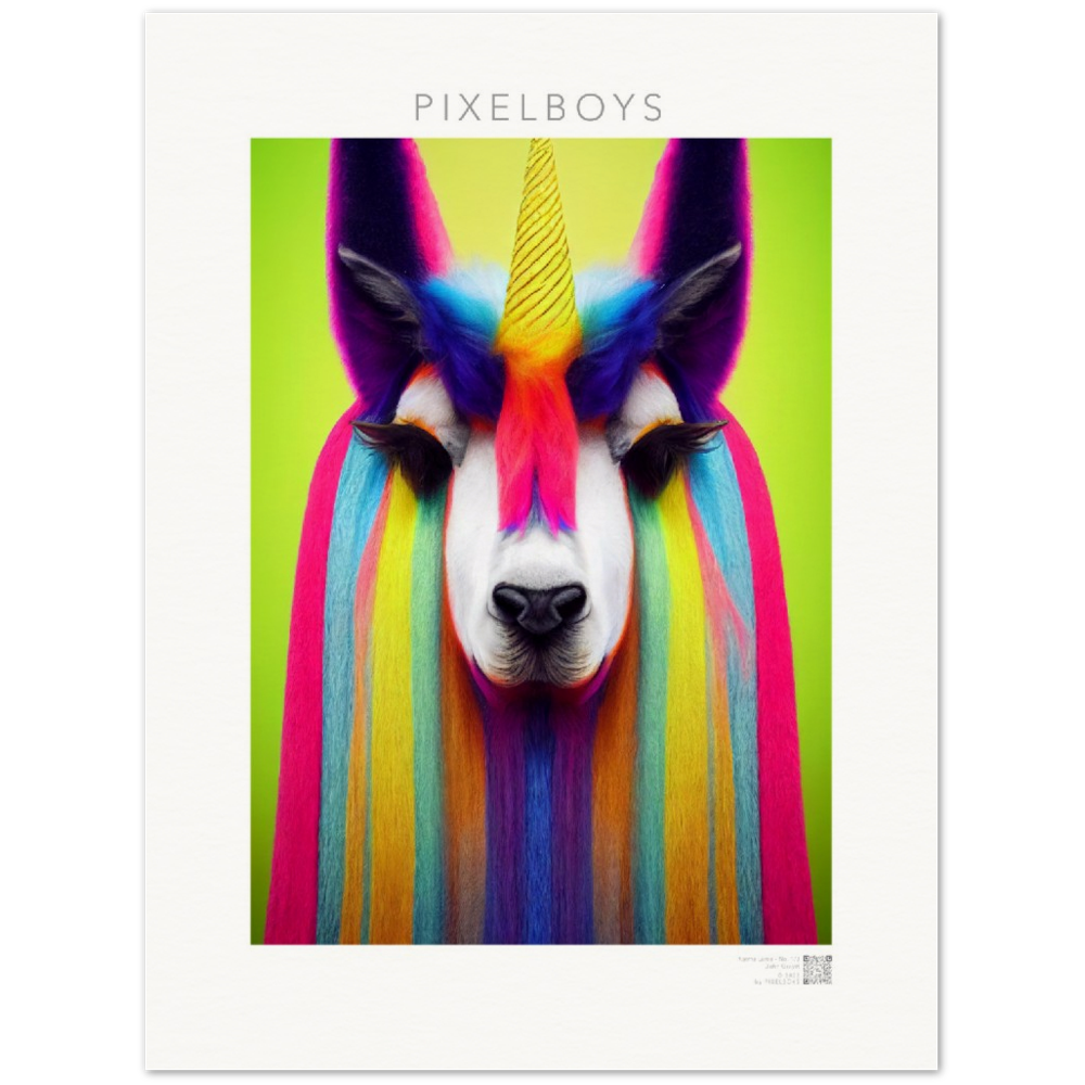 La llama es un símbolo de fuerza, perseverancia, comunicación, confianza y, a menudo, éxito. Entonces, quizás no sea una coincidencia que el artista John Grayst haya creado tres criaturas muy llamativas en su serie Karma Lama. En nuestra tienda también han recibido los nombres de famosas drag queens. La diseñadora LGBTQI+ friendly ha tomado buena nota de ello. ¿Qué quieres decir? ¿Las características de estos carteles exclusivos y también el unicornio de Ru coinciden?