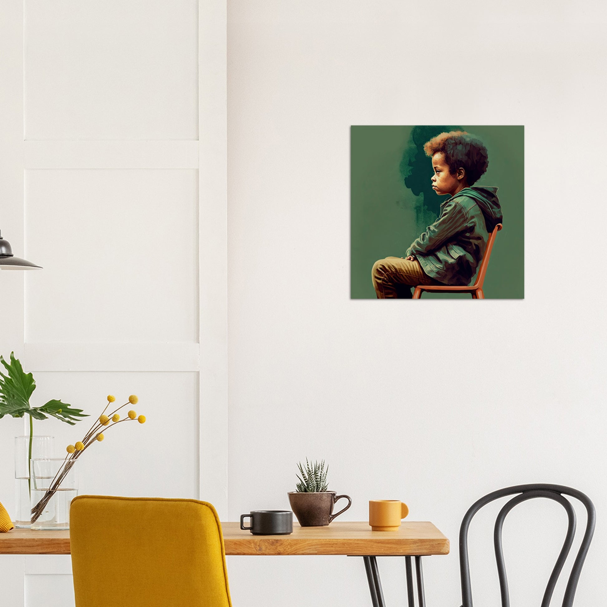 Escuchando - esta serie de dibujos es realmente muy especial. Cada mural único es muy expresivo por sí solo, pero cuando se combina con otras imágenes de la serie, se puede contar toda una historia. Este motivo se llama "El Hijo" y muestra a un niño que se vuelve hacia una persona frente a él. Este puede ser un niño al que le dice algo y lo escucha, otro niño, pero también su padre que intercambia ideas con él. Para inspirar su imaginación, hemos incluido algunas combinaciones posibles como imágenes para esta serie de imágenes sin precedentes y muy compleja. ¿Quién le dice a quién qué? Está en tus manos, o más bien: ¡está colgado en tu pared! Como siempre, nuestros murales exclusivos son carteles con calidad de museo, con y sin marcos, ¡disponibles como impresiones acrílicas en nuestra tienda! Déjese inspirar y deje que nuestra serie de imágenes "Escuchar" cuente una nueva historia.