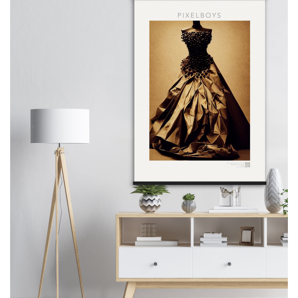 Con su segundo cuadro de la colección "Art du Cafe", también conocida como "Hot Fashion", "The Unknown Artist Nb. 517”, un intrigante vestido de gala hecho con granos de café y, no estamos seguros, ¿papel de regalo? Mientras que "517", como nos gusta llamarlo, mantiene un perfil bajo en más detalles sobre el vestido, dejamos volar nuestra imaginación en los editores de fotos. Una parte de nosotros va por el café, el chocolate y el papel de regalo. La otra parte de nosotros es para granos de café y bolsas de filtro. ¿Cuál es tu opinión? Independientemente de los materiales que se hayan podido utilizar para este efecto, el vestido habla por sí mismo. El llamativo aspecto plisado domina la imagen y crea un tremendo dinamismo, al igual que los elementos casi ingrávidos en las caderas. ¿Quizás un trozo de Linzer Torte?