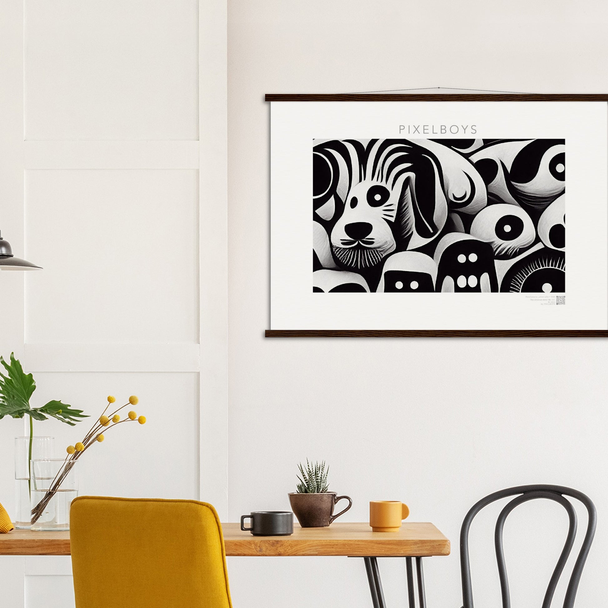 Con el motivo "safari urbano" nos muestra el artista "The Unknown Artist Nb. 517" un perro en la jungla urbana. Está repleto de otras criaturas que nosotros, los editores de imágenes, no pudimos distinguir del todo, pero la belleza de una obra de arte es que no tienes que entenderlo todo. El artista debe haber tenido algo en mente. Al igual que las otras imágenes de la colección "Doodlemania", esta imagen también tiene el inconfundible aspecto de garabato. Una obra moderna y contemporánea, parece casi familiar sin imitar a otro artista. Como siempre, el motivo está disponible en diferentes variaciones exclusivamente en Pixelboys: como póster con calidad de museo con y sin marco, con tiras, detrás de acrílico y, por supuesto, como taza impresa y personalizable.