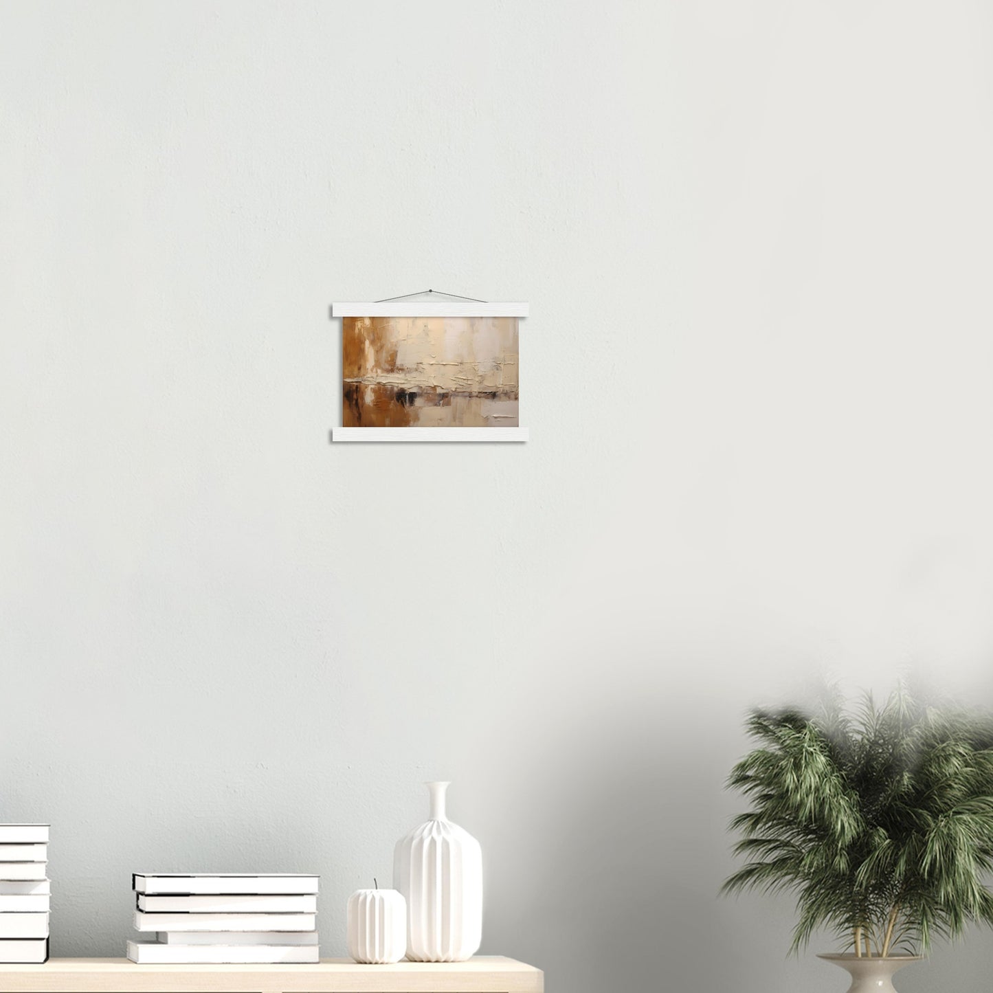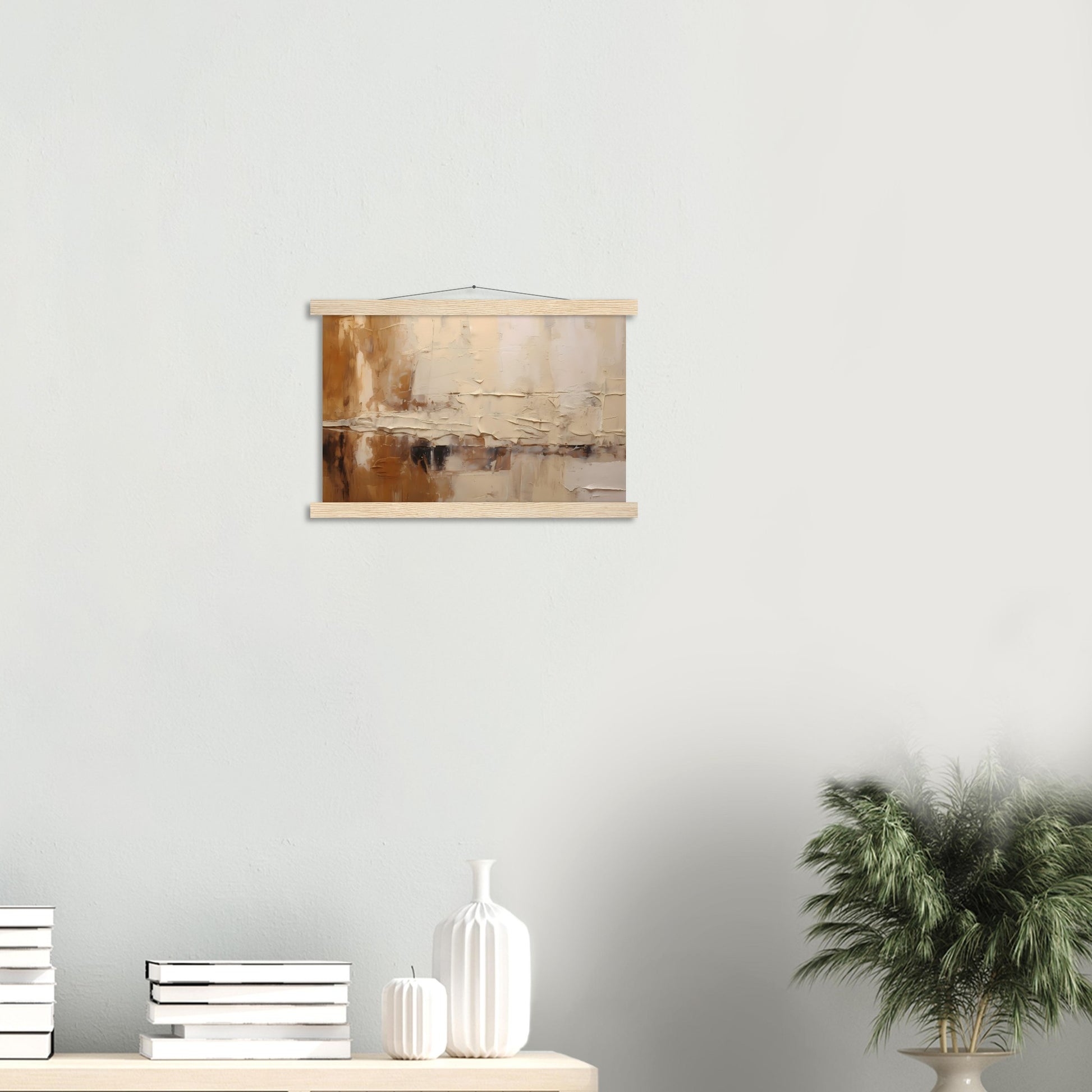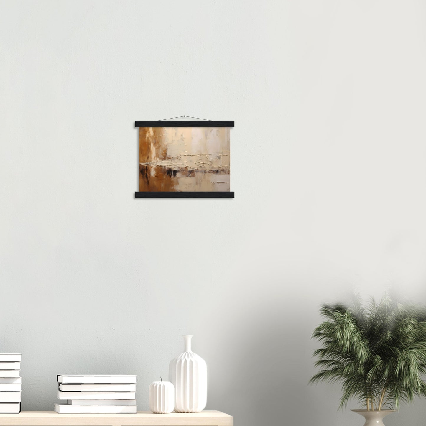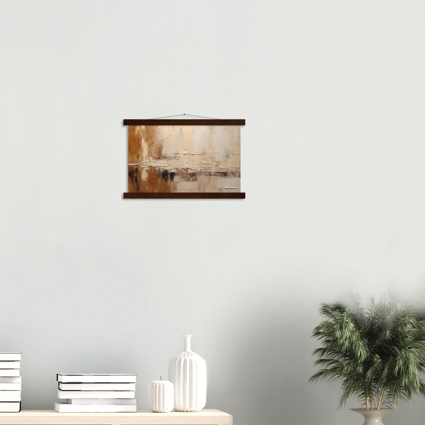 Nuestras barras de madera minimalistas están formadas por cuatro palos de madera magnéticos, dos de los cuales se adhieren a la parte superior de la impresión y dos a la parte inferior para crear un aspecto vintage. El póster está impreso en nuestro papel Master's Edition con calidad de museo. El papel blanquecino, el papel sin recubrimiento, es la opción ideal para los entusiastas del arte que valoran la calidad superior para exhibir sus obras de arte de una manera lujosa.