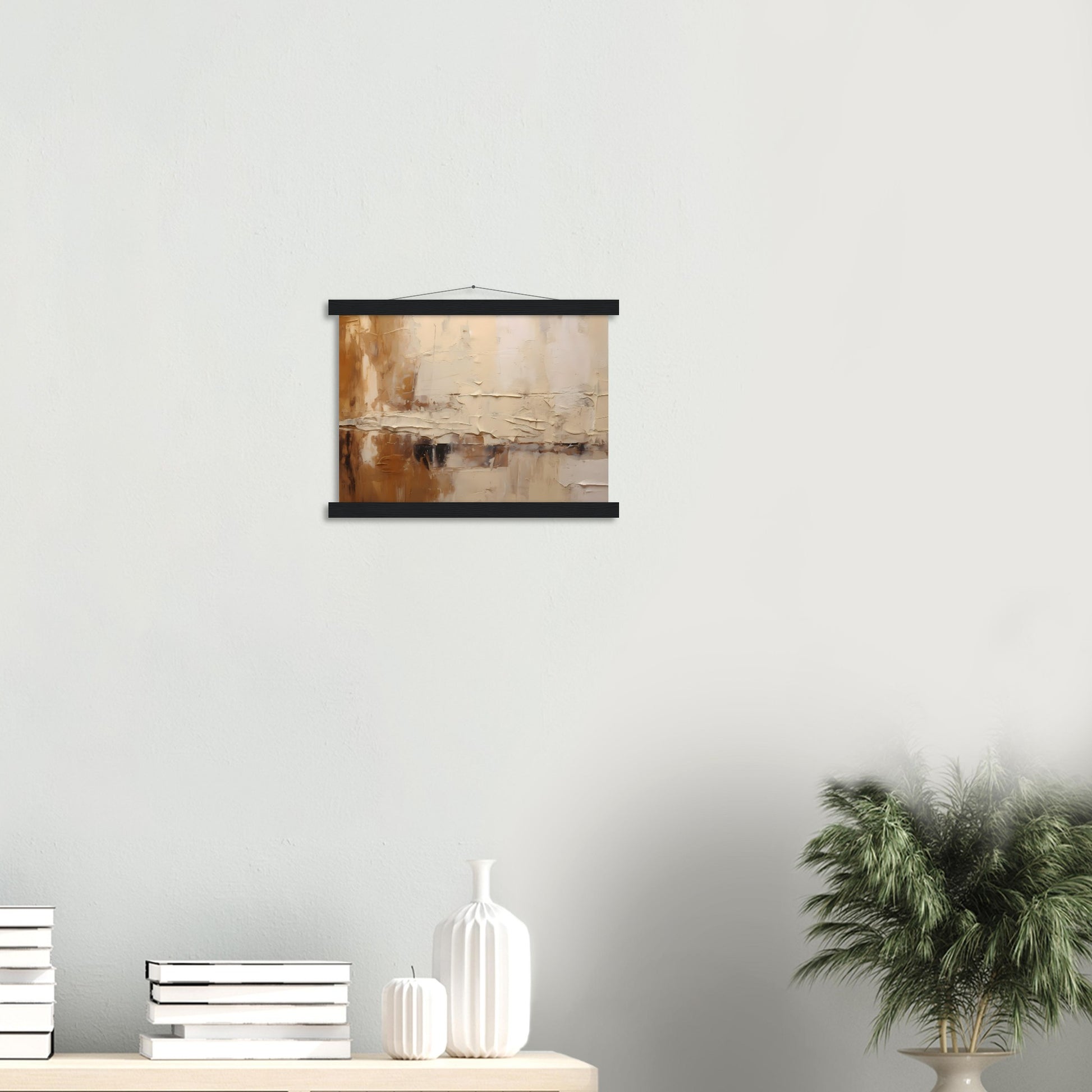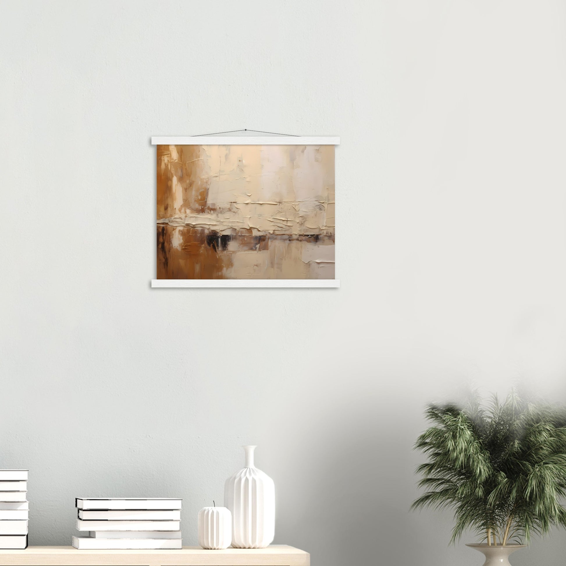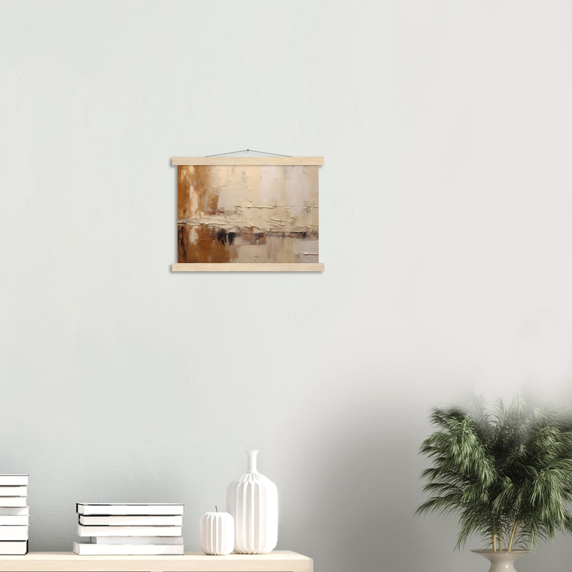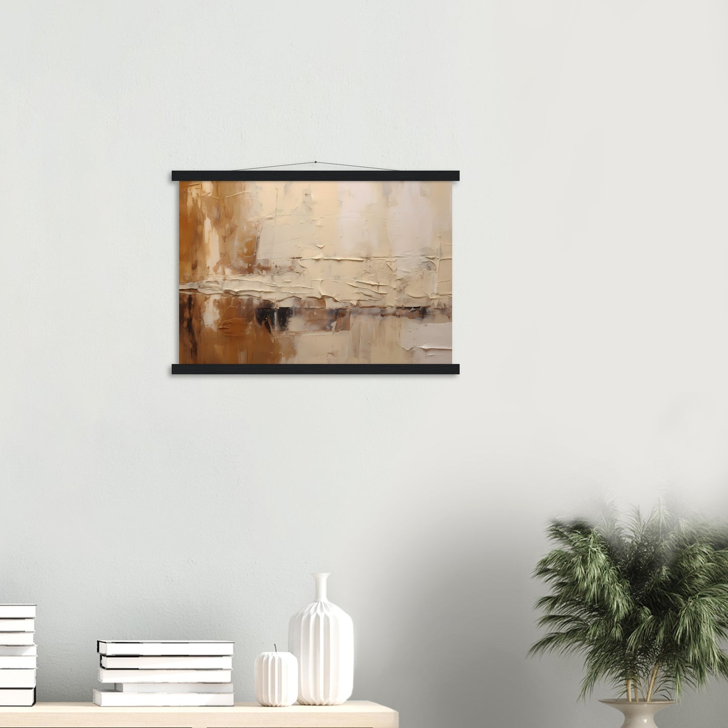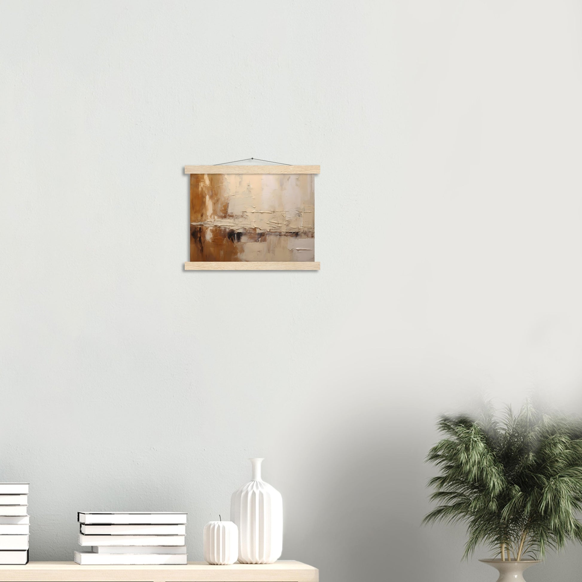Nuestras barras de madera minimalistas están formadas por cuatro palos de madera magnéticos, dos de los cuales se adhieren a la parte superior de la impresión y dos a la parte inferior para crear un aspecto vintage. El póster está impreso en nuestro papel Master's Edition con calidad de museo. El papel blanquecino, el papel sin recubrimiento, es la opción ideal para los entusiastas del arte que valoran la calidad superior para exhibir sus obras de arte de una manera lujosa.