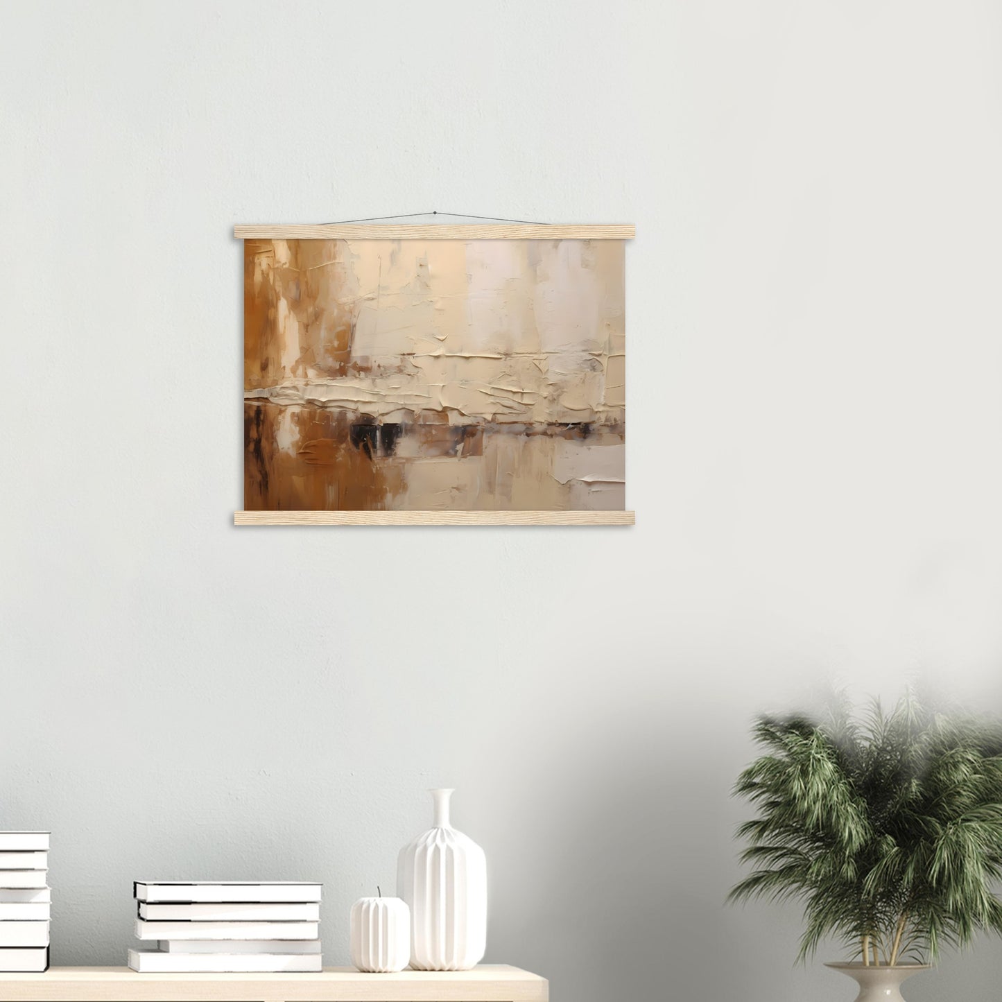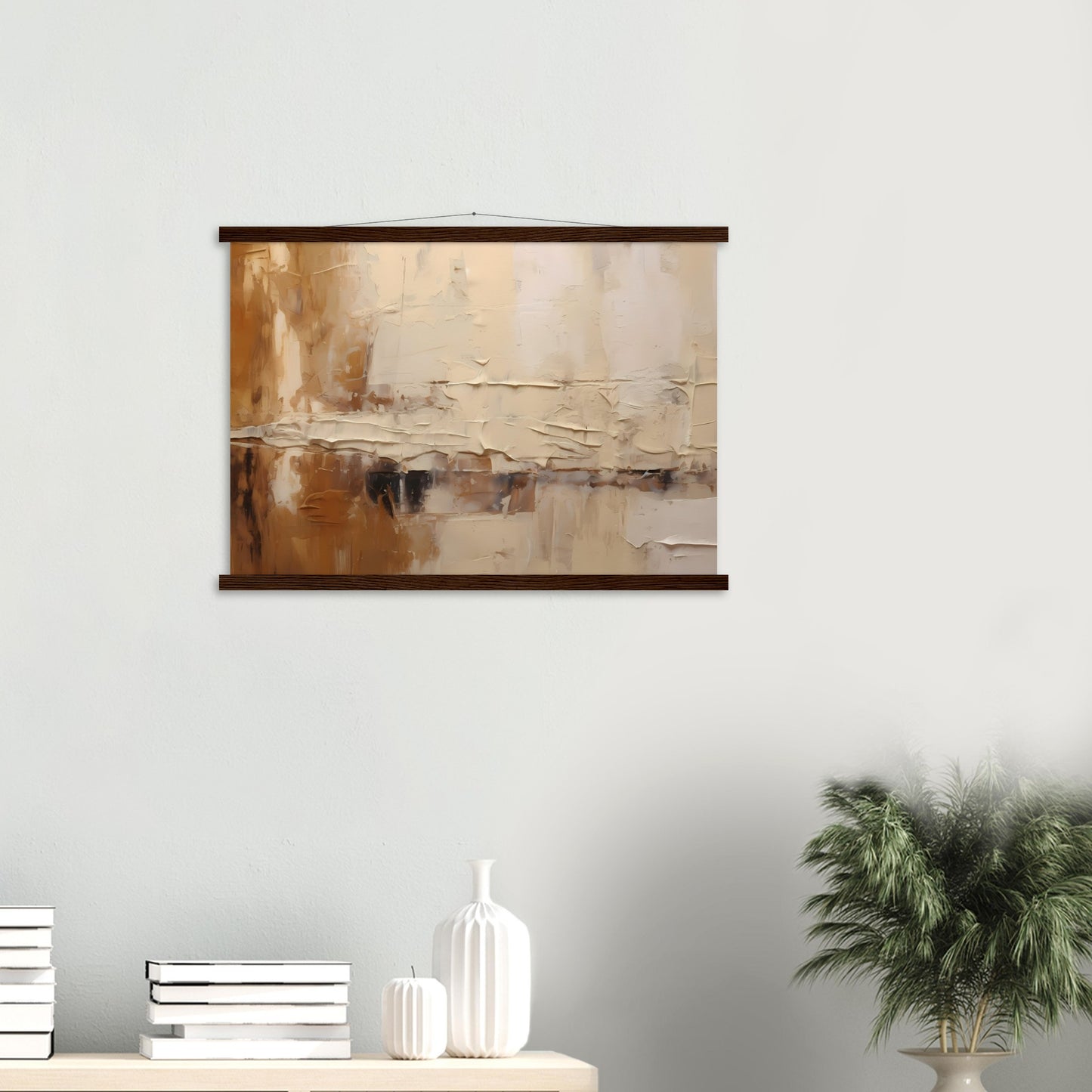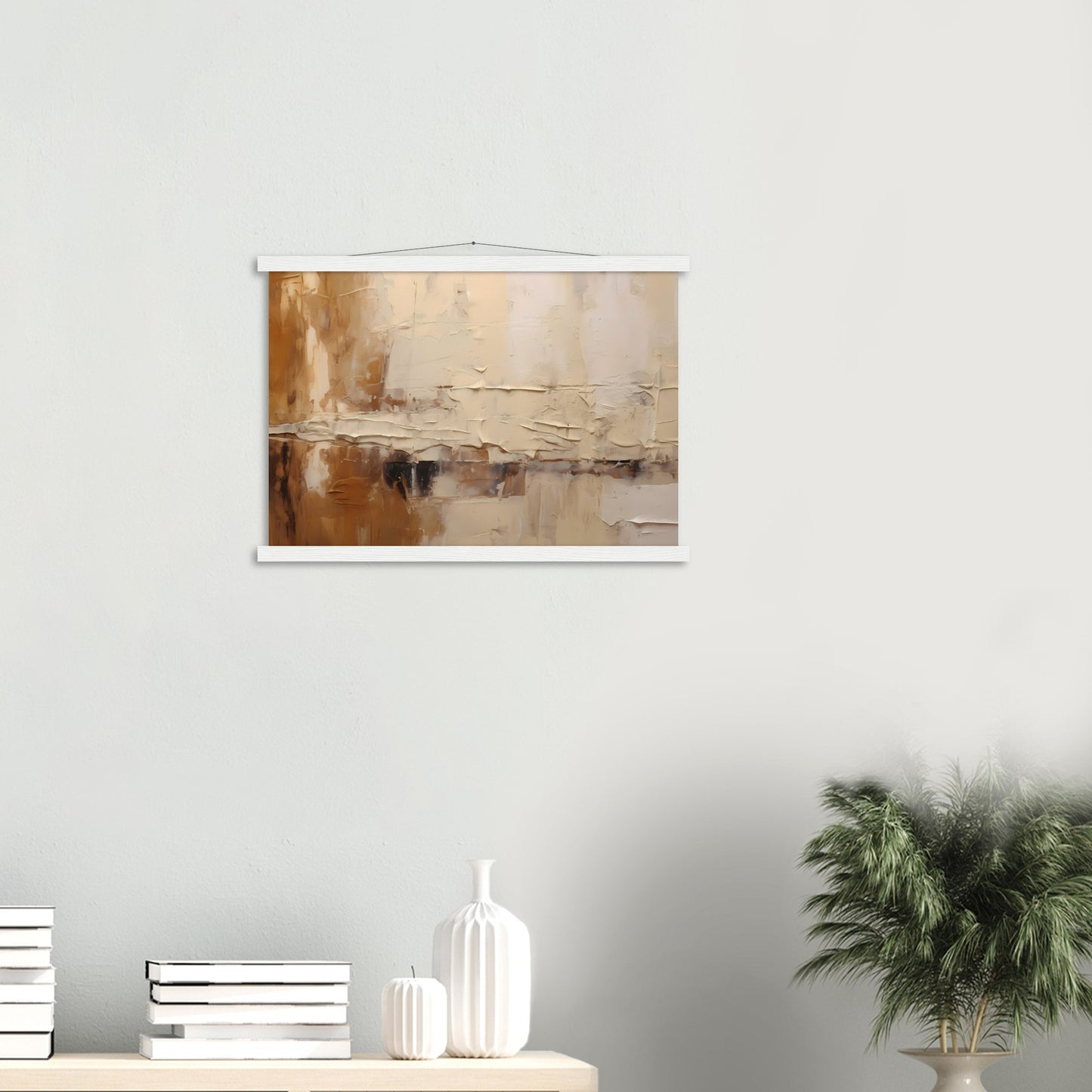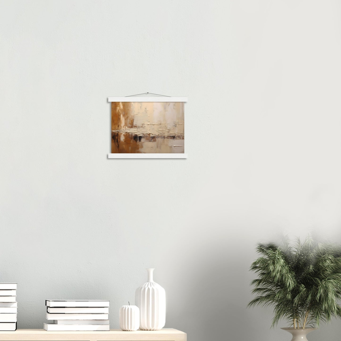 Nuestras barras de madera minimalistas están formadas por cuatro palos de madera magnéticos, dos de los cuales se adhieren a la parte superior de la impresión y dos a la parte inferior para crear un aspecto vintage. El póster está impreso en nuestro papel Master's Edition con calidad de museo. El papel blanquecino, el papel sin recubrimiento, es la opción ideal para los entusiastas del arte que valoran la calidad superior para exhibir sus obras de arte de una manera lujosa.