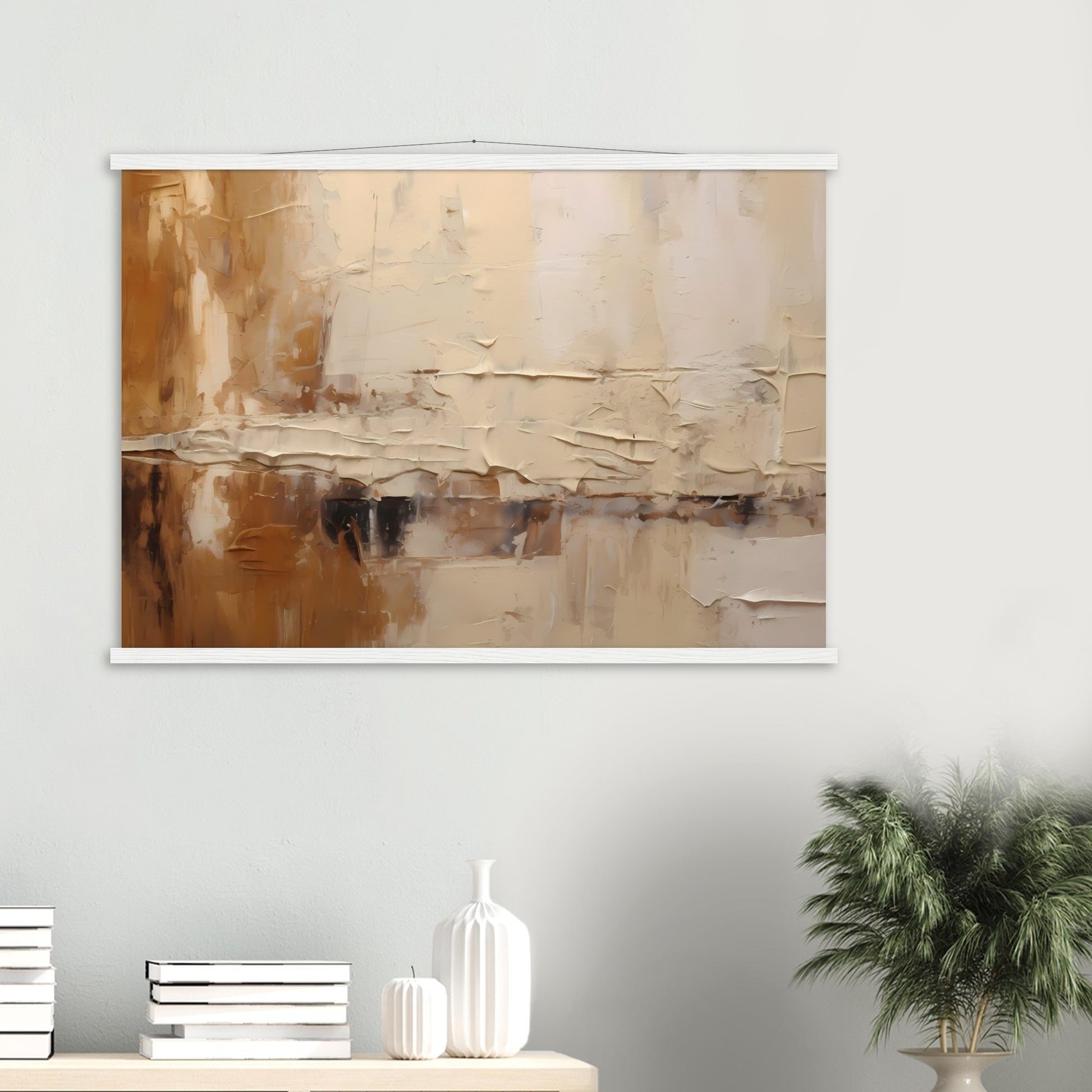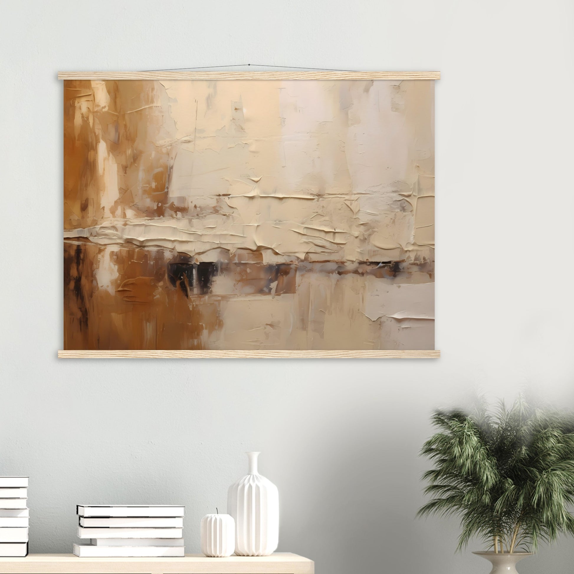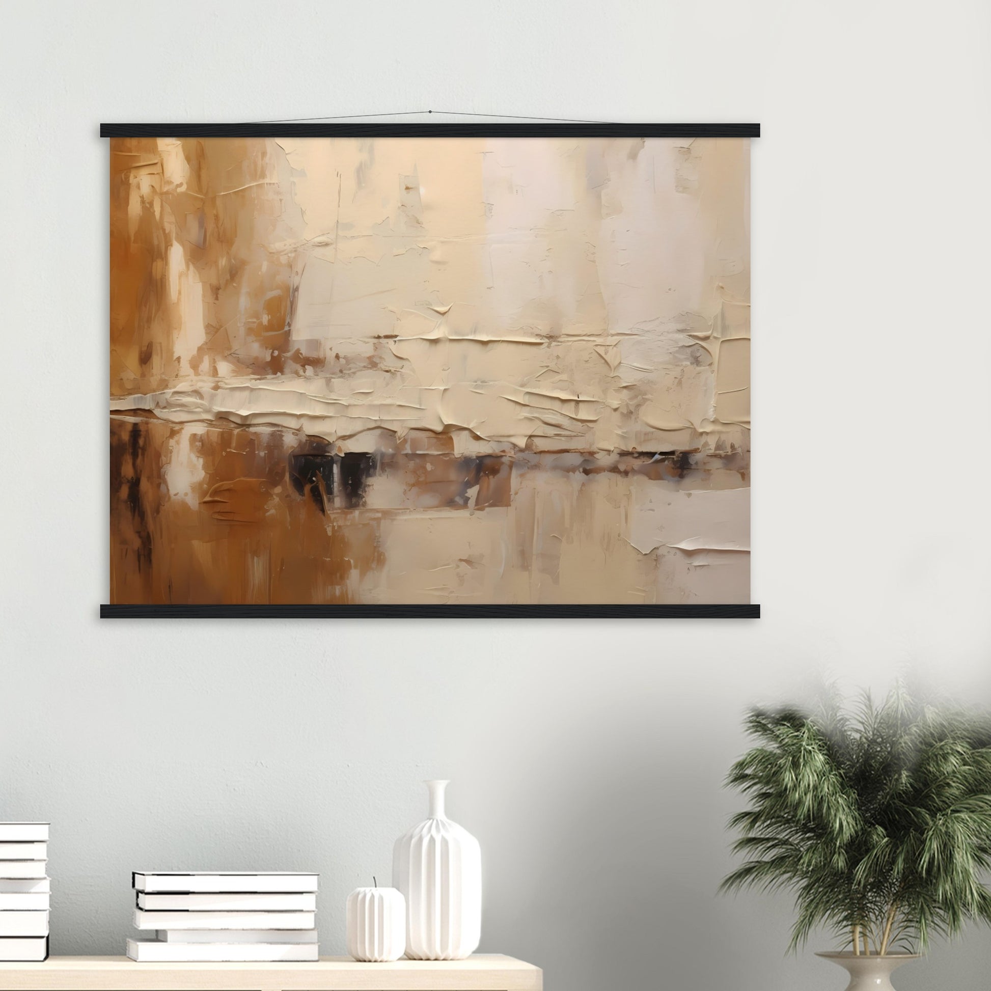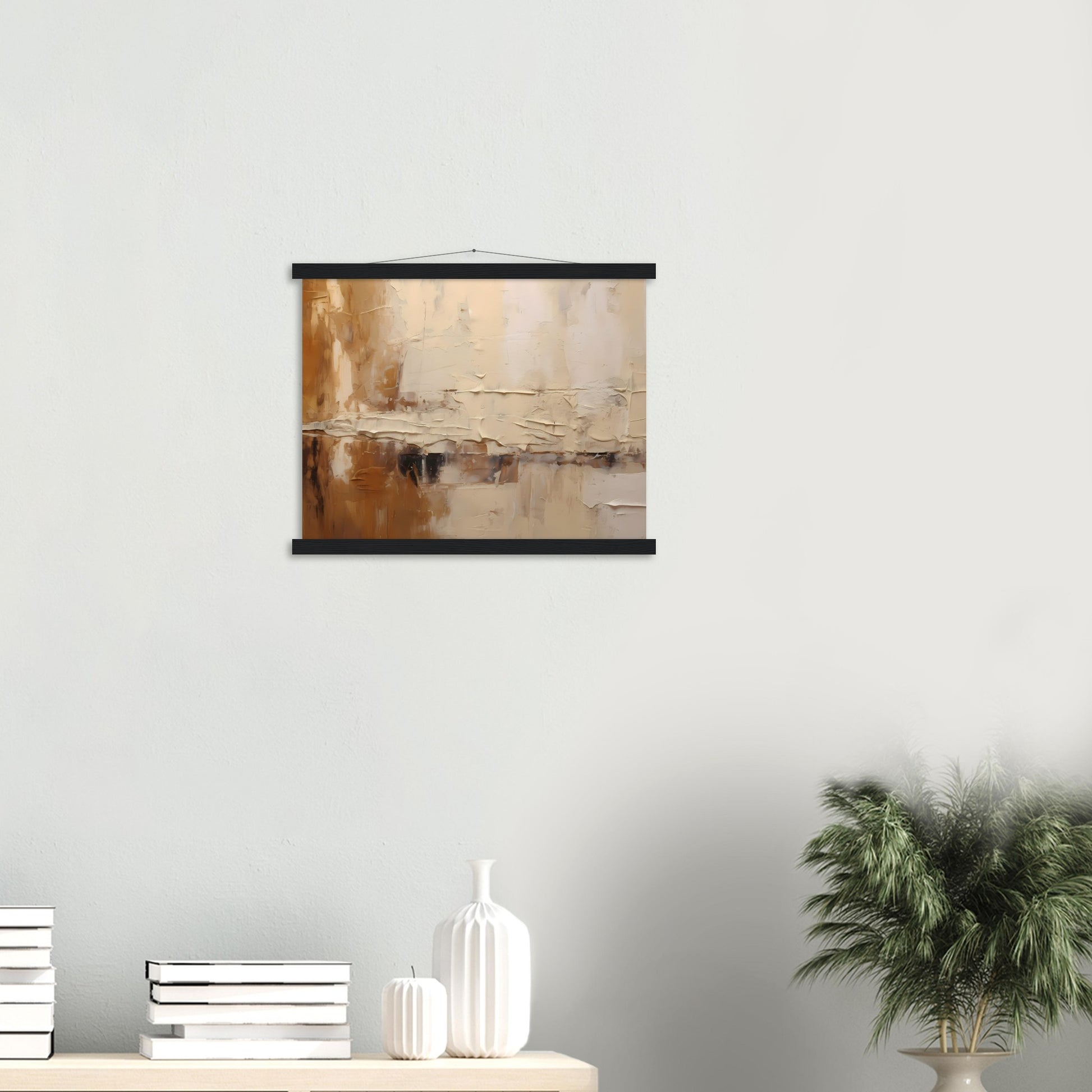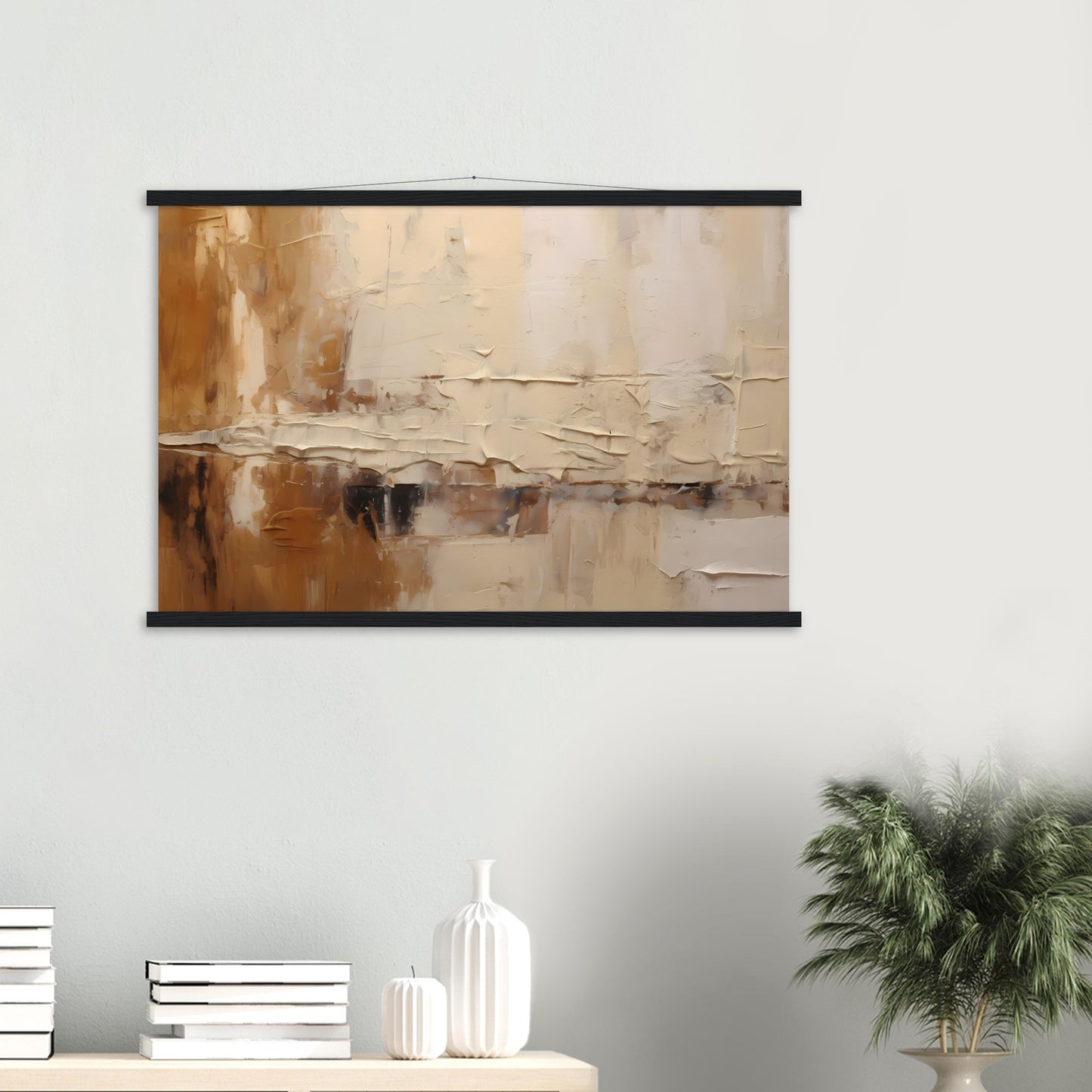 Nuestras barras de madera minimalistas están formadas por cuatro palos de madera magnéticos, dos de los cuales se adhieren a la parte superior de la impresión y dos a la parte inferior para crear un aspecto vintage. El póster está impreso en nuestro papel Master's Edition con calidad de museo. El papel blanquecino, el papel sin recubrimiento, es la opción ideal para los entusiastas del arte que valoran la calidad superior para exhibir sus obras de arte de una manera lujosa.