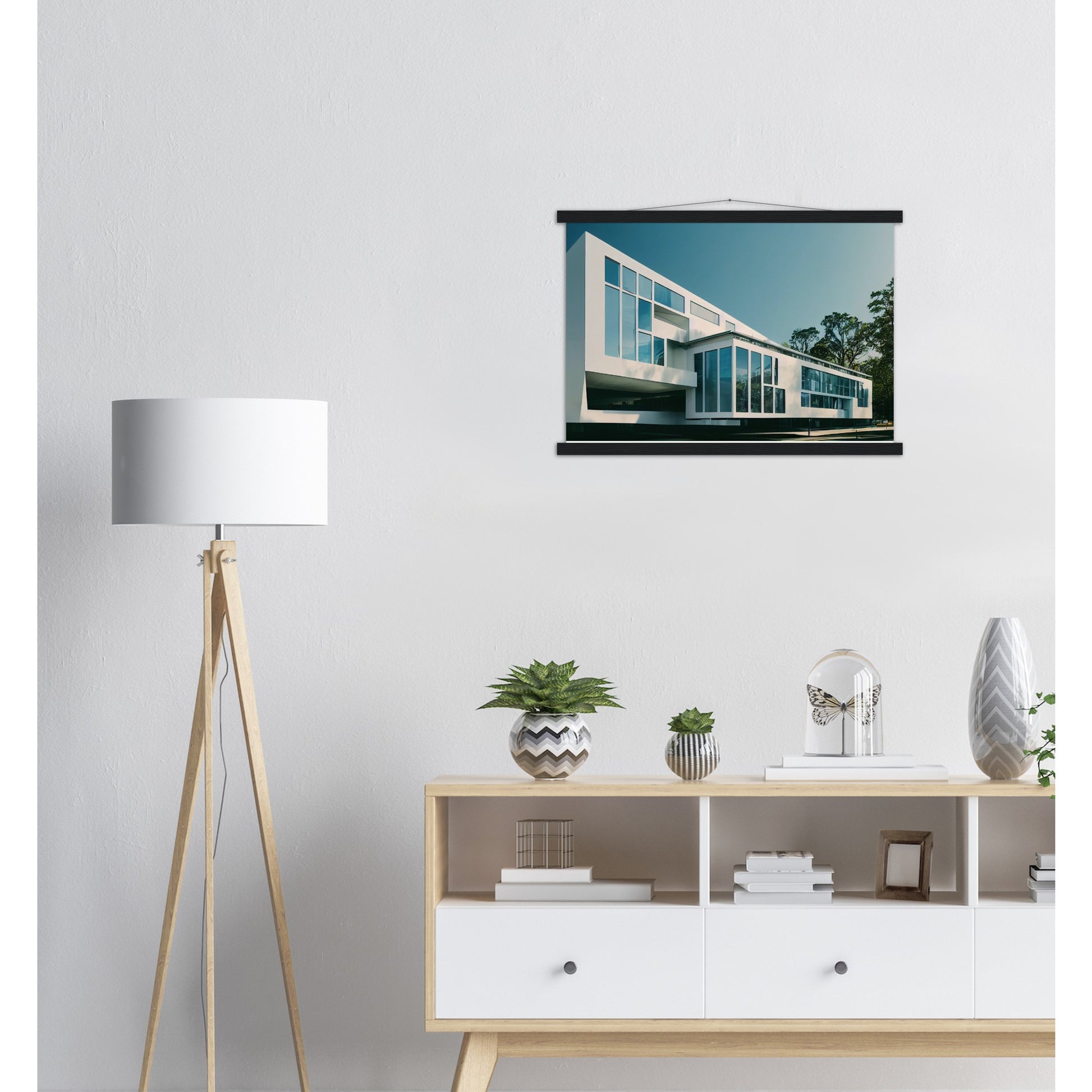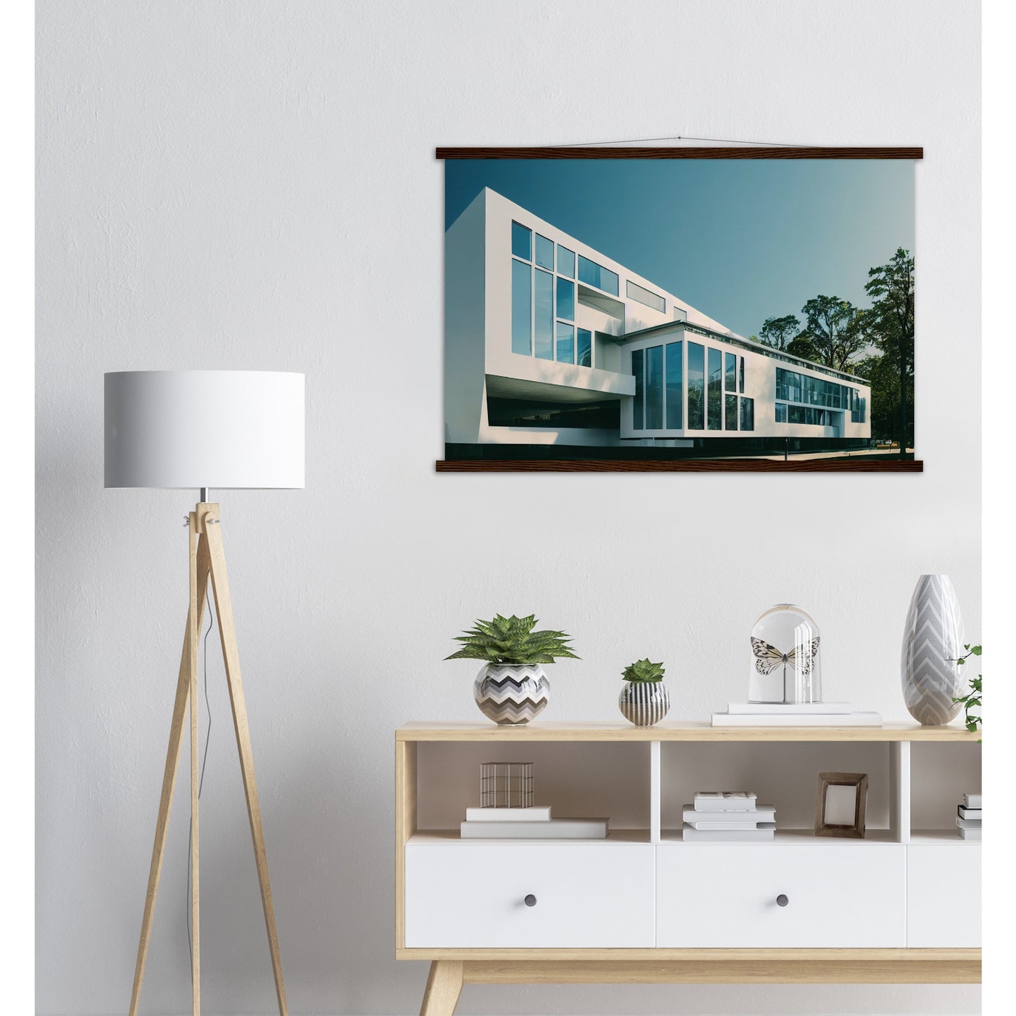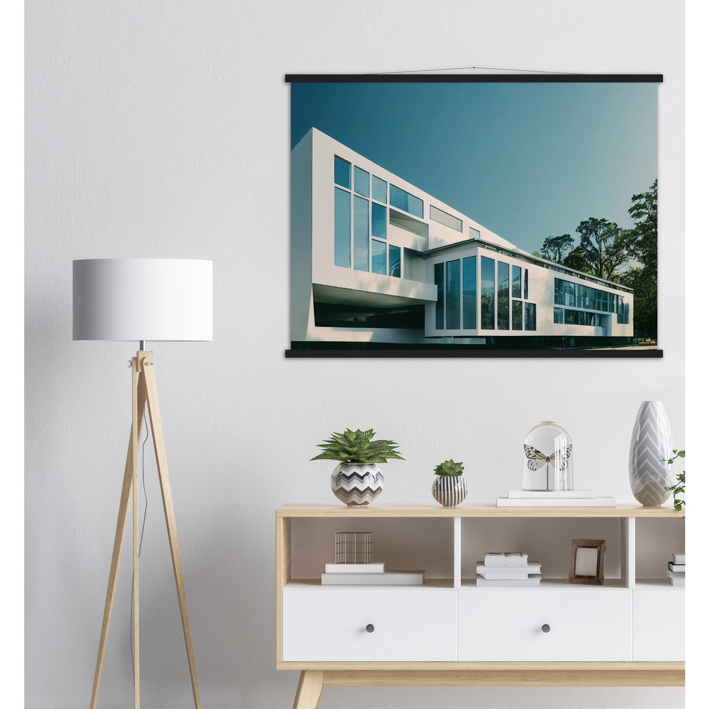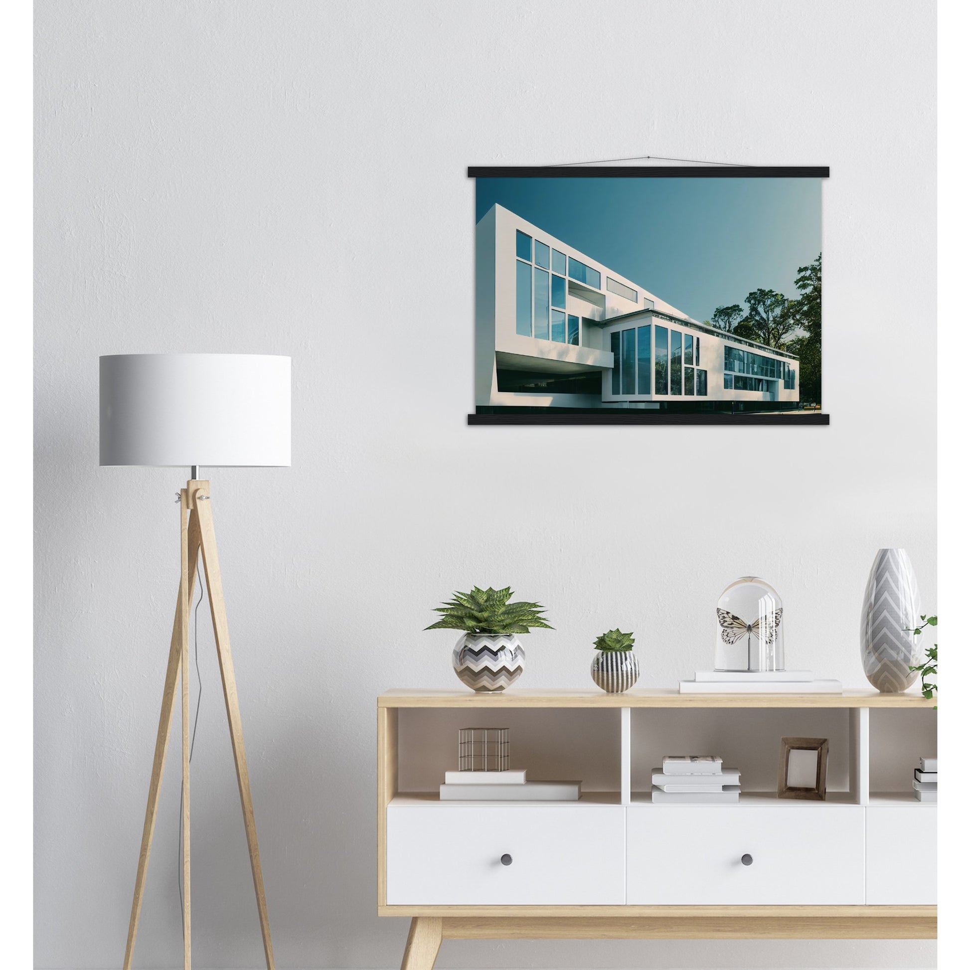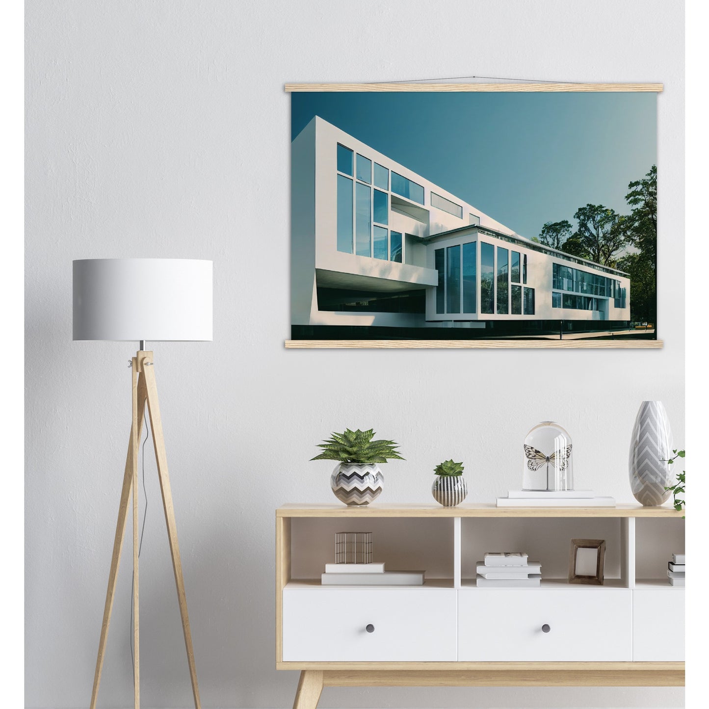 ¡Bienvenido al mundo de la arquitectura! Este diseño muestra un edificio moderno y espacioso con una fachada blanca y un frente de ventana grande. La propiedad se encuentra en una propiedad similar a un parque y podría ser una galería de arte o una oficina moderna. Si te decides por esta pieza de arte mural, no solo demuestras que tienes un excelente gusto en arquitectura, sino que también obtienes una pieza única en tus cuatro paredes. Esta pieza de arte mural está disponible exclusivamente a través de nosotros y está disponible como póster, con y sin tiras, en un marco de imagen o como pintura acrílica en varios tamaños. Combínalo con otra imagen arquitectónica y lleva a tus visitantes a un viaje por el mundo de los edificios modernos.