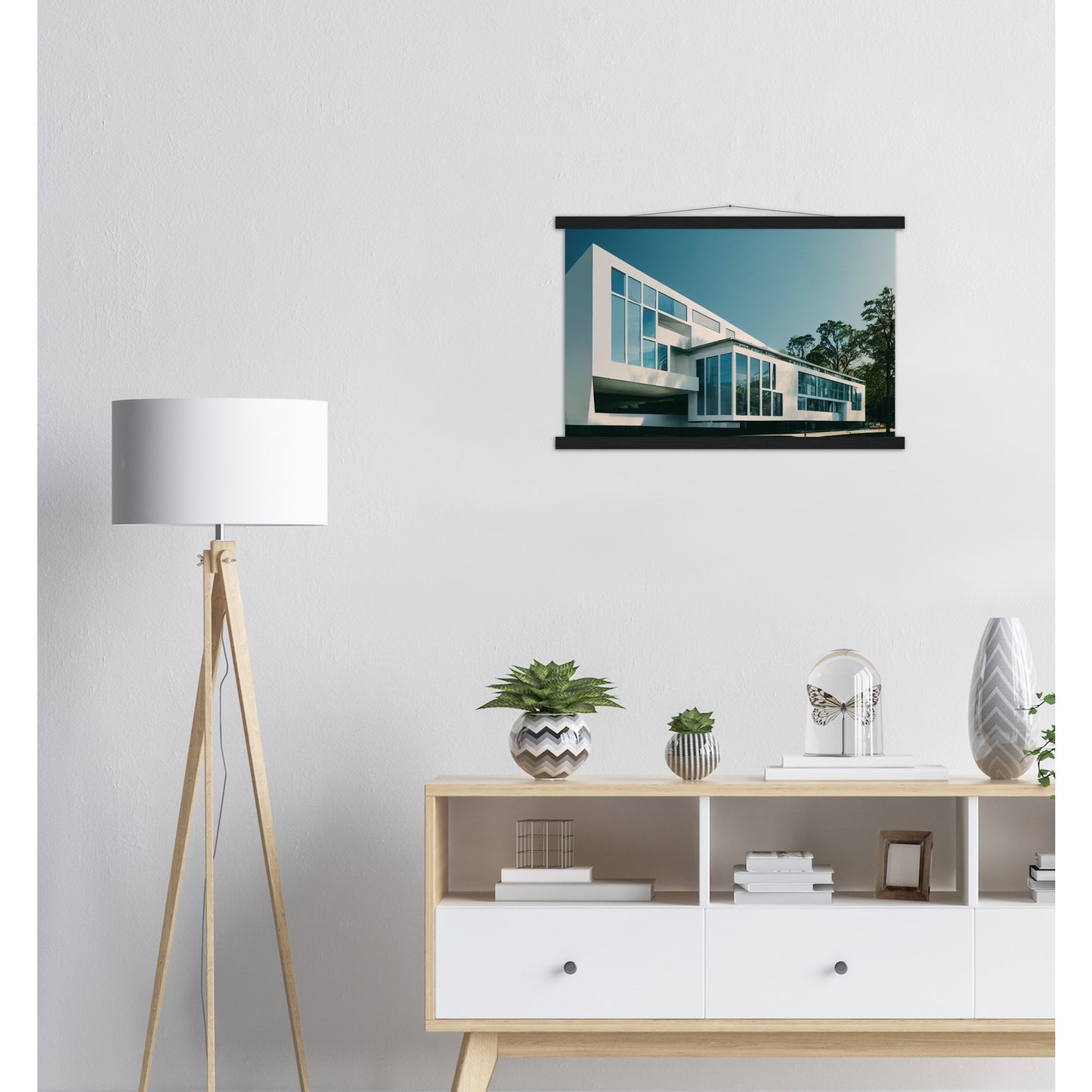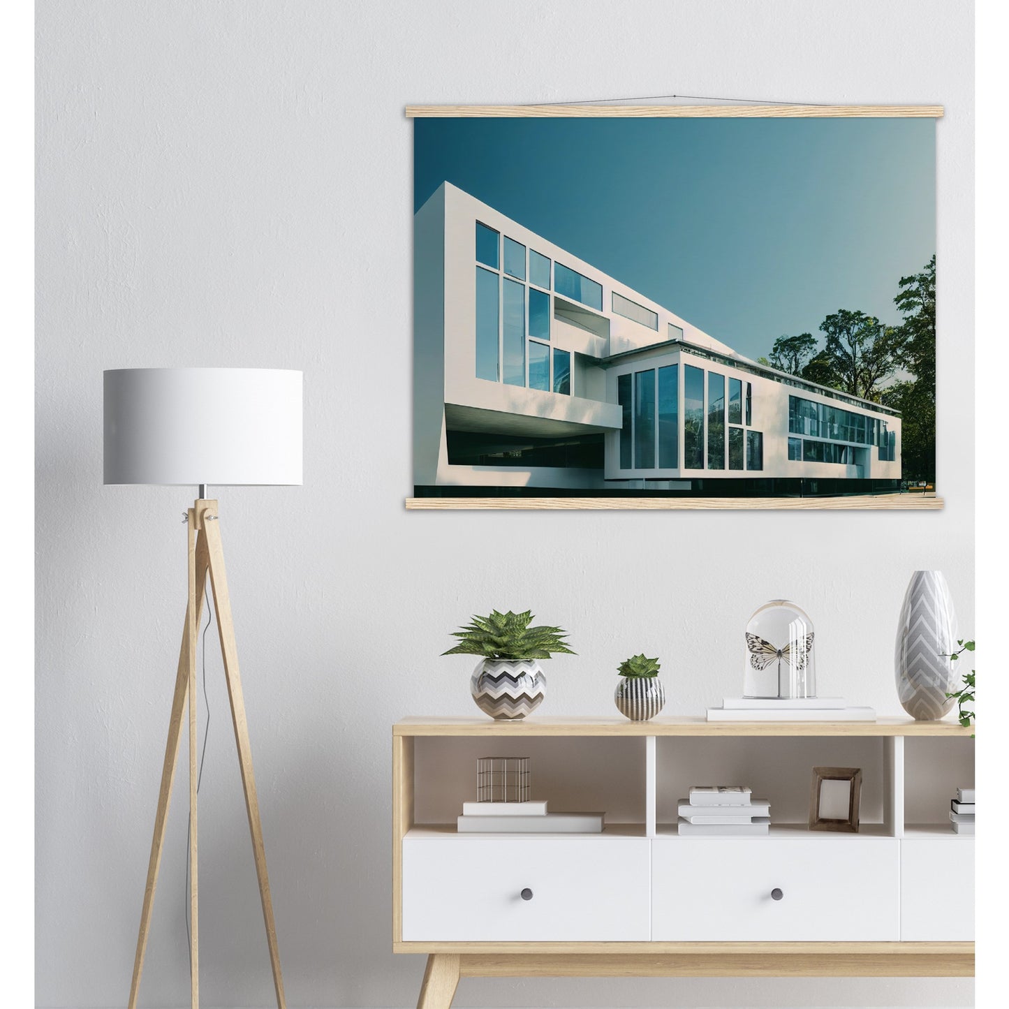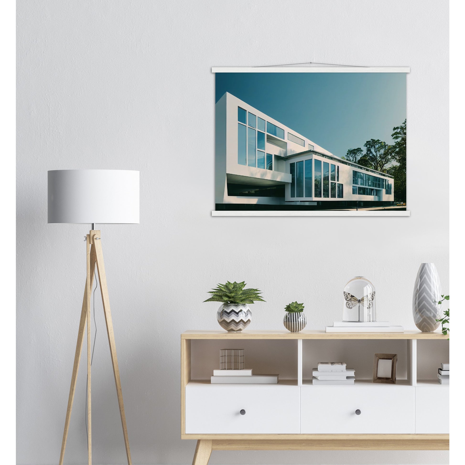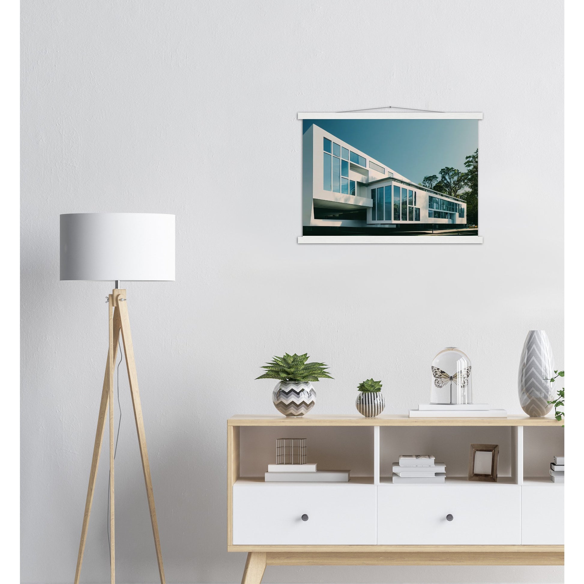 ¡Bienvenido al mundo de la arquitectura! Este diseño muestra un edificio moderno y espacioso con una fachada blanca y un frente de ventana grande. La propiedad se encuentra en una propiedad similar a un parque y podría ser una galería de arte o una oficina moderna. Si te decides por esta pieza de arte mural, no solo demuestras que tienes un excelente gusto en arquitectura, sino que también obtienes una pieza única en tus cuatro paredes. Esta pieza de arte mural está disponible exclusivamente a través de nosotros y está disponible como póster, con y sin tiras, en un marco de imagen o como pintura acrílica en varios tamaños. Combínalo con otra imagen arquitectónica y lleva a tus visitantes a un viaje por el mundo de los edificios modernos.
