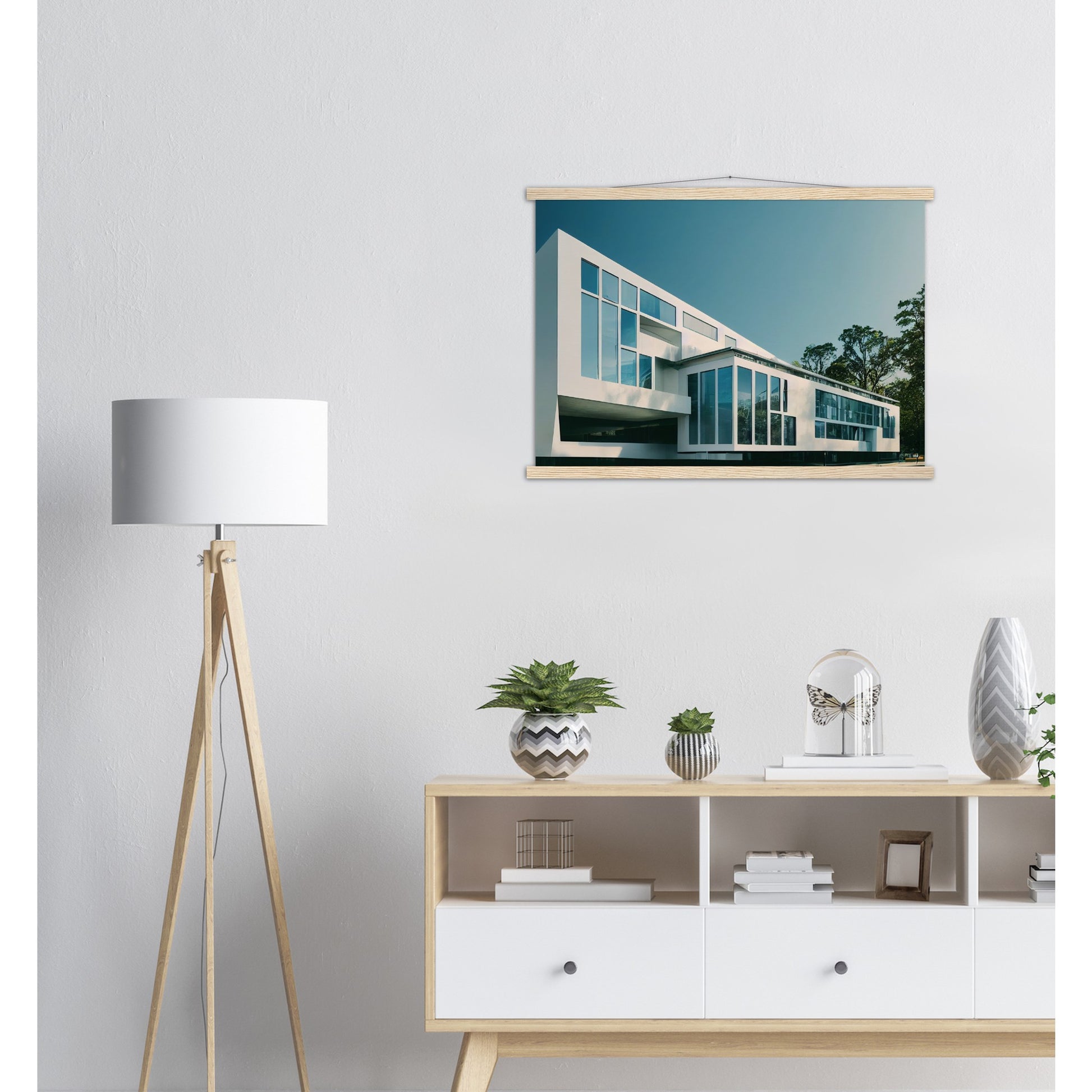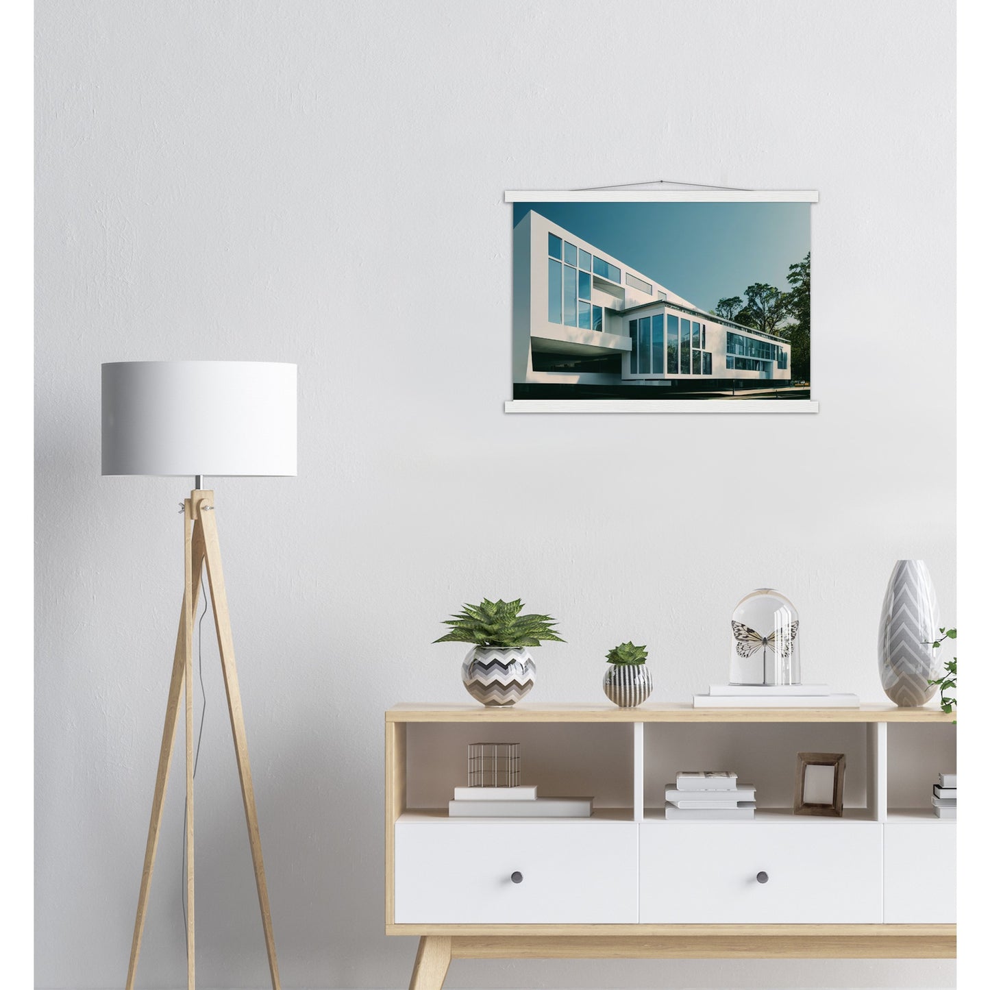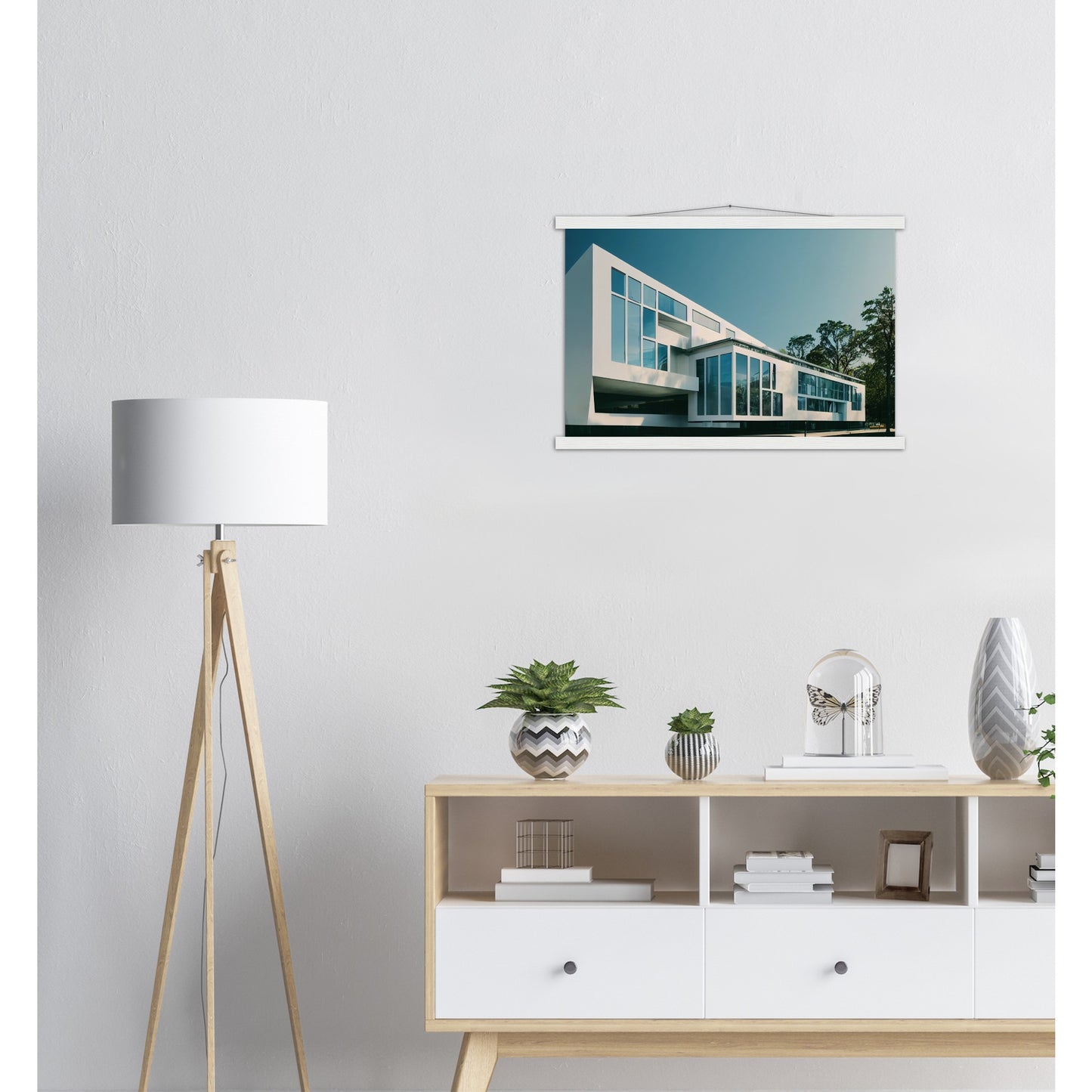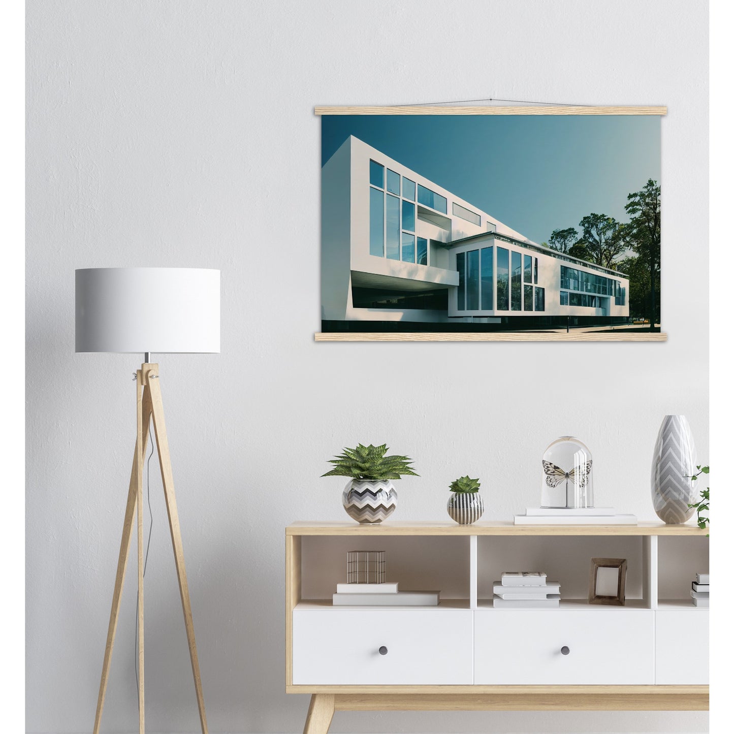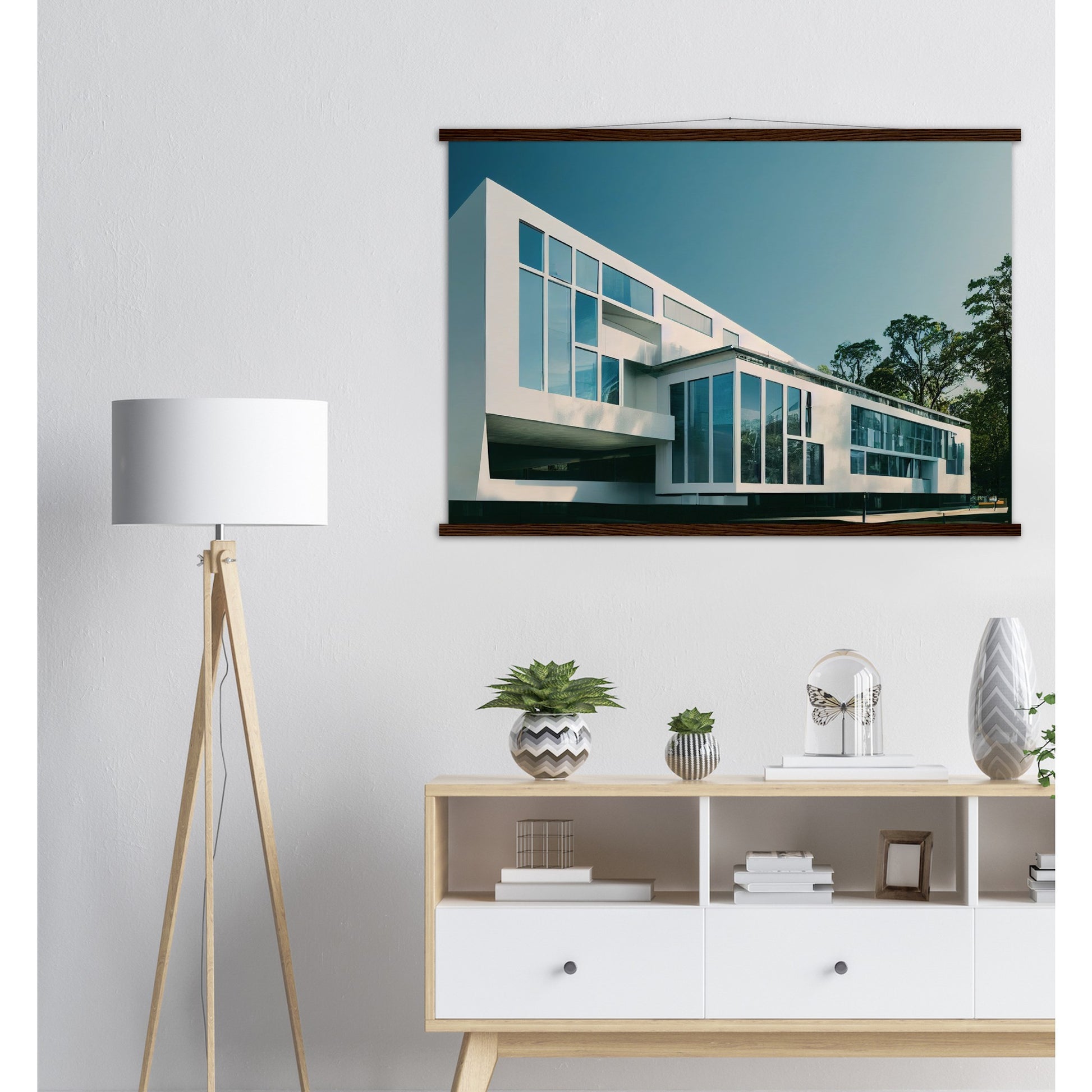 ¡Bienvenido al mundo de la arquitectura! Este diseño muestra un edificio moderno y espacioso con una fachada blanca y un frente de ventana grande. La propiedad se encuentra en una propiedad similar a un parque y podría ser una galería de arte o una oficina moderna. Si te decides por esta pieza de arte mural, no solo demuestras que tienes un excelente gusto en arquitectura, sino que también obtienes una pieza única en tus cuatro paredes. Esta pieza de arte mural está disponible exclusivamente a través de nosotros y está disponible como póster, con y sin tiras, en un marco de imagen o como pintura acrílica en varios tamaños. Combínalo con otra imagen arquitectónica y lleva a tus visitantes a un viaje por el mundo de los edificios modernos.