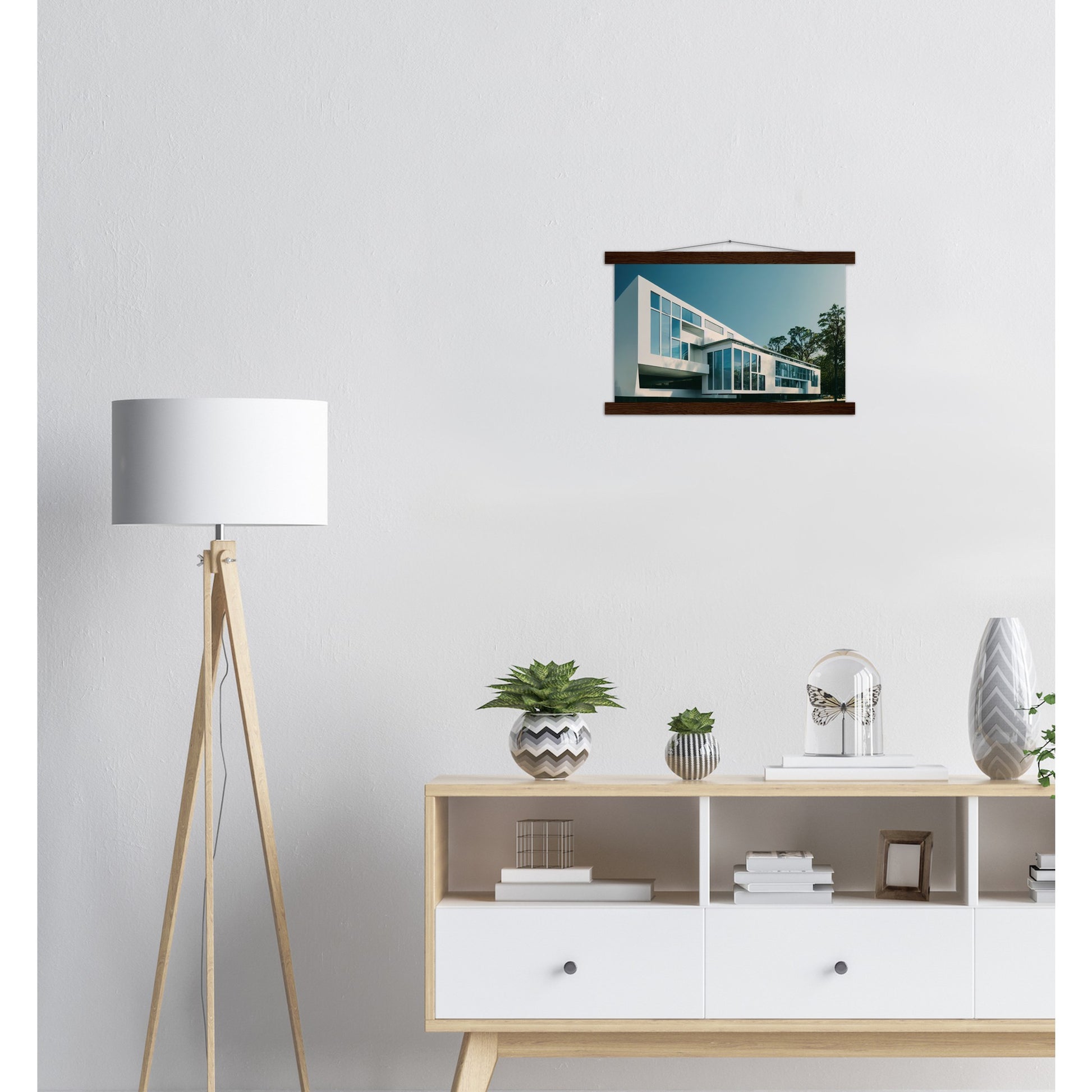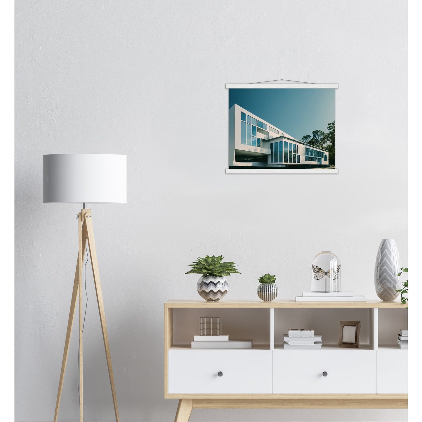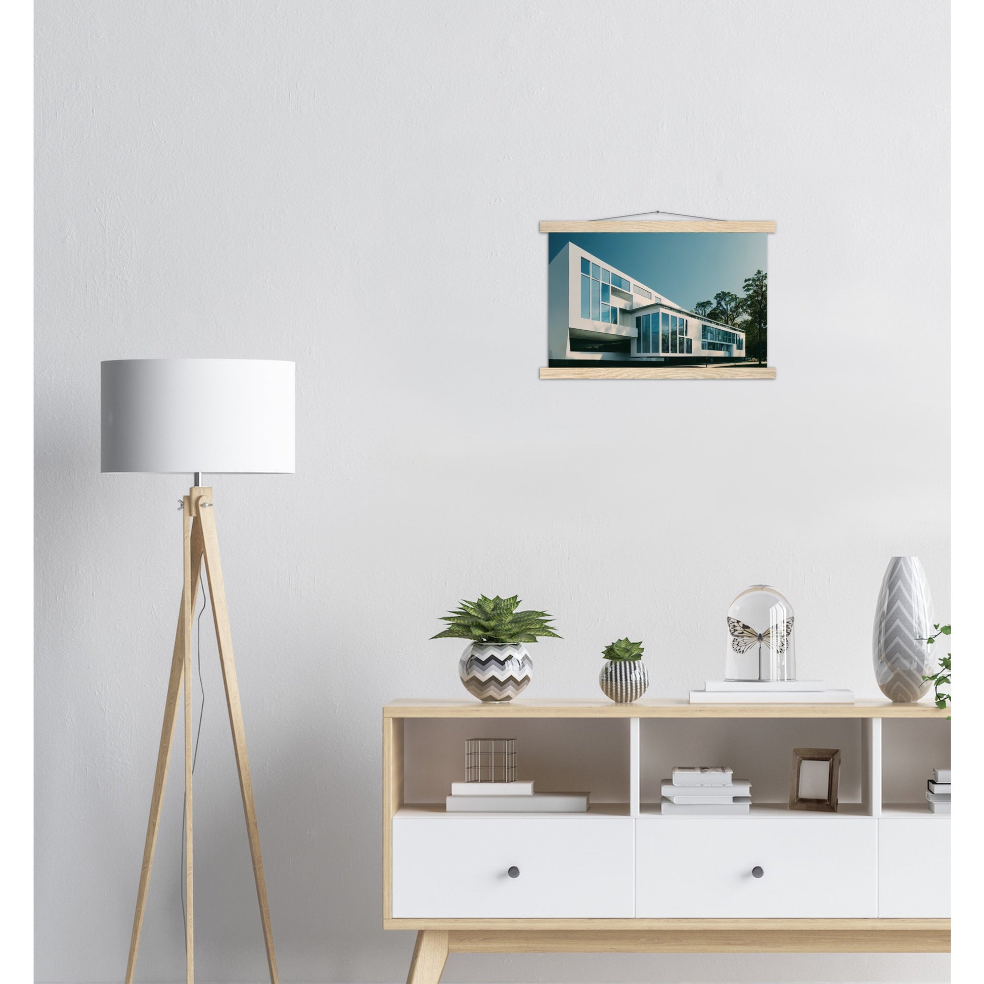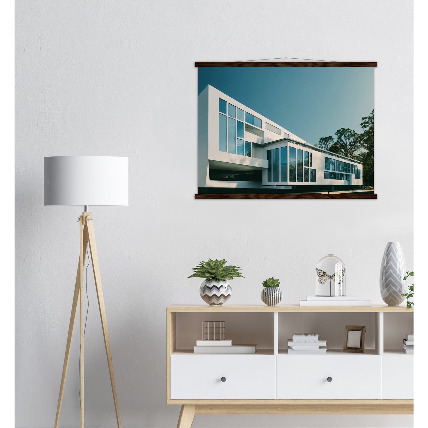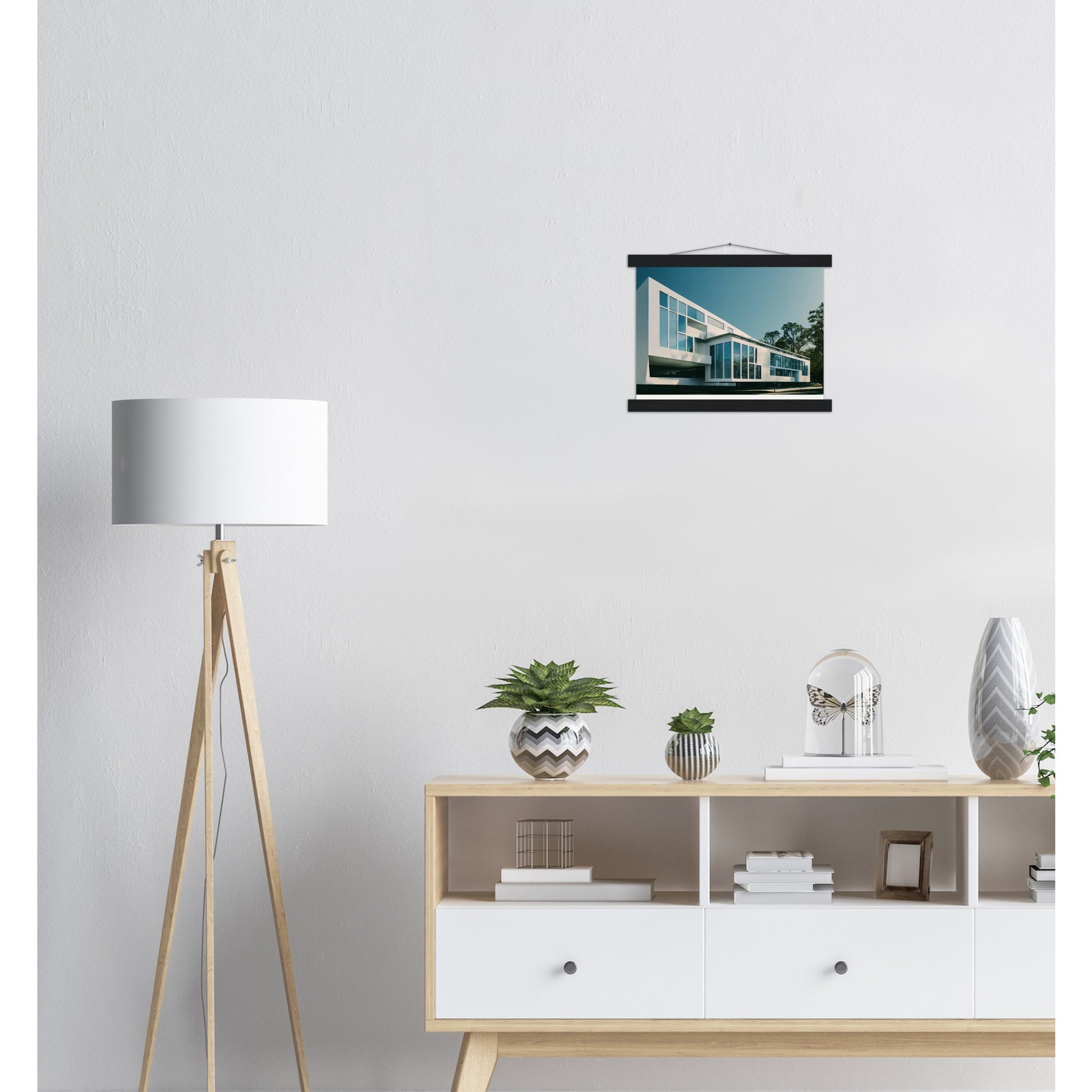¡Bienvenido al mundo de la arquitectura! Este diseño muestra un edificio moderno y espacioso con una fachada blanca y un frente de ventana grande. La propiedad se encuentra en una propiedad similar a un parque y podría ser una galería de arte o una oficina moderna. Si te decides por esta pieza de arte mural, no solo demuestras que tienes un excelente gusto en arquitectura, sino que también obtienes una pieza única en tus cuatro paredes. Esta pieza de arte mural está disponible exclusivamente a través de nosotros y está disponible como póster, con y sin tiras, en un marco de imagen o como pintura acrílica en varios tamaños. Combínalo con otra imagen arquitectónica y lleva a tus visitantes a un viaje por el mundo de los edificios modernos.