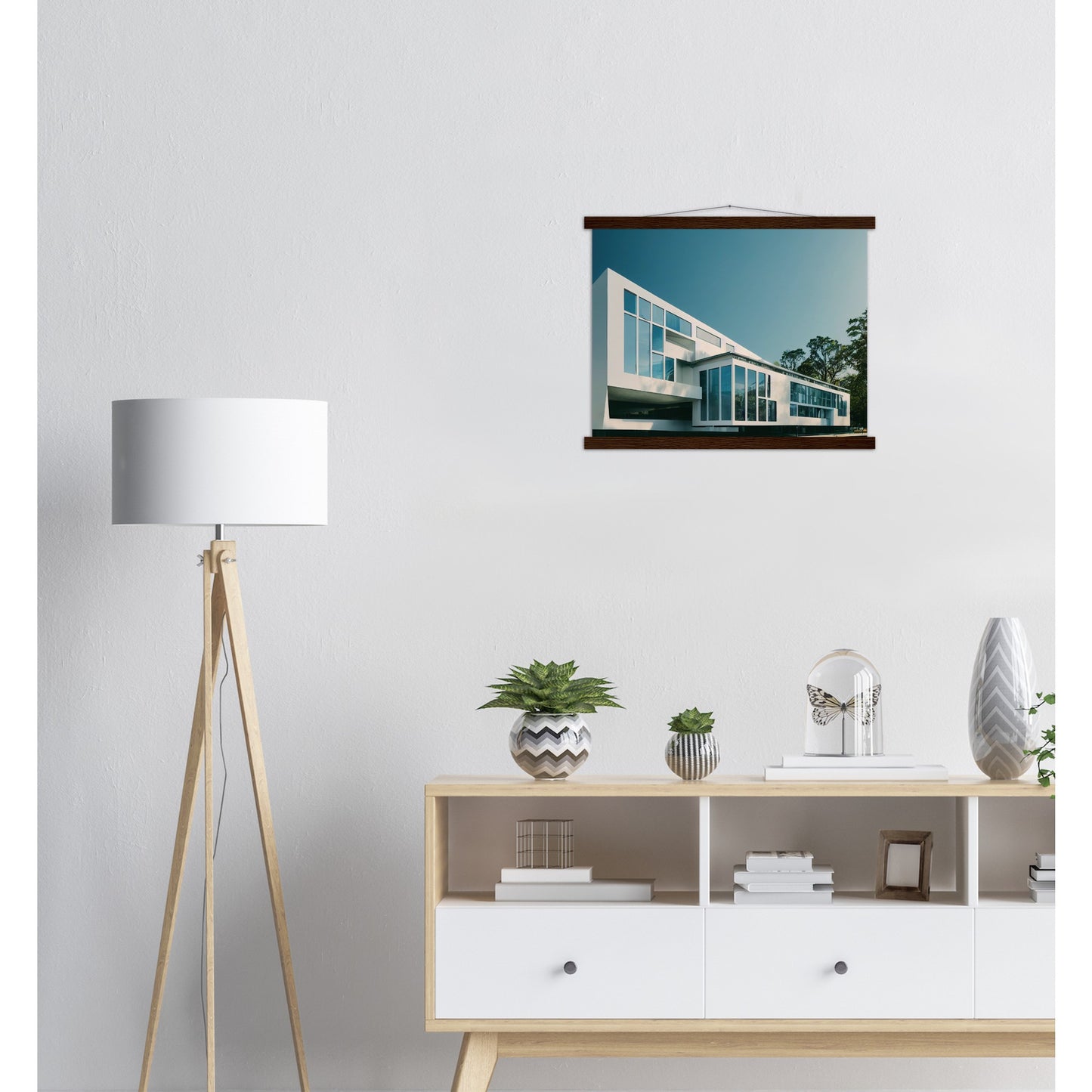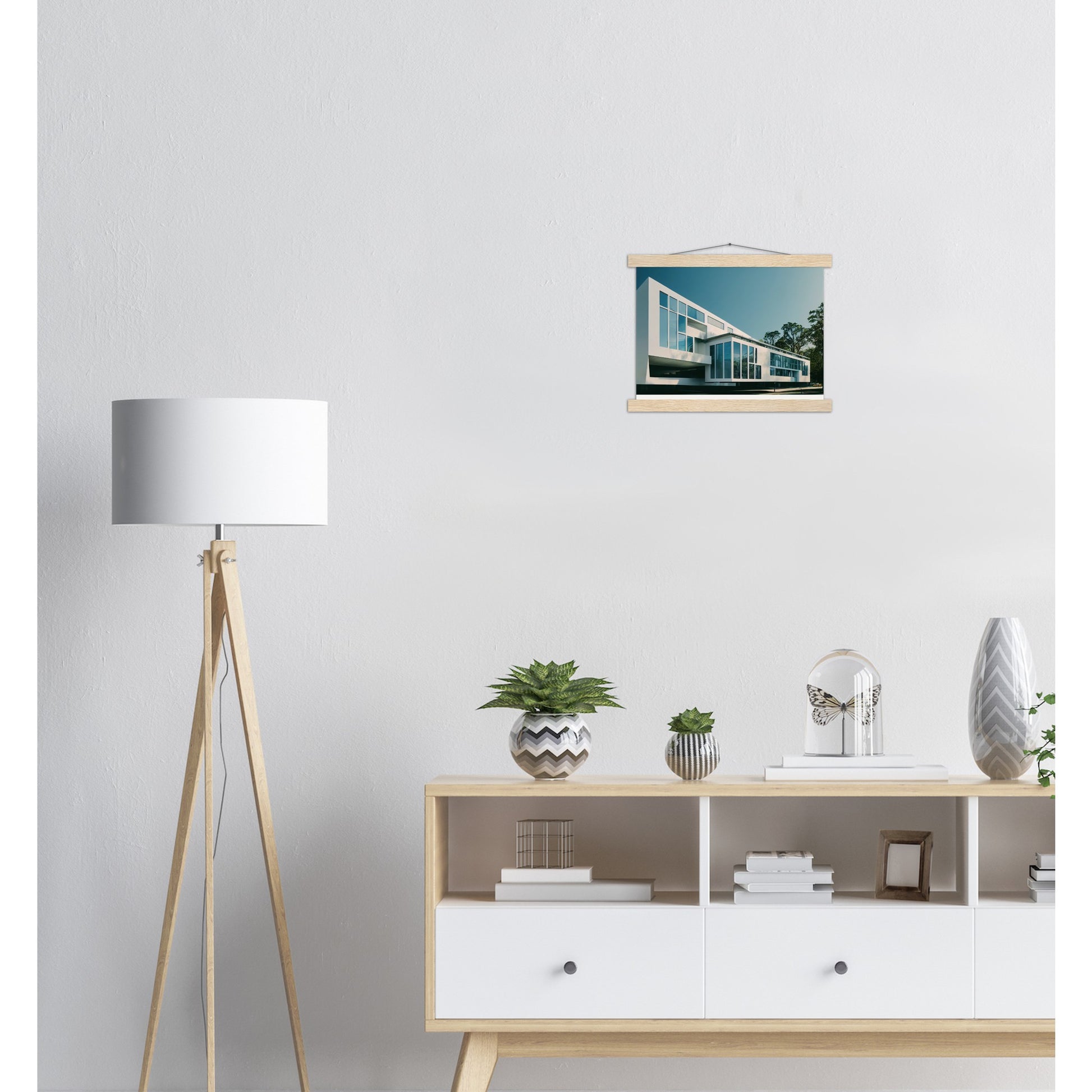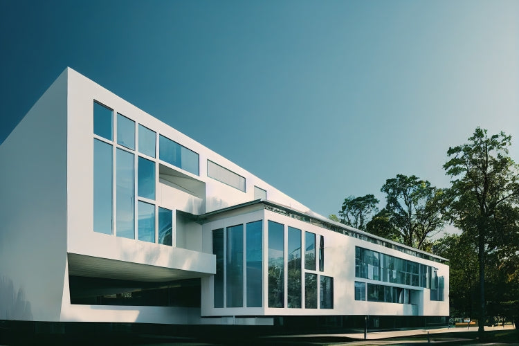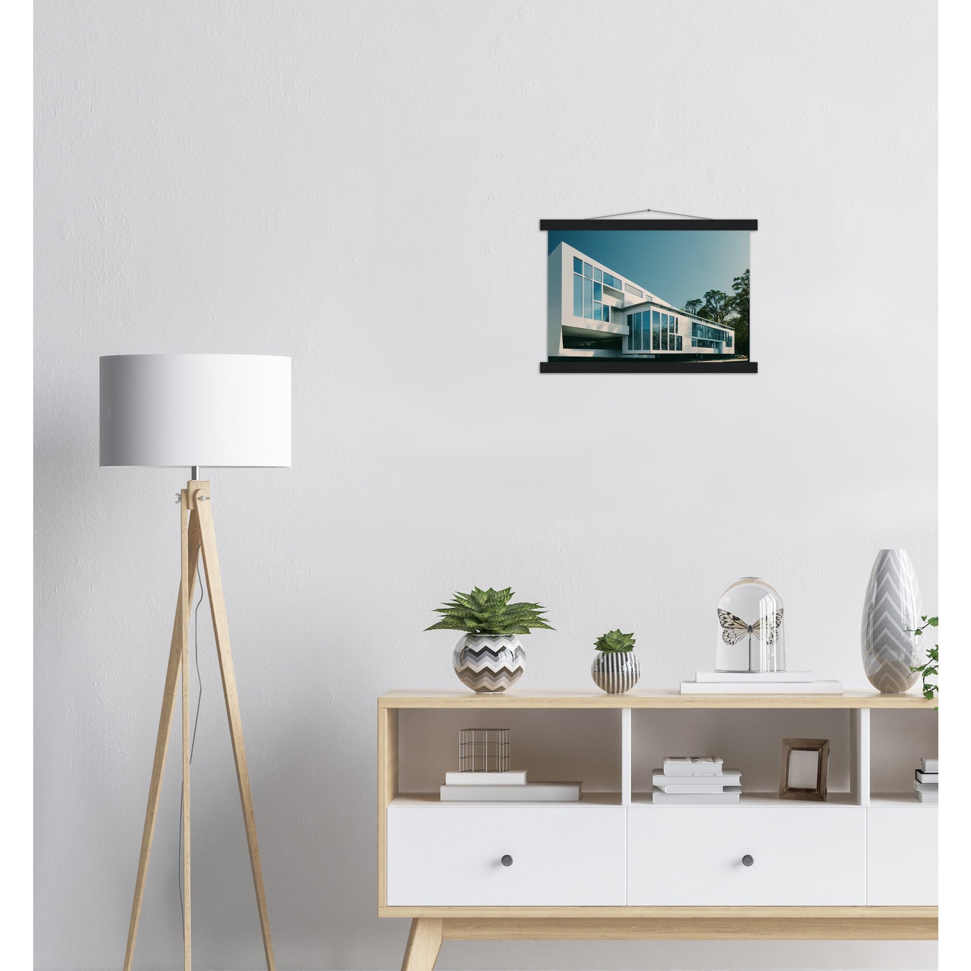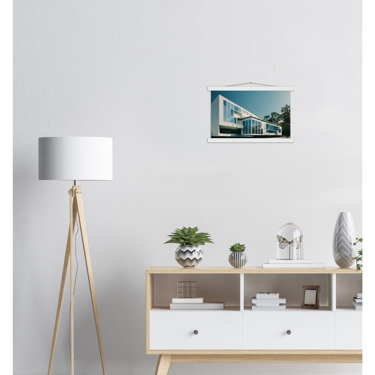 ¡Bienvenido al mundo de la arquitectura! Este diseño muestra un edificio moderno y espacioso con una fachada blanca y un frente de ventana grande. La propiedad se encuentra en una propiedad similar a un parque y podría ser una galería de arte o una oficina moderna. Si te decides por esta pieza de arte mural, no solo demuestras que tienes un excelente gusto en arquitectura, sino que también obtienes una pieza única en tus cuatro paredes. Esta pieza de arte mural está disponible exclusivamente a través de nosotros y está disponible como póster, con y sin tiras, en un marco de imagen o como pintura acrílica en varios tamaños. Combínalo con otra imagen arquitectónica y lleva a tus visitantes a un viaje por el mundo de los edificios modernos.