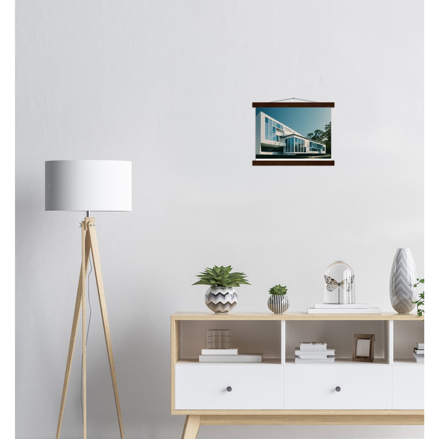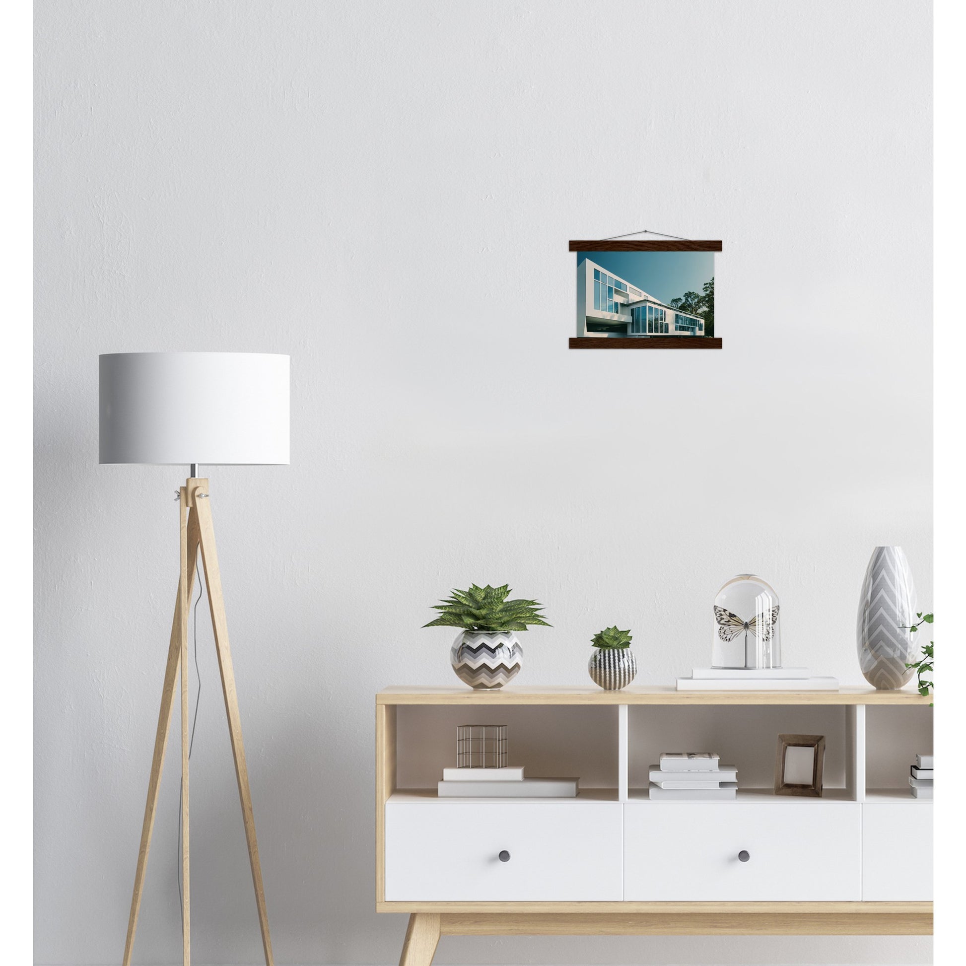 Un póster de alta calidad y una hermosa repisa para colgar. Cada colgador incluye cuatro listones de madera, dos que sujetan la parte superior del estampado y dos que sujetan la parte inferior, y un cordón de algodón de alta calidad a juego con el color de los listones. Los fuertes imanes sujetan su obra de arte de forma segura y permiten que el cliente cambie la obra de arte si es necesario.