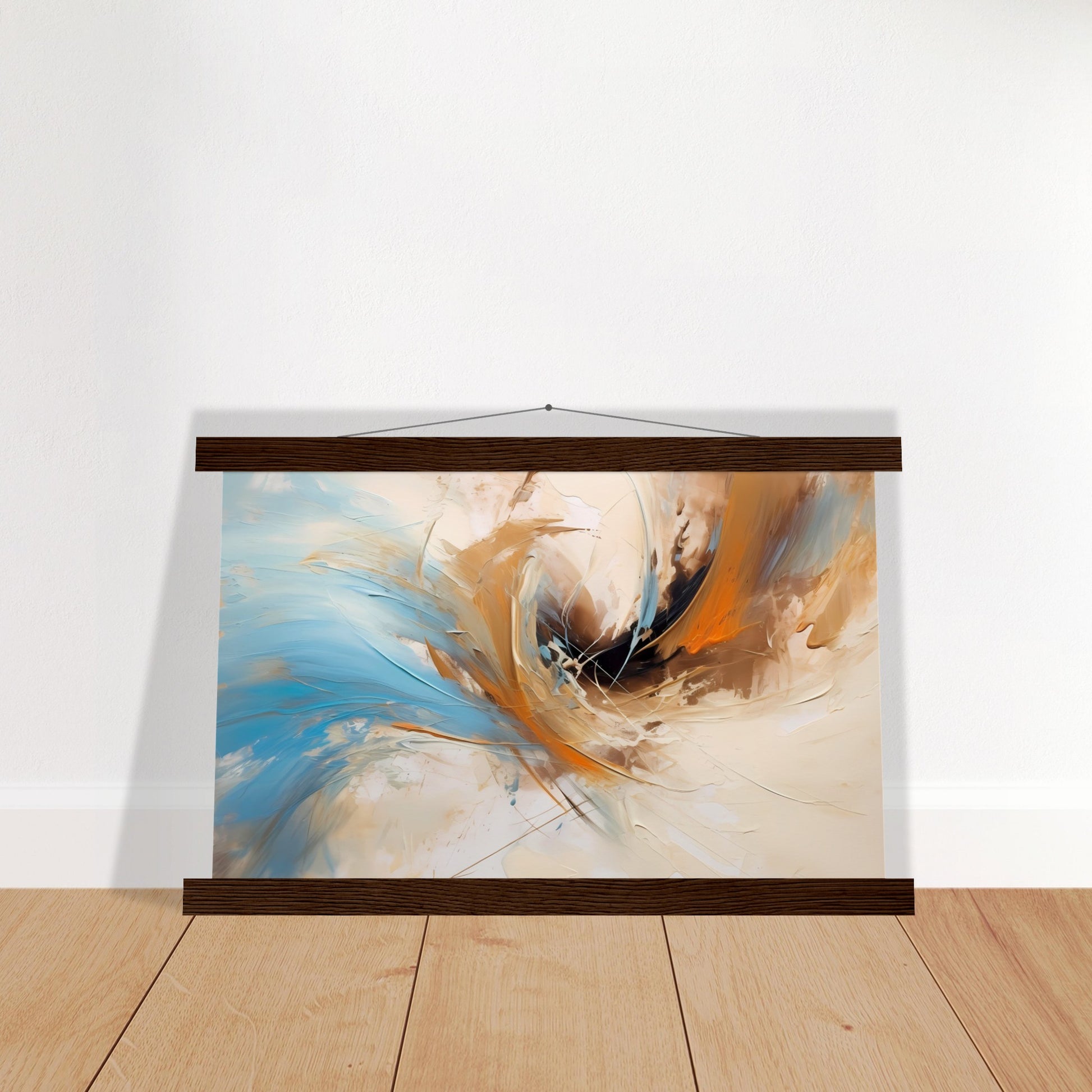 Nuestras barras de madera minimalistas están formadas por cuatro palos de madera magnéticos, dos de los cuales se adhieren a la parte superior de la impresión y dos a la parte inferior para crear un aspecto vintage. El póster está impreso en nuestro papel Master's Edition con calidad de museo. El papel blanquecino, el papel sin recubrimiento, es la opción ideal para los entusiastas del arte que valoran la calidad superior para exhibir sus obras de arte de una manera lujosa.