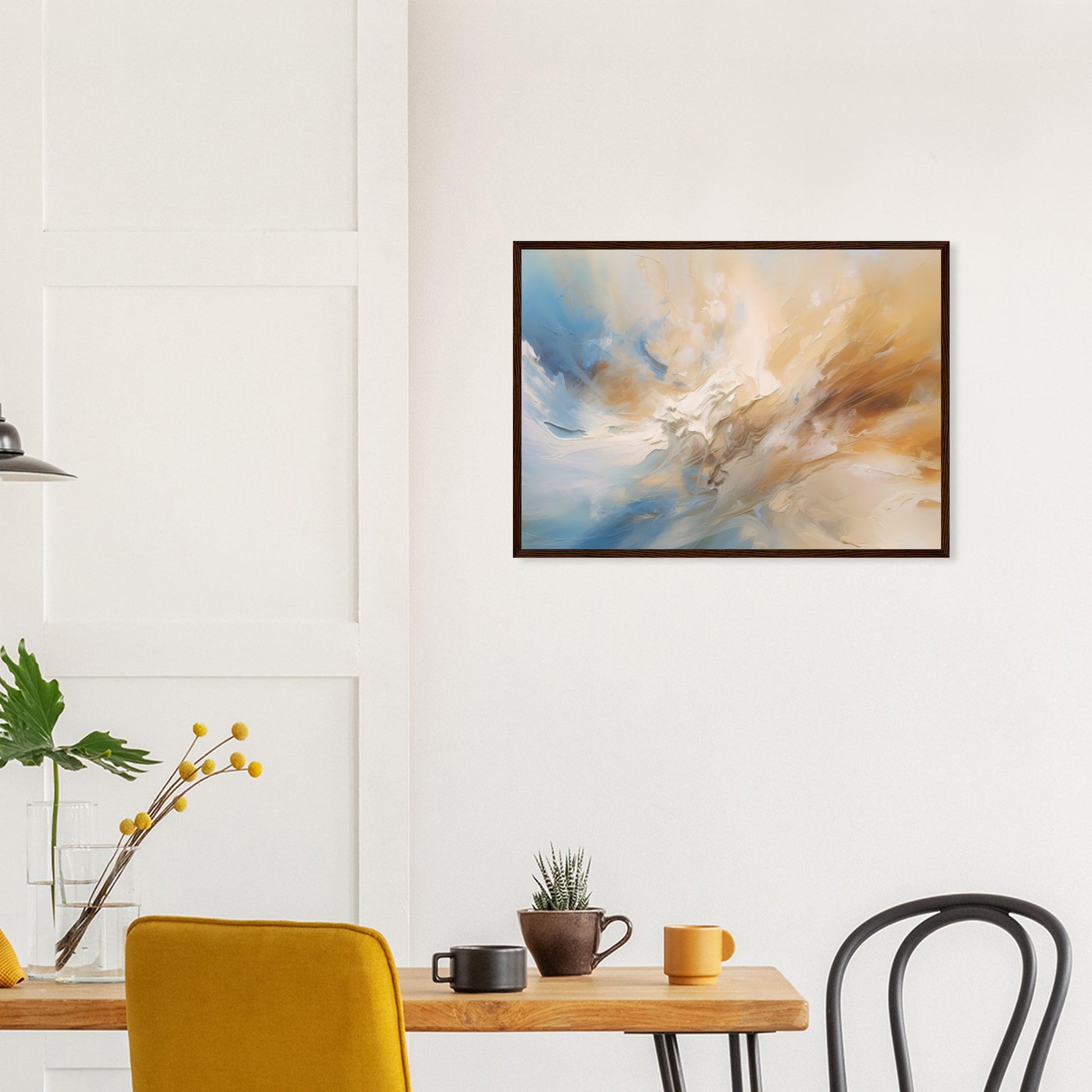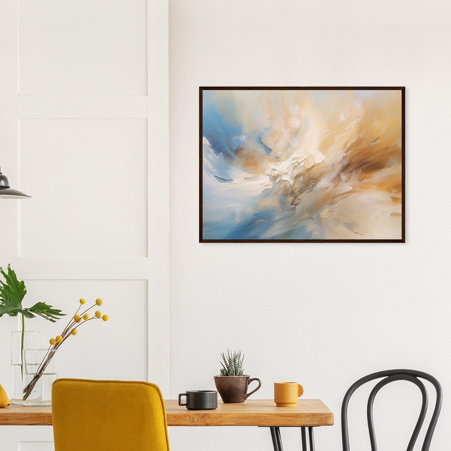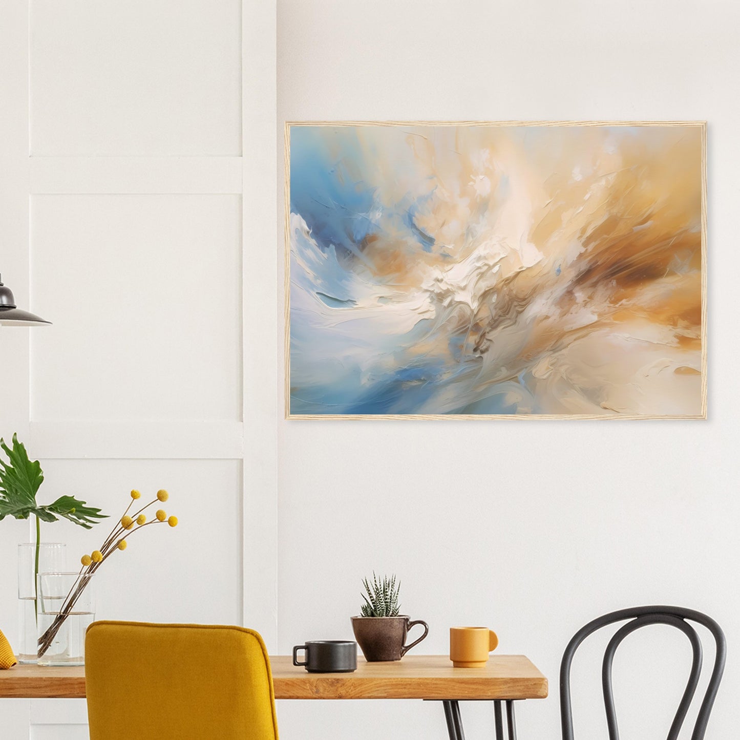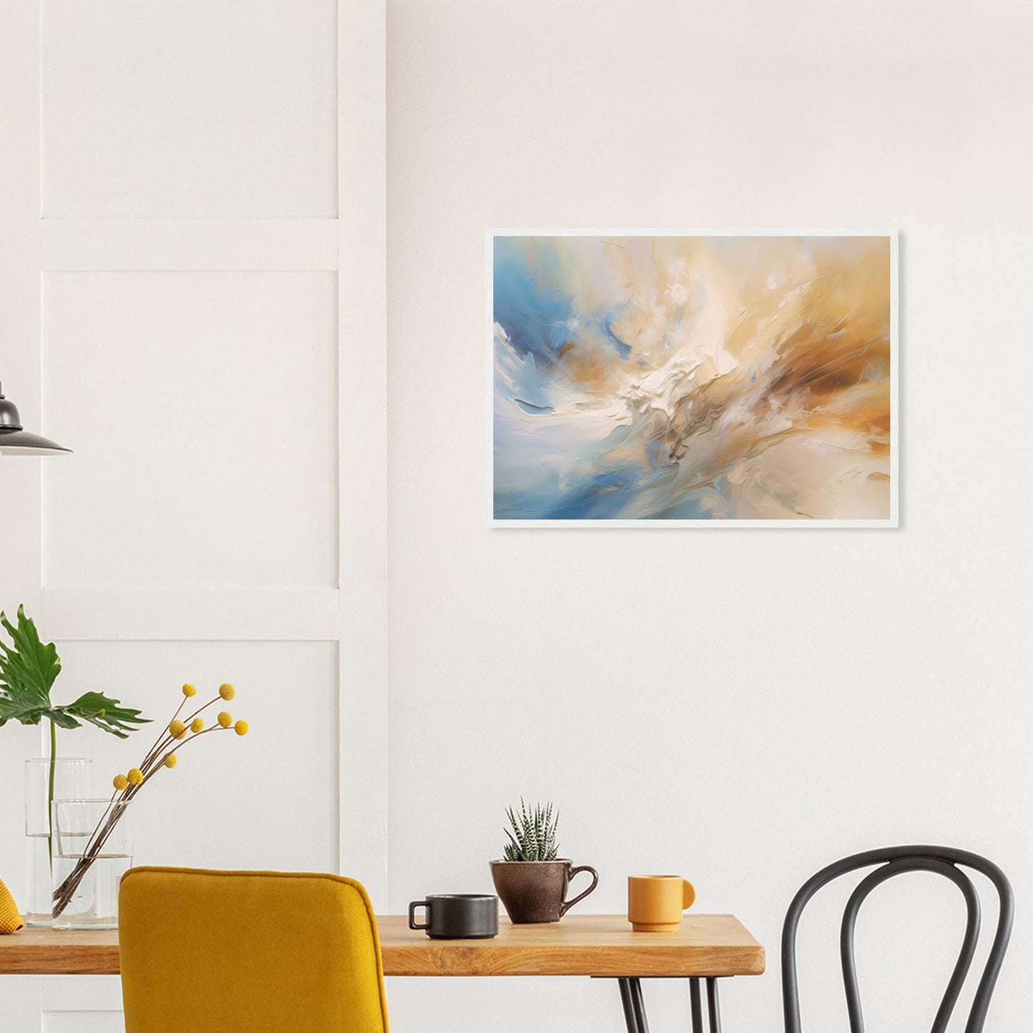 Descubre la fascinante unión de la simplicidad y la complejidad en esta obra de arte única, capturada por PIXELBOYS y ahora disponible como un impresionante póster. Si bien no es la pintura de renombre mundial de Edvard Munch, El Grito, lo que ha cautivado al mundo del arte, esta obra maestra abstracta atrae al espectador. El uso sutil de la pasta de textura crea una textura sutil pero llamativa que hace que la imagen se destaque. Con gradientes suaves y una gran dinámica, las transiciones de azul, blanco, beige y los colores del cielo y la tierra se combinan para formar una composición armoniosa.