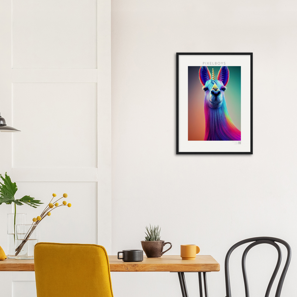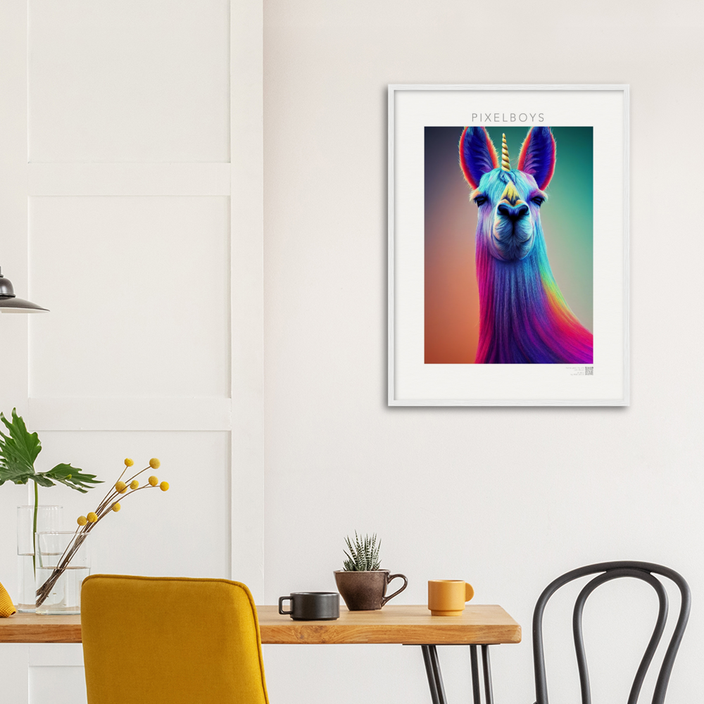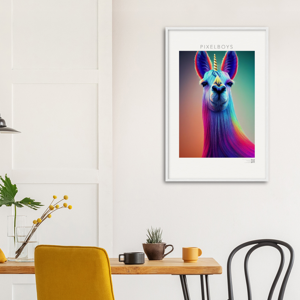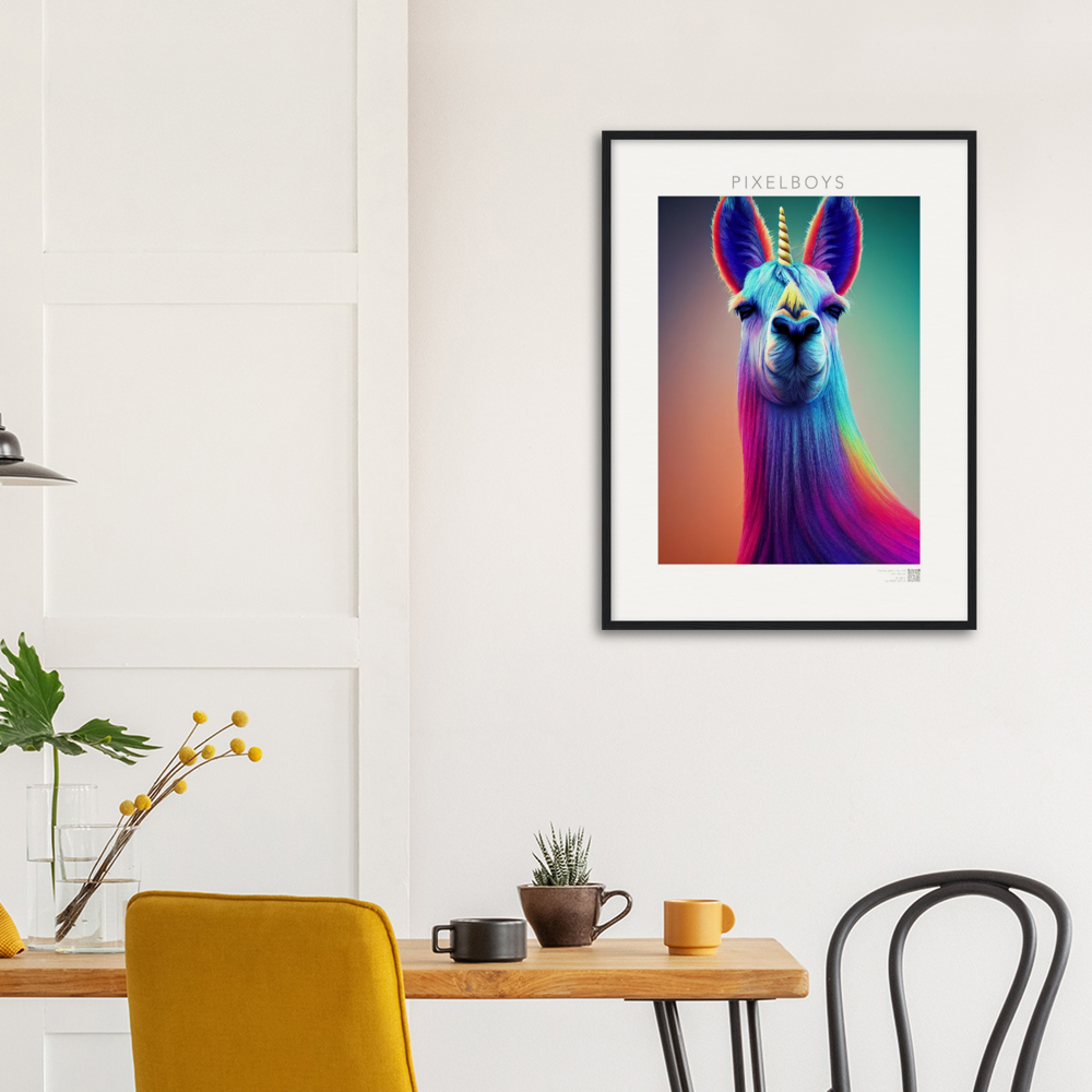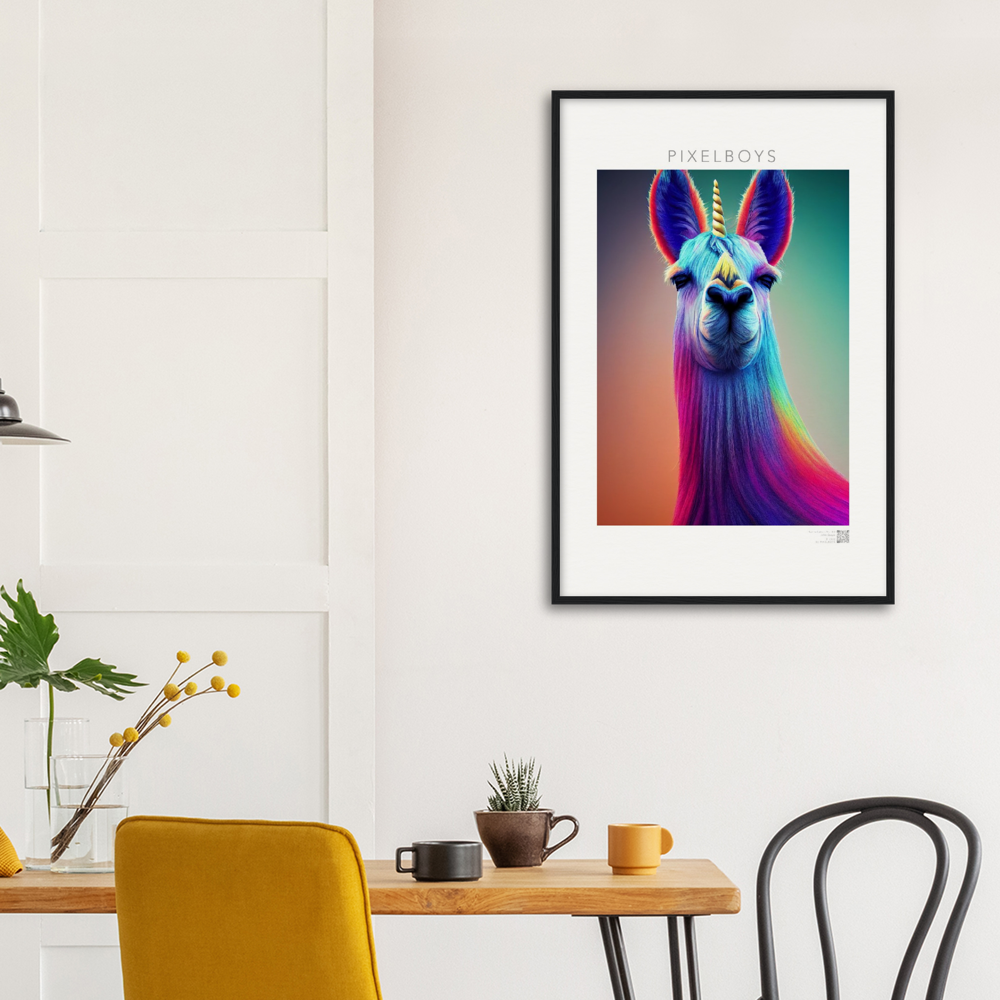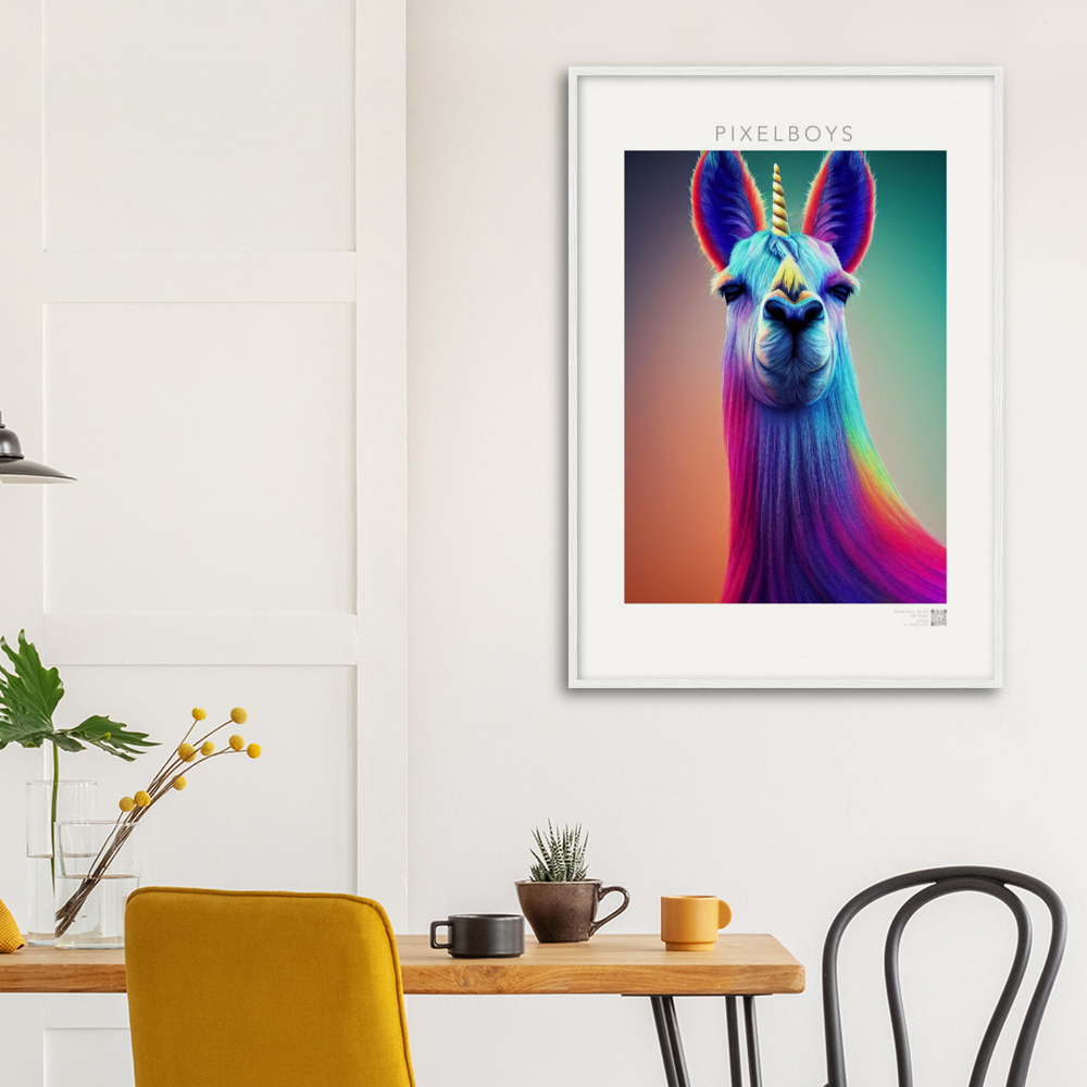Bob – en realidad “Karma Lama No. 3” es la tercera y última imagen de la colección de coleccionistas de John Grayst. La obra de arte como mural, que sólo se puede obtener de nosotros, irradia la vida pura de una persona que está por encima de las cosas. El unicornio es sin duda algo místico y al igual que la llama está por encima de todas las cosas. Míralo a los ojos y date cuenta de que el destino te está mirando a ti. Ya sea como póster o como cuadro enmarcado, por supuesto también como póster con calidad de museo, ¡no todo el mundo tiene este motivo!