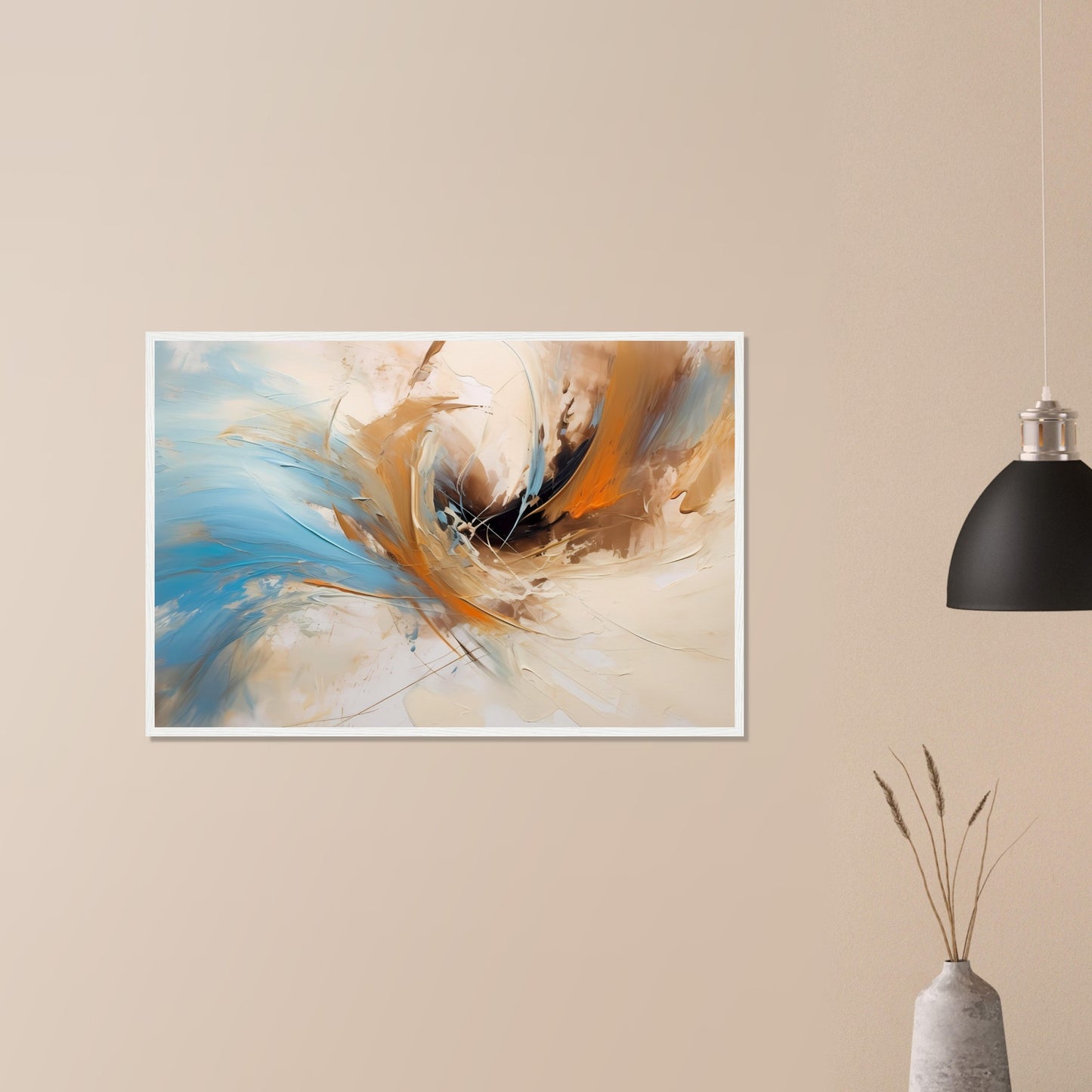 Descubre la fascinante unión de la simplicidad y la complejidad en esta obra de arte única, capturada por PIXELBOYS y ahora disponible como un impresionante póster. Si bien no es la pintura de renombre mundial de Vincent van Gogh, Los girasoles, lo que ha cautivado al mundo del arte, esta obra maestra abstracta atrae al espectador. El uso sutil de la pasta de textura crea una textura sutil pero llamativa que hace que la imagen se destaque. Con gradientes suaves y una gran dinámica, las transiciones de azul, blanco, beige y los colores del cielo y la tierra se combinan para formar una composición armoniosa.