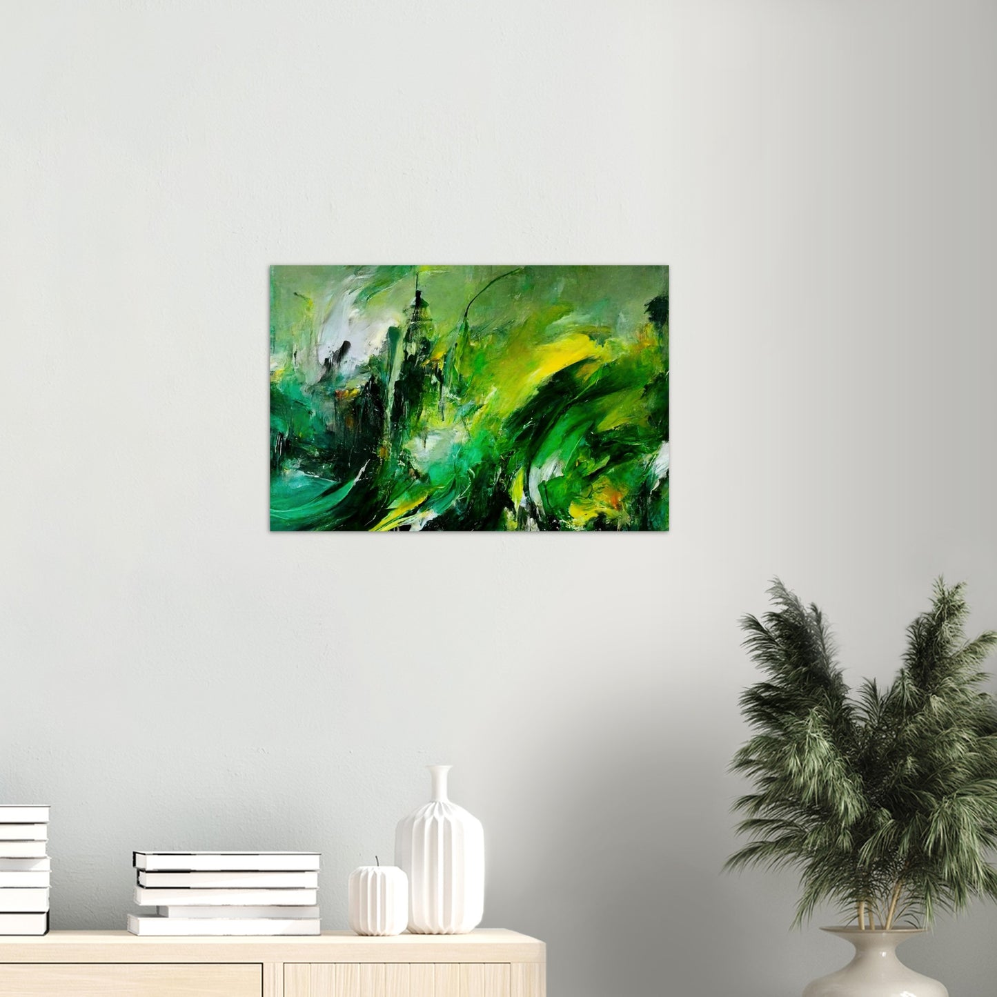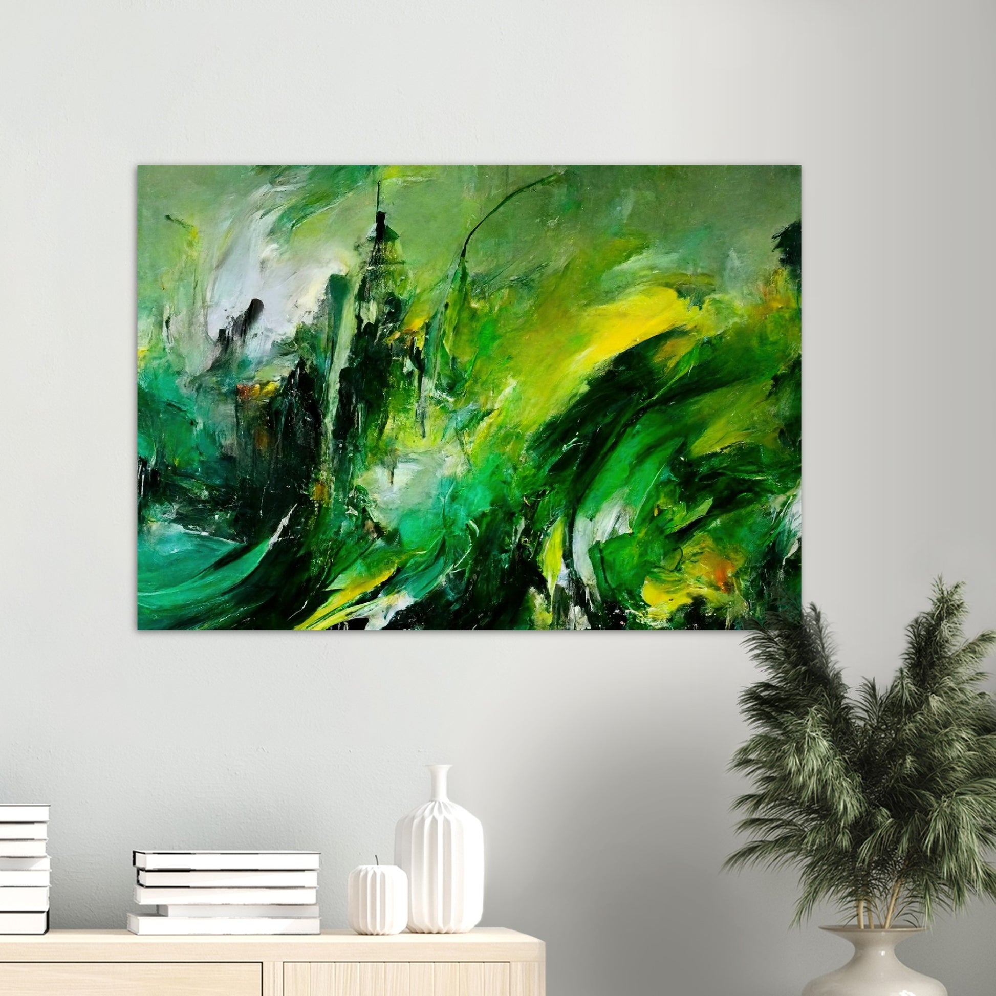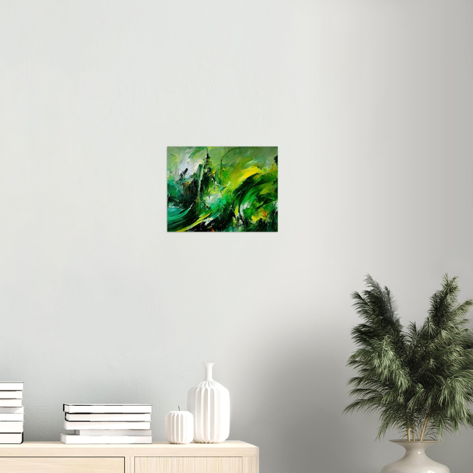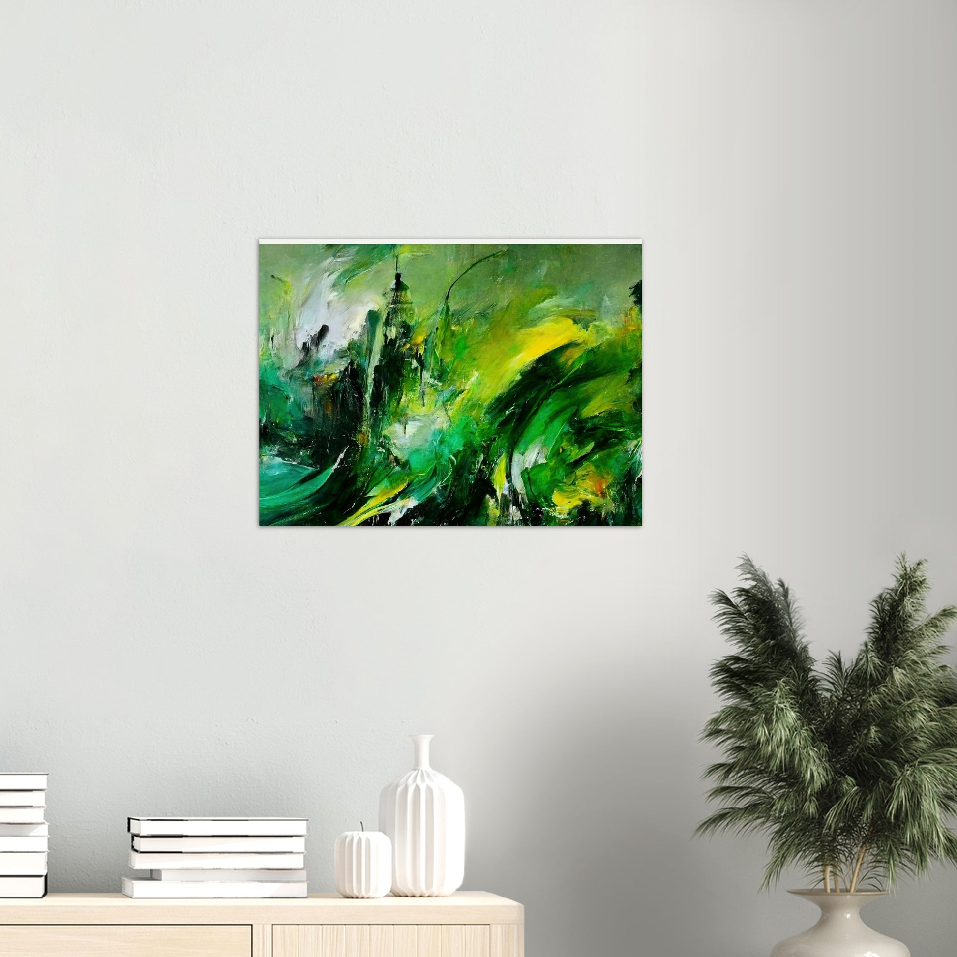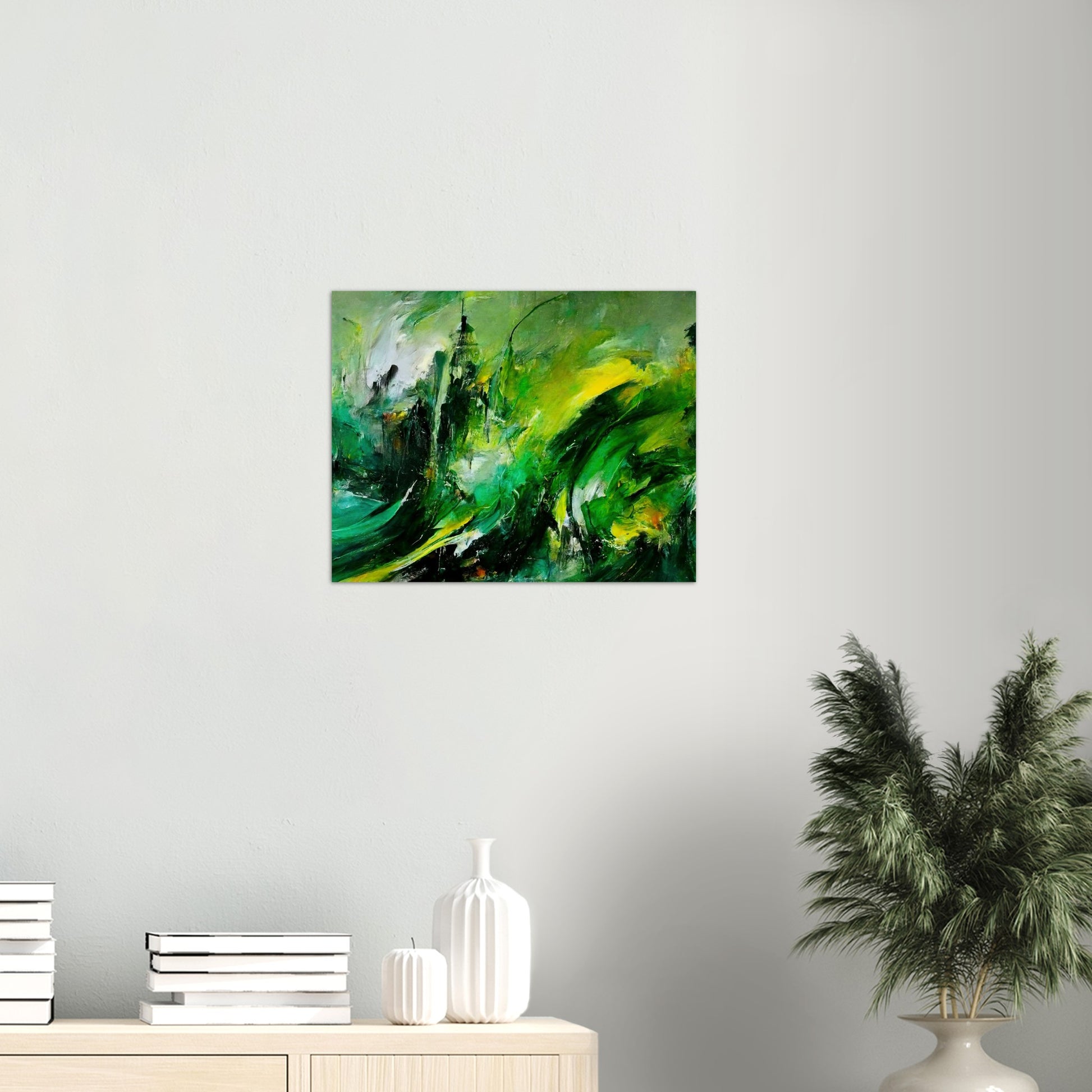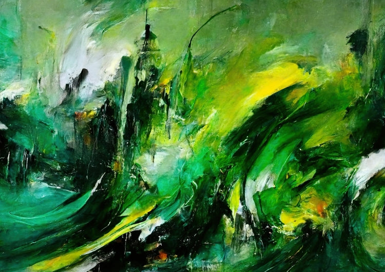 Según el artista, la pintura al óleo "La venganza de la naturaleza" muestra una tierra que se defiende. Se supone que esto es un símbolo de cómo las personas tratan con el planeta. Según la idea del artista, el planeta se venga del hombre. Los trazos masivos y el fuerte contraste en los tonos verdes crean un tremendo dinamismo y reflejan la ira y la desesperación. Sin embargo, en el cuadro no hay resentimiento, sino que se pretende despertar la comprensión y la esperanza y estimular el pensamiento. Como siempre, este mural solo está disponible en nuestra tienda. Aquí obtienes un póster de alta calidad con calidad de museo y tienes la opción de colgarlo solo con el póster o con las tiras a juego. Nuestros carteles también están disponibles en marcos y, eso es lo que nos hace especiales, no tienes que hacer nada. ¡El póster se imprimirá para usted, se colocará en el marco, se empaquetará cuidadosamente y se lo enviaremos! Al igual que con todos nuestros motivos, "Revenge of Nature" también está disponible como una taza de café impresa.
