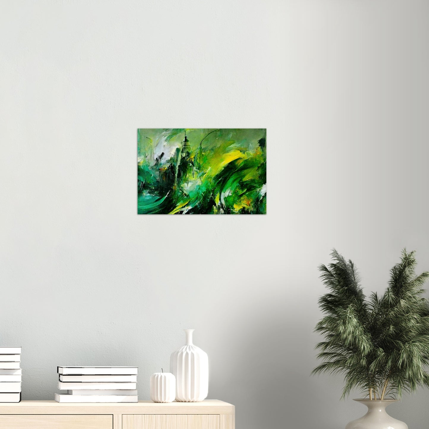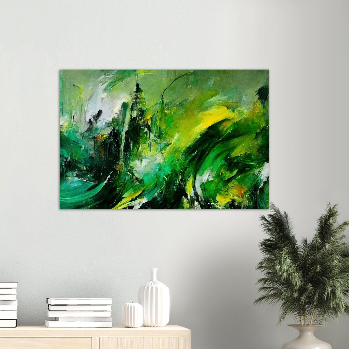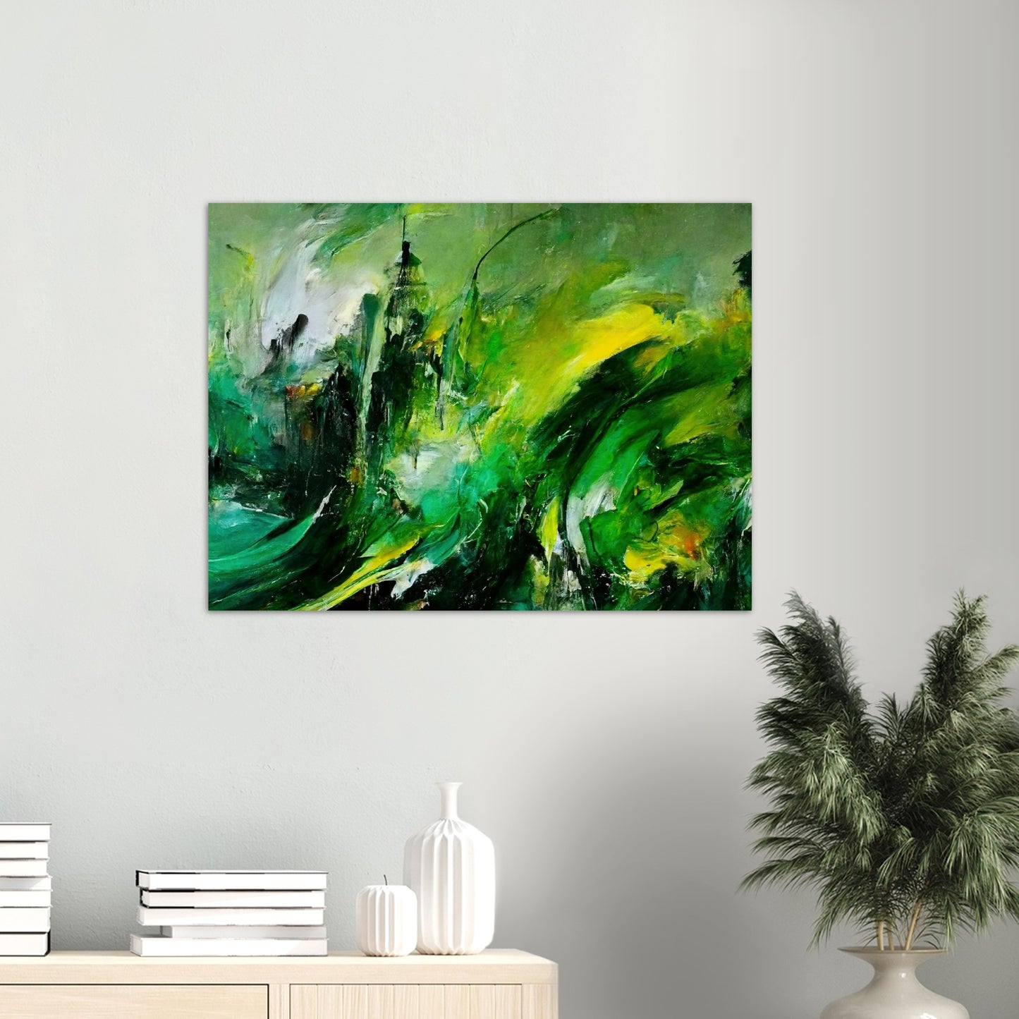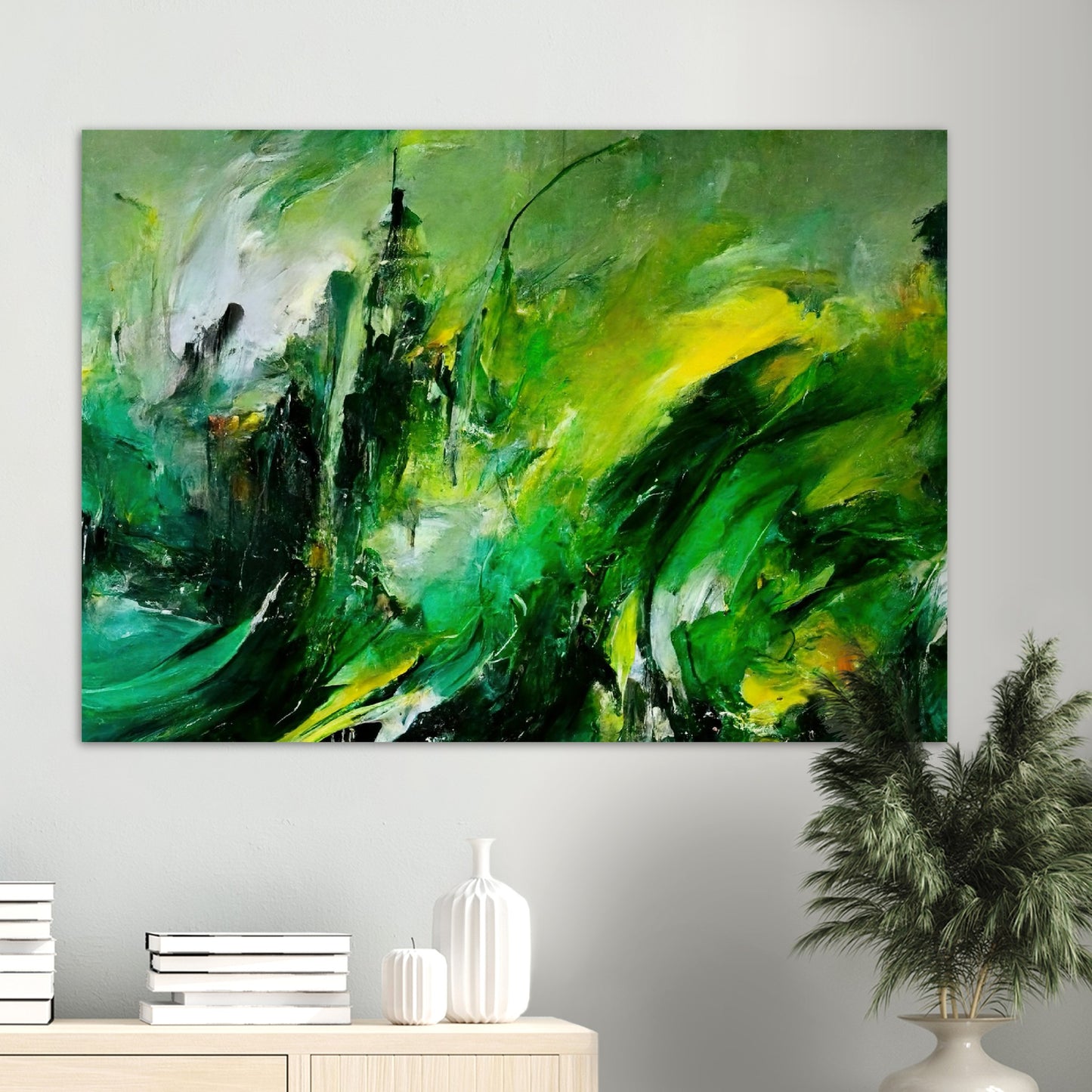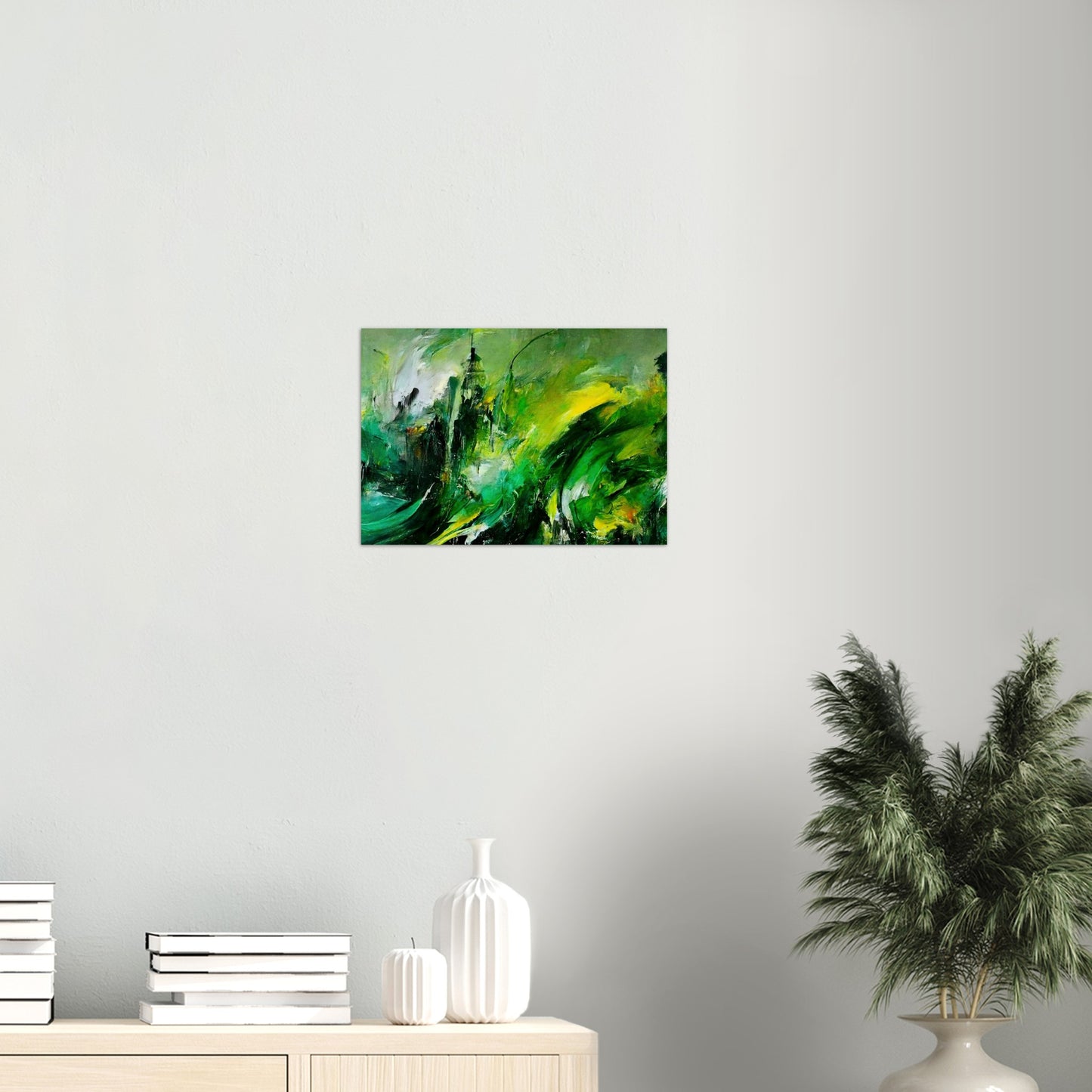 Según el artista, la pintura al óleo "La venganza de la naturaleza" muestra una tierra que se defiende. Se supone que esto es un símbolo de cómo las personas tratan con el planeta. Según la idea del artista, el planeta se venga del hombre. Los trazos masivos y el fuerte contraste en los tonos verdes crean un tremendo dinamismo y reflejan la ira y la desesperación. Sin embargo, en el cuadro no hay resentimiento, sino que se pretende despertar la comprensión y la esperanza y estimular el pensamiento. Como siempre, este mural solo está disponible en nuestra tienda. Aquí obtienes un póster de alta calidad con calidad de museo y tienes la opción de colgarlo solo con el póster o con las tiras a juego. Nuestros carteles también están disponibles en marcos y, eso es lo que nos hace especiales, no tienes que hacer nada. ¡El póster se imprimirá para usted, se colocará en el marco, se empaquetará cuidadosamente y se lo enviaremos! Al igual que con todos nuestros motivos, "Revenge of Nature" también está disponible como una taza de café impresa.