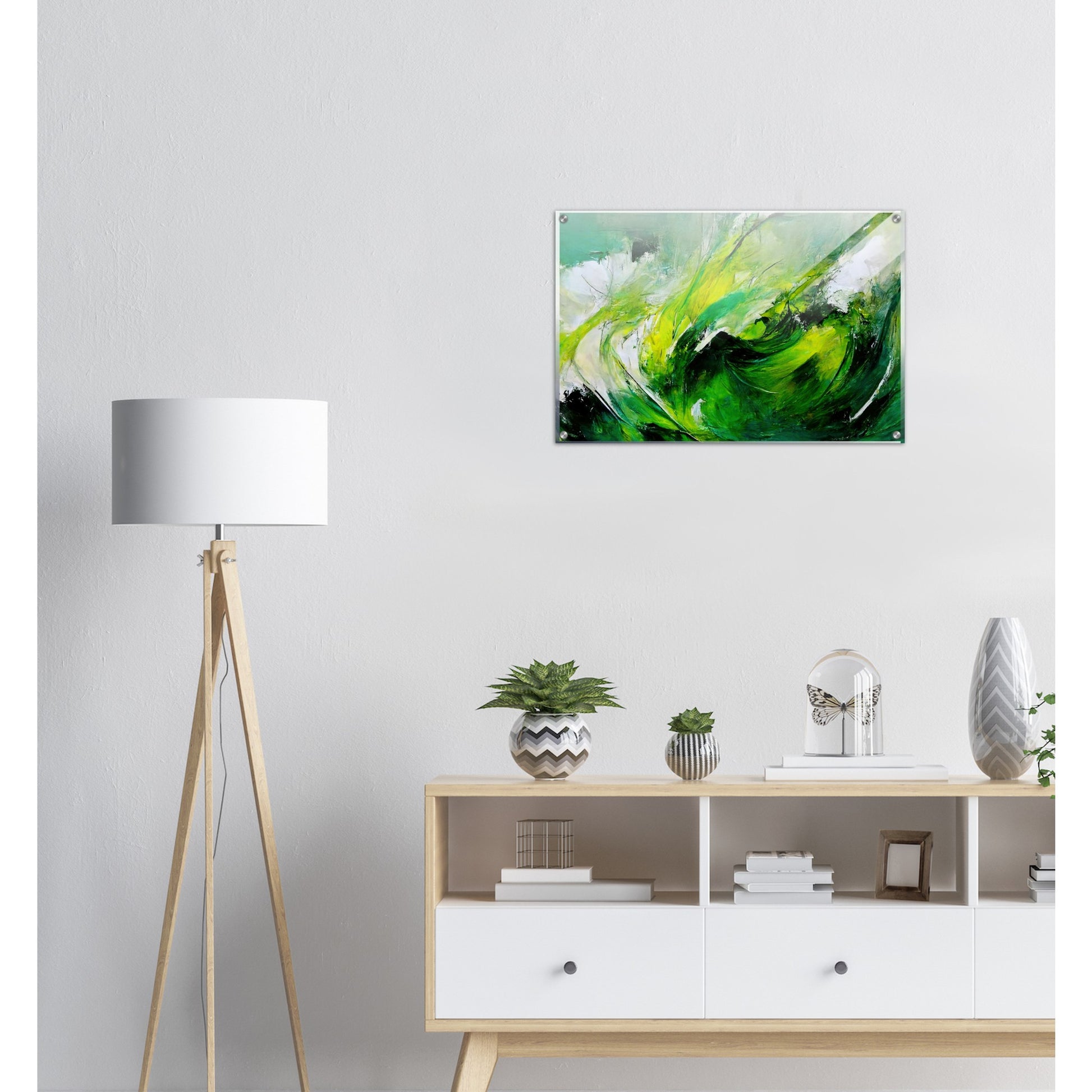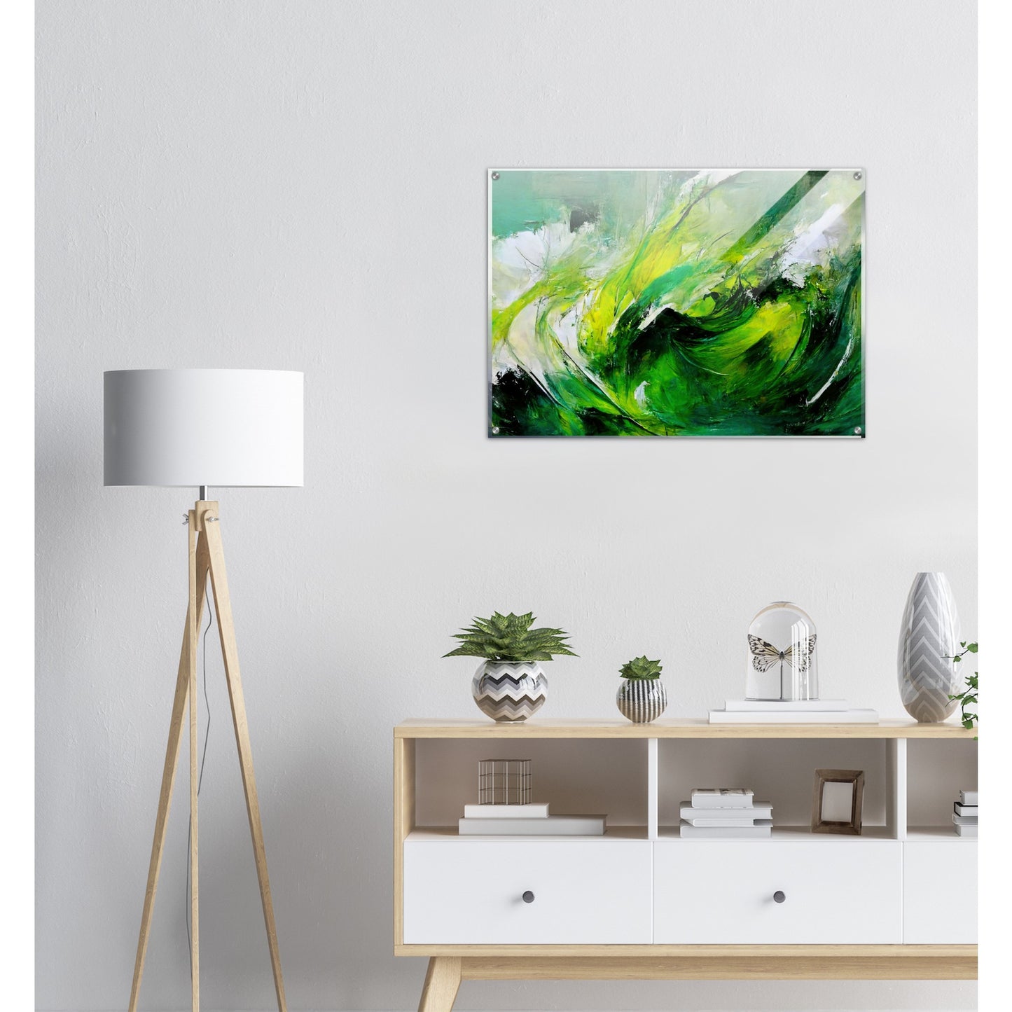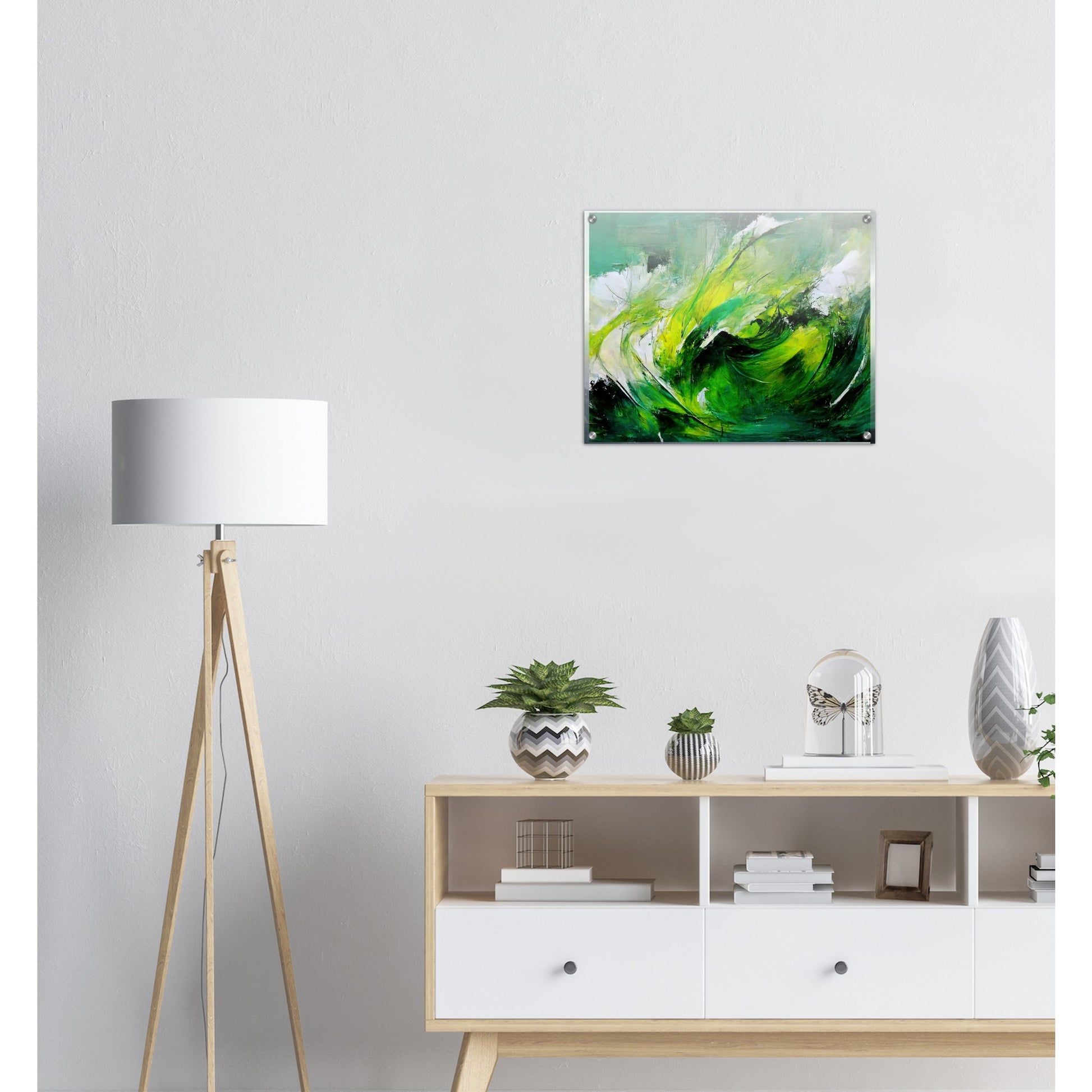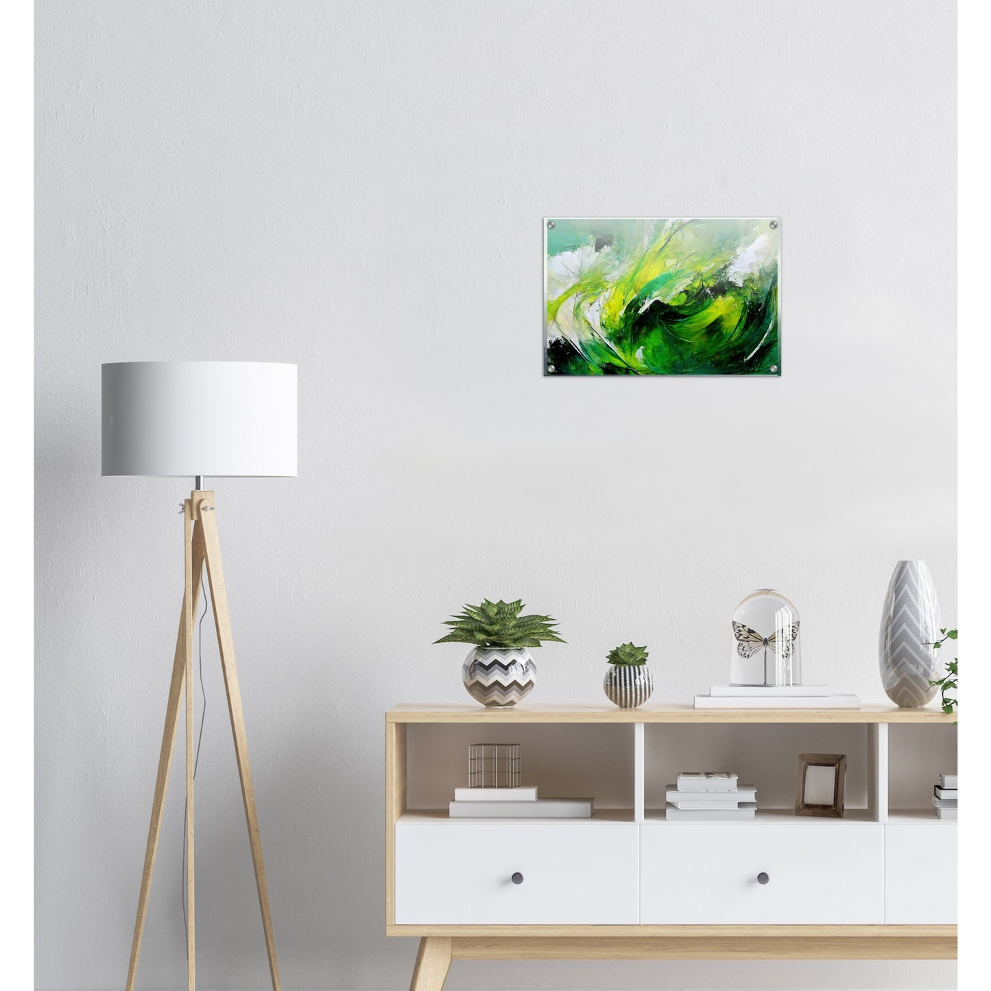Das Ölgemälde „Green Storm“ zeigt nach Angaben des Künstlers eine peitschende, grüne See, die Sinnbild für den Umgang des Menschen mit dem Planeten sein soll. Der Idee des Künstlers nach, rächt sich der Planet am Menschen, dargestellt durch die hohen Wellen. Die massiven Striche und der starke Kontrast in den Grüntönen erzeugt eine ungeheure Dynamik und spiegelt Wut und Verzweiflung wider. Dennoch liegt kein Groll in dem Bild, sondern viel mehr soll es Verständnis und Hoffnung wecken und zum Nachdenken anregen. . Dieses Wandbild gibt es wie immer exklusiv nur in unserem Shop. Sie erhalten hier ein hochwertiges Poster in Museumsqualität und haben die Wahl, ob Sie nur das Poster, oder die passenden Leisten zum Aufhängen dazu haben wollen. Unsere Poster gibt es auch im Bilderrahmen und – das ist das besondere bei uns – sie müssen nichts mehr tun. Das Poster wird für Sie gedruckt, in den Rahmen eingesetzt, sorgfältig verpackt und an Sie versendet! Wie bei allen unseren Motiven gibt es auch „Green Storm“ als bedruckte Kaffeetasse!