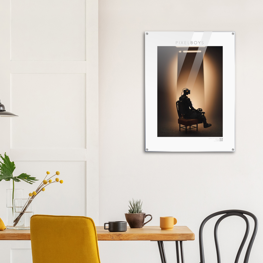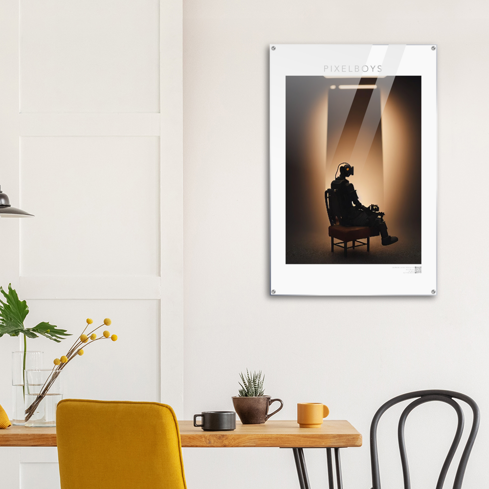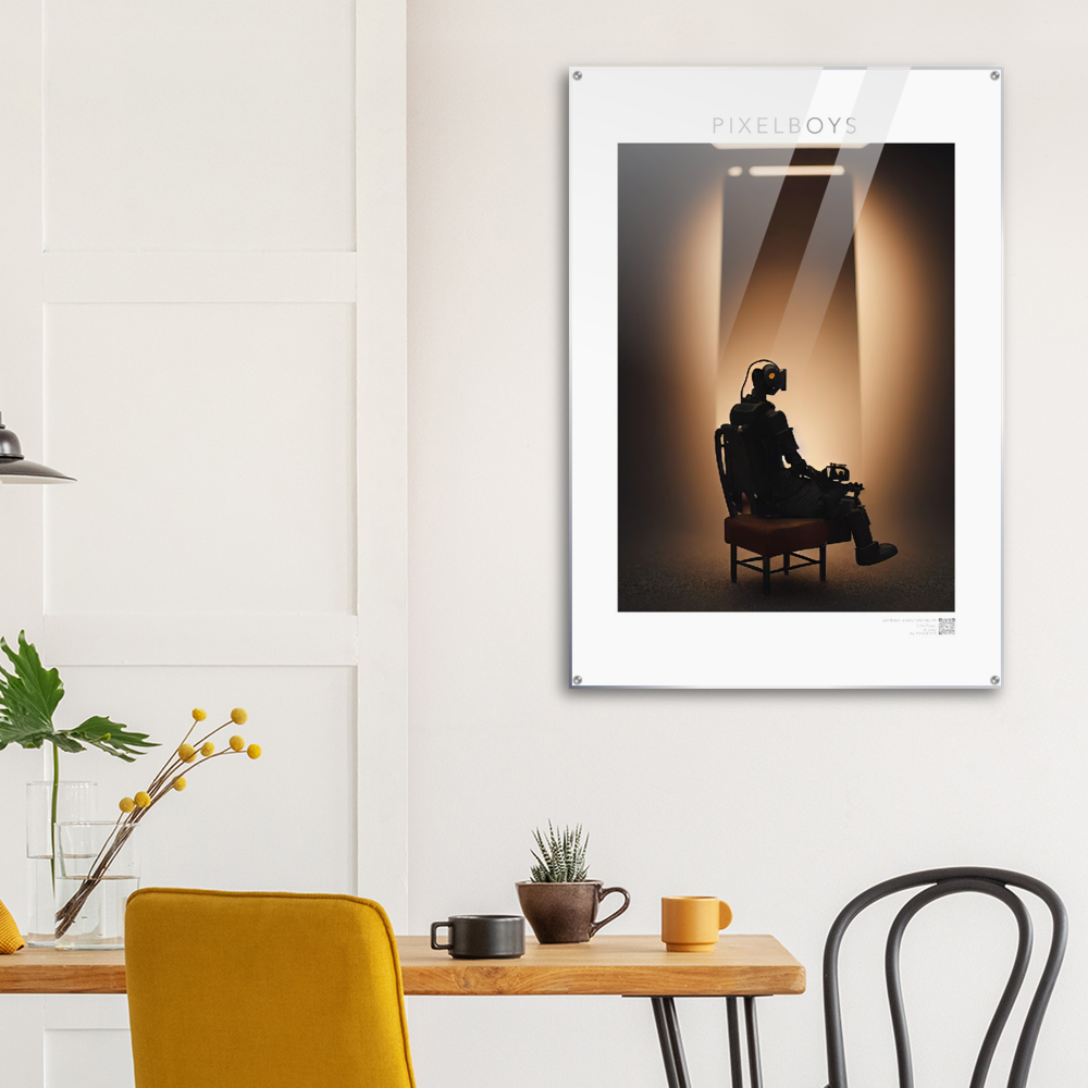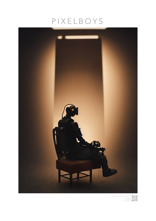 In der Rubrik „Sad Robots 2022“ veröffentlich unser Künstler John Grayst mit „Lonely“ 5 ganz besondere Bilder. Das Bild zeigt einen einsamen Roboter auf einem Stuhl in einem kleinen, nichtssagenden Raum. Der zentrale Blick des Faksimiles ruht auf scheint von der Kamera abgewandt zu sein. In der Bildredaktion gab es die Vermutung, dass er auf ein Handy starrt – eine vielleicht sehr menschliche Interpretation, aber nicht unbedingt unzutreffend. Der Künstler selbst gibt keine Auskunft über eine mögliche tiefere Bedeutung. Für ihn zählt die Gesamtwirkung, die gleichsam etwas Düsteres, wie beruhigendes mit sich bringt. Wie alle unsere exklusiven Bilder gibt es auch Lonely No. 1 als Poster, mit und ohne Rahmen, in Leisten, oder hinter Acryl gedruckt.