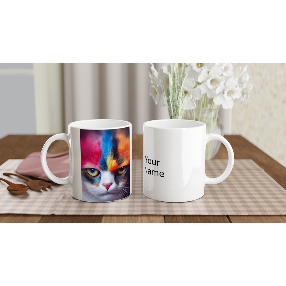 Personalisierte Tasse - Mürrische Regenbogen Katze "Lucy"