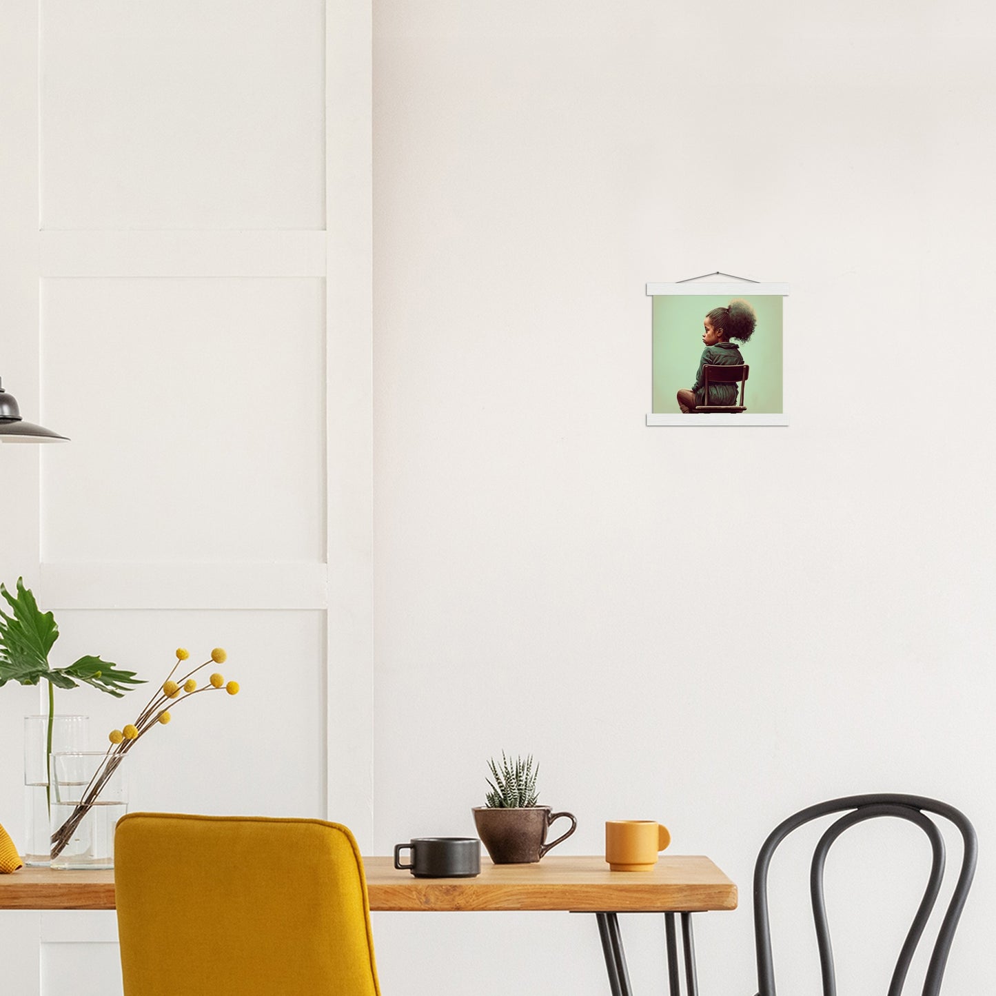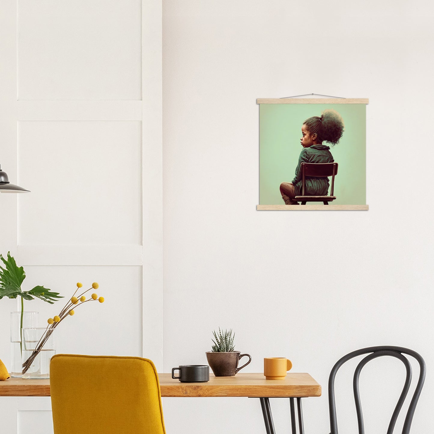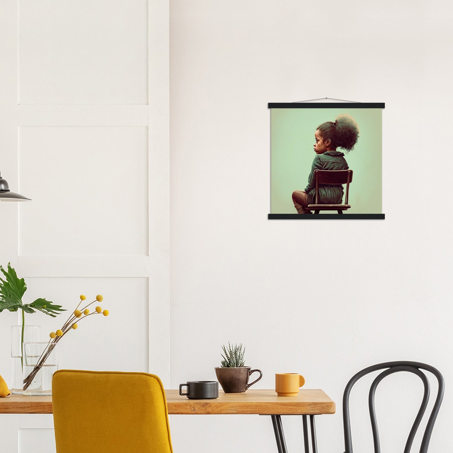 Ein hochwertiges Poster und ein wunderschöner Leistenaufhänger. Jede Aufhänger enthält vier Holzleisten, zwei, die die Oberseite des Drucks festklemmen, und zwei, die die Unterseite festklemmen, sowie eine hochwertige Baumwollschnur, die zur Farbe der Leisten passt. Starke Magnete halten dein Kunstwerk sicher fest und ermöglichen es dem Kunden, das Kunstwerk bei Bedarf zu wechseln.