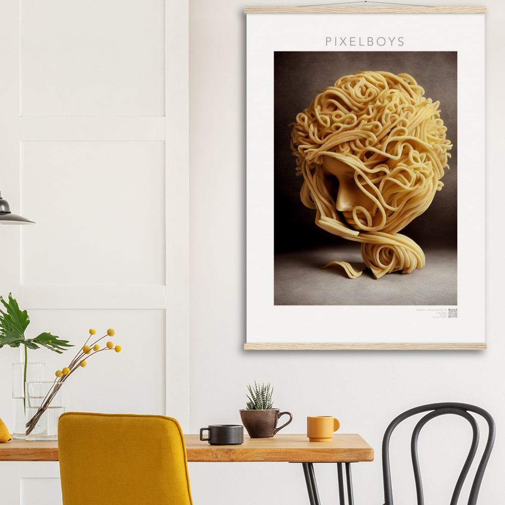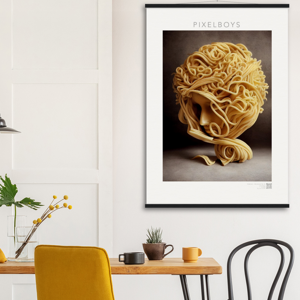 „Ich höre schon die Stimme meiner Mutter die sagt: „Mit Essen spielt man nicht.“– Sagte unser Künstler John Grayst als er uns seine Reihe „Pastarized“ aus seiner „Nudel-Phase“ übermittelte. Das Dritte und letzte Bild der Kollektion hat den Titel „The Women“ erhalten. Da das Bild mit dem Computer generiert wurde, kamen natürlich keine Lebensmittel dabei um. Wir finden, die visuelle Entstehungsgeschichte der Madonna unter den Nudeln sehr faszinierend und empfehlen das Bild jedem, dessen Herz für Nudeln schlagen. Vergessen Sie nicht: es handelt sich um eine exklusive Kollektion, die Sie nur bei Pixelboys erhalten können!