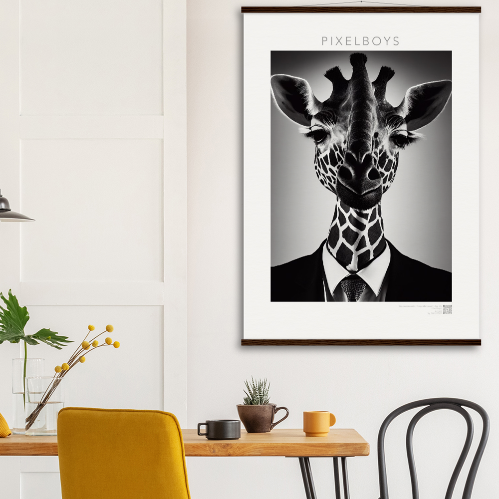 Poster mit Leisten - "The giraffe knows" - Business Animals No. 2 "Bridget"