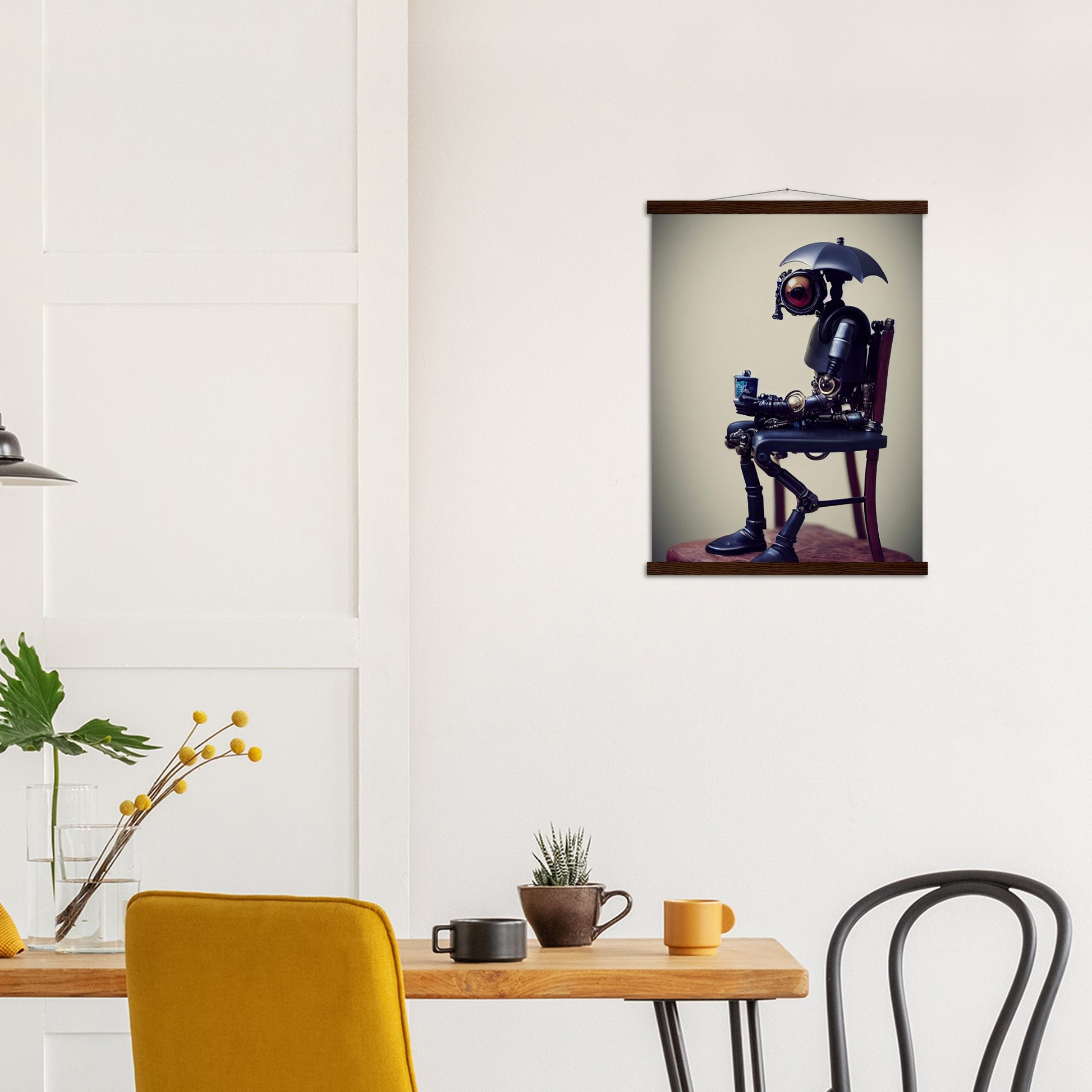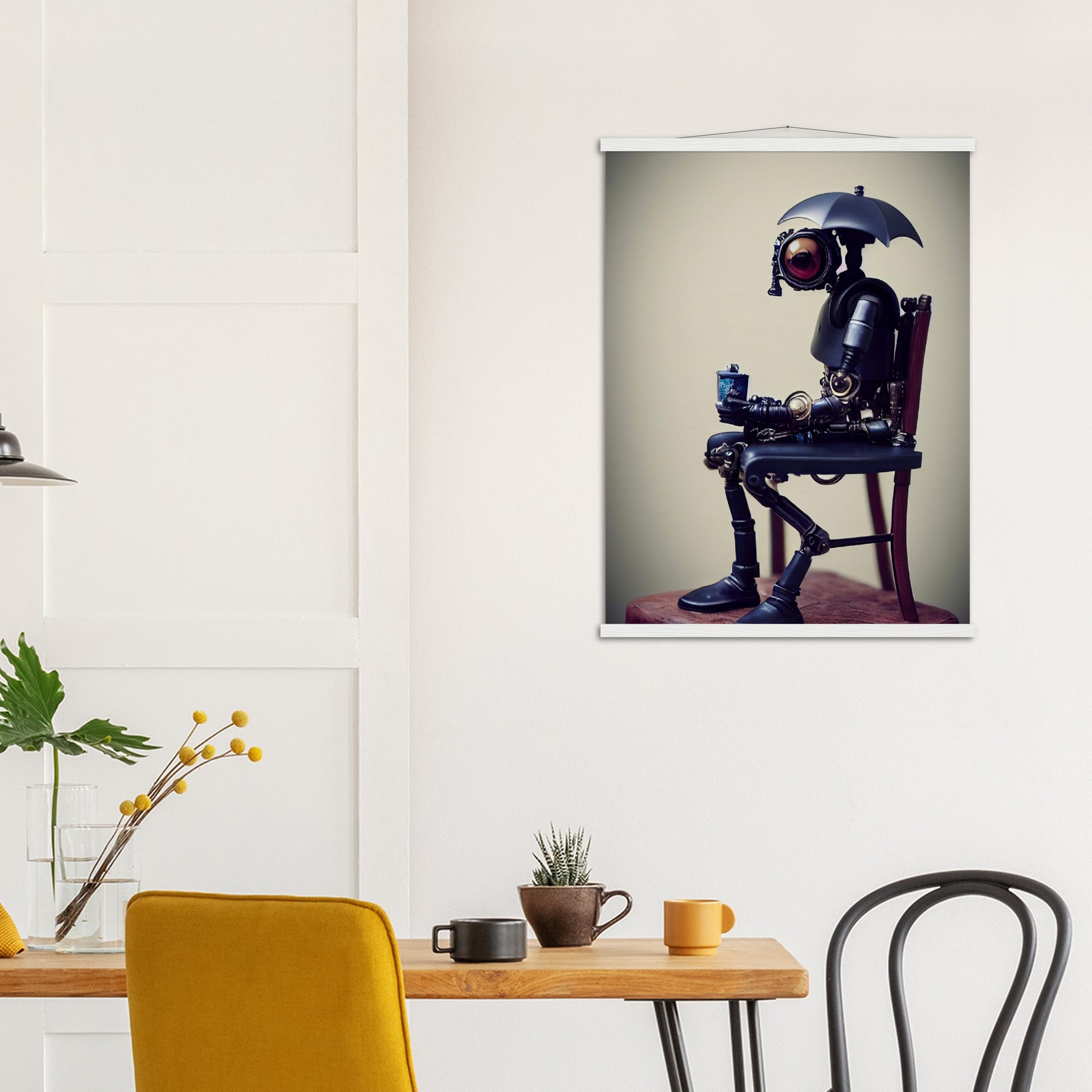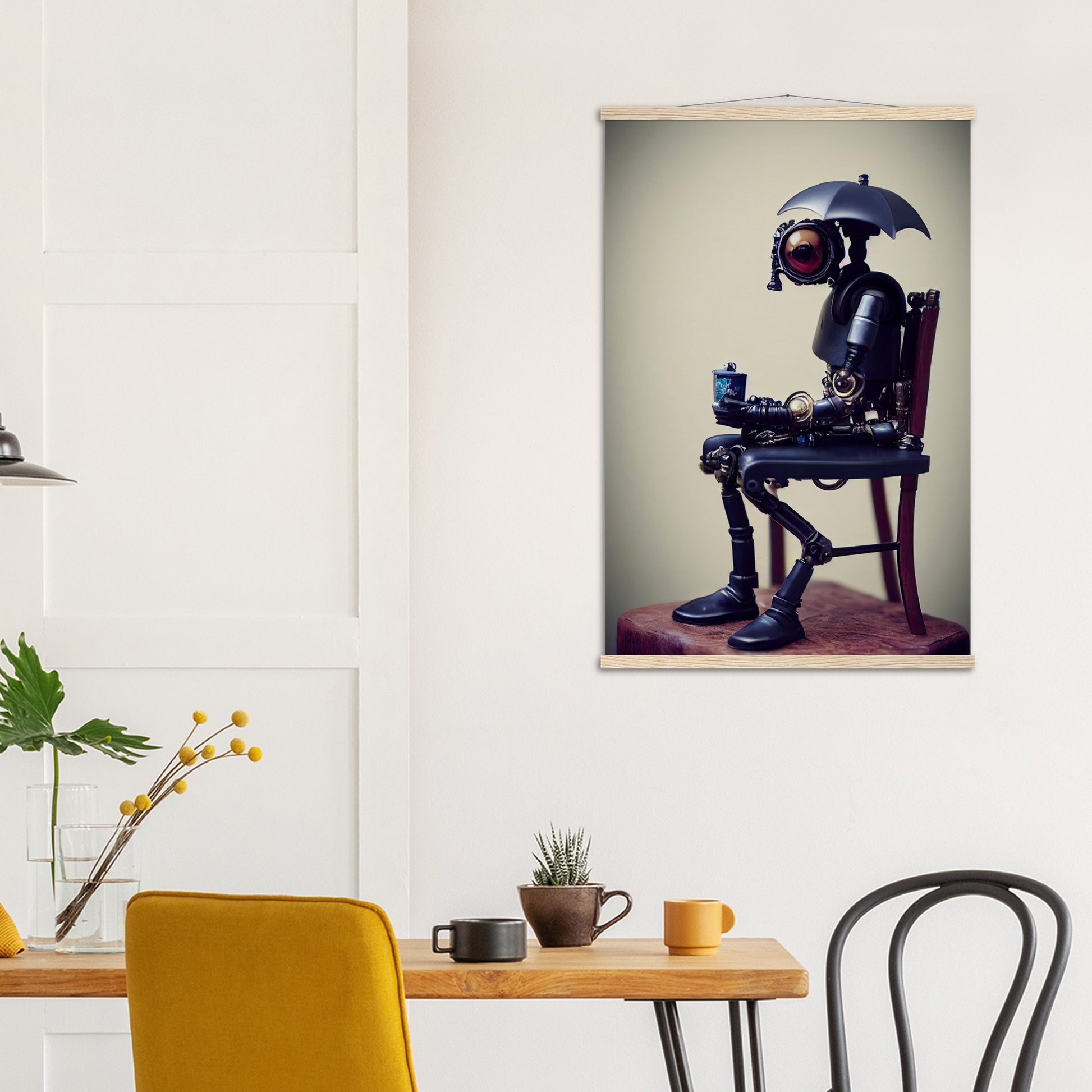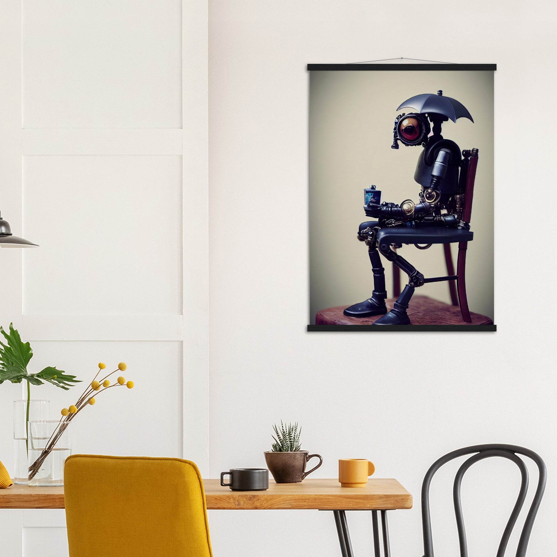 Poster mit Leisten - Tiny robot with an umbrella -"Louis"